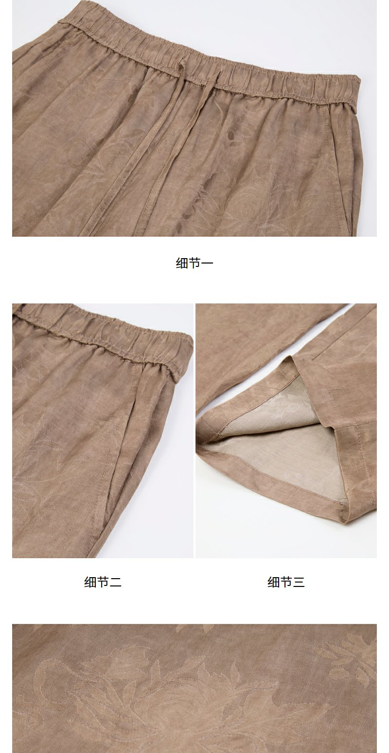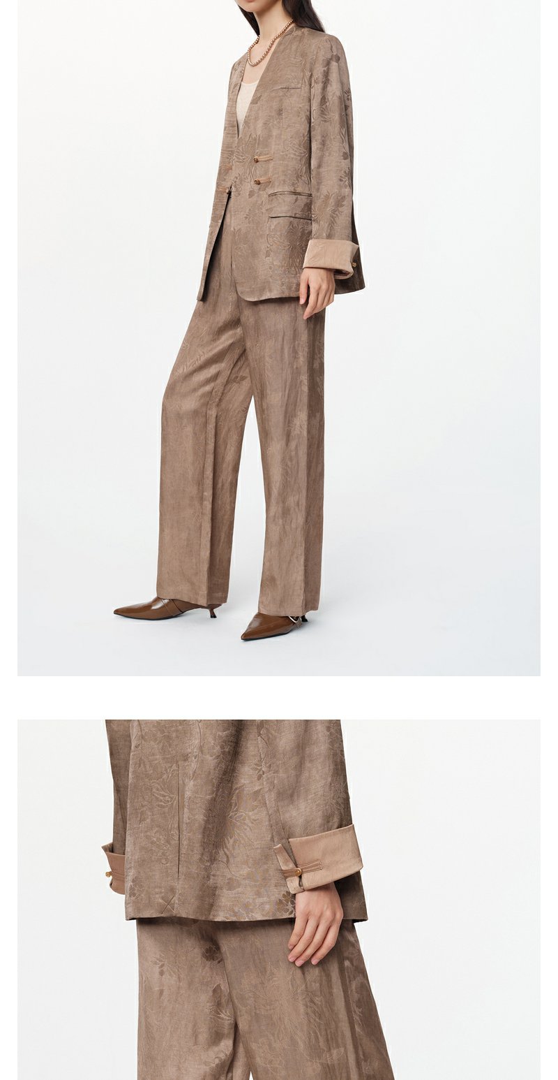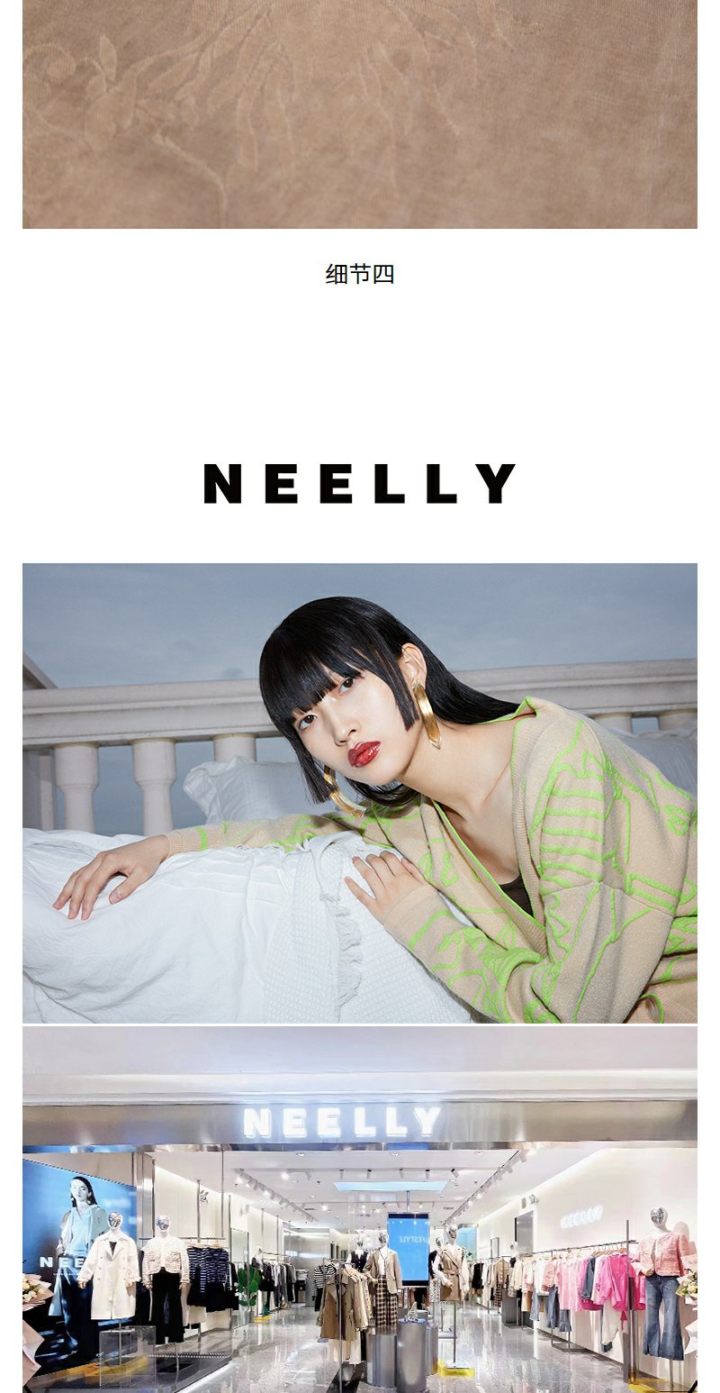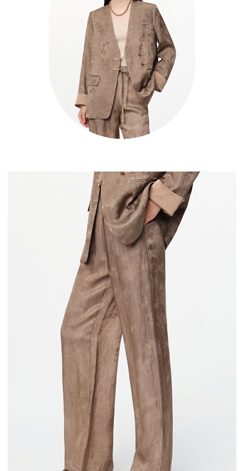 NEELLY纳俪商场同款春季新款高级感新中式暗纹印花直筒休闲裤女N25024H04566