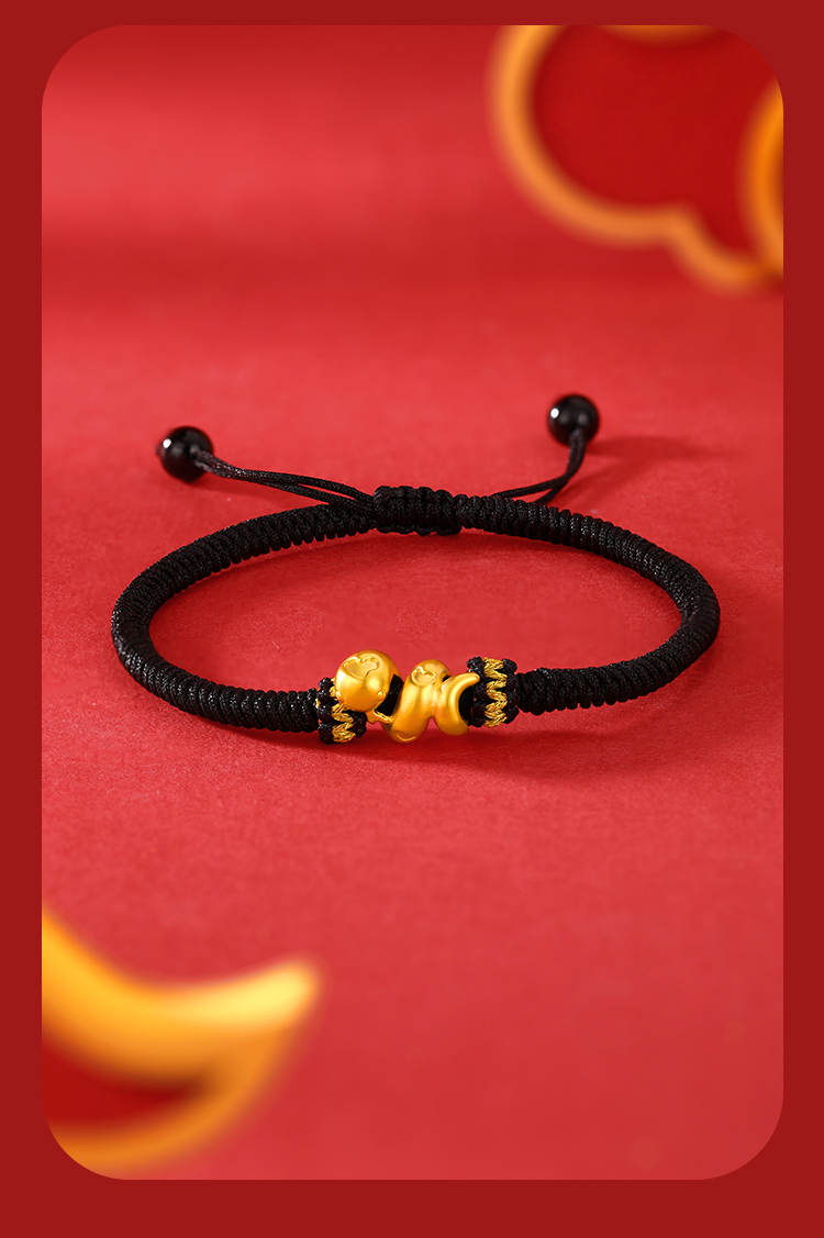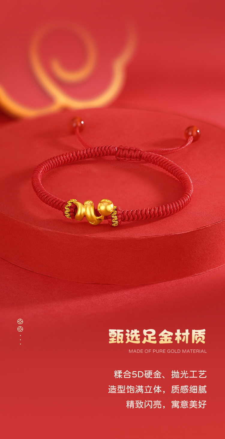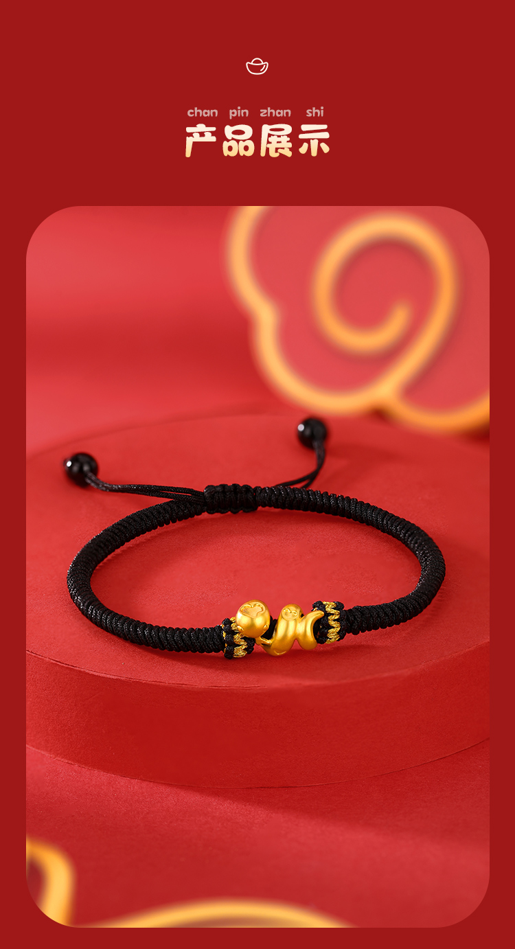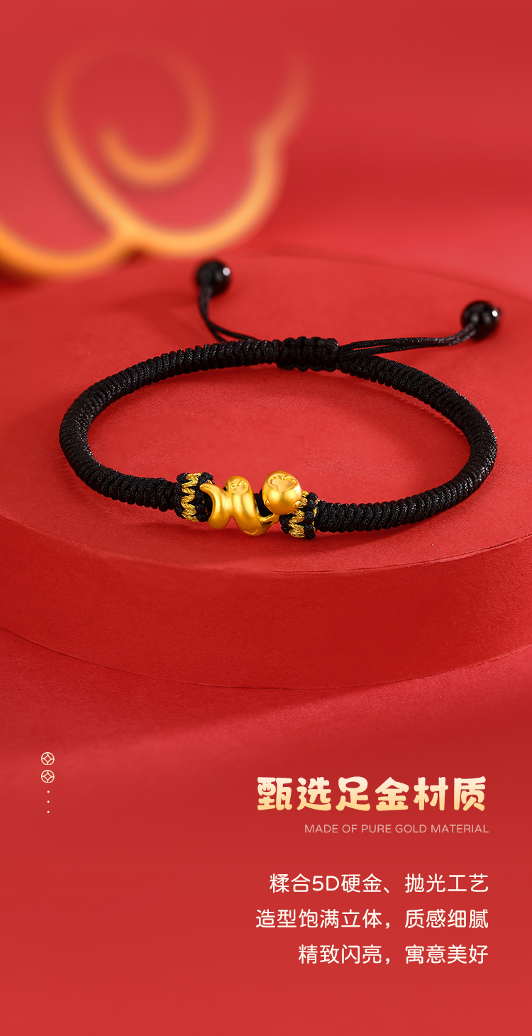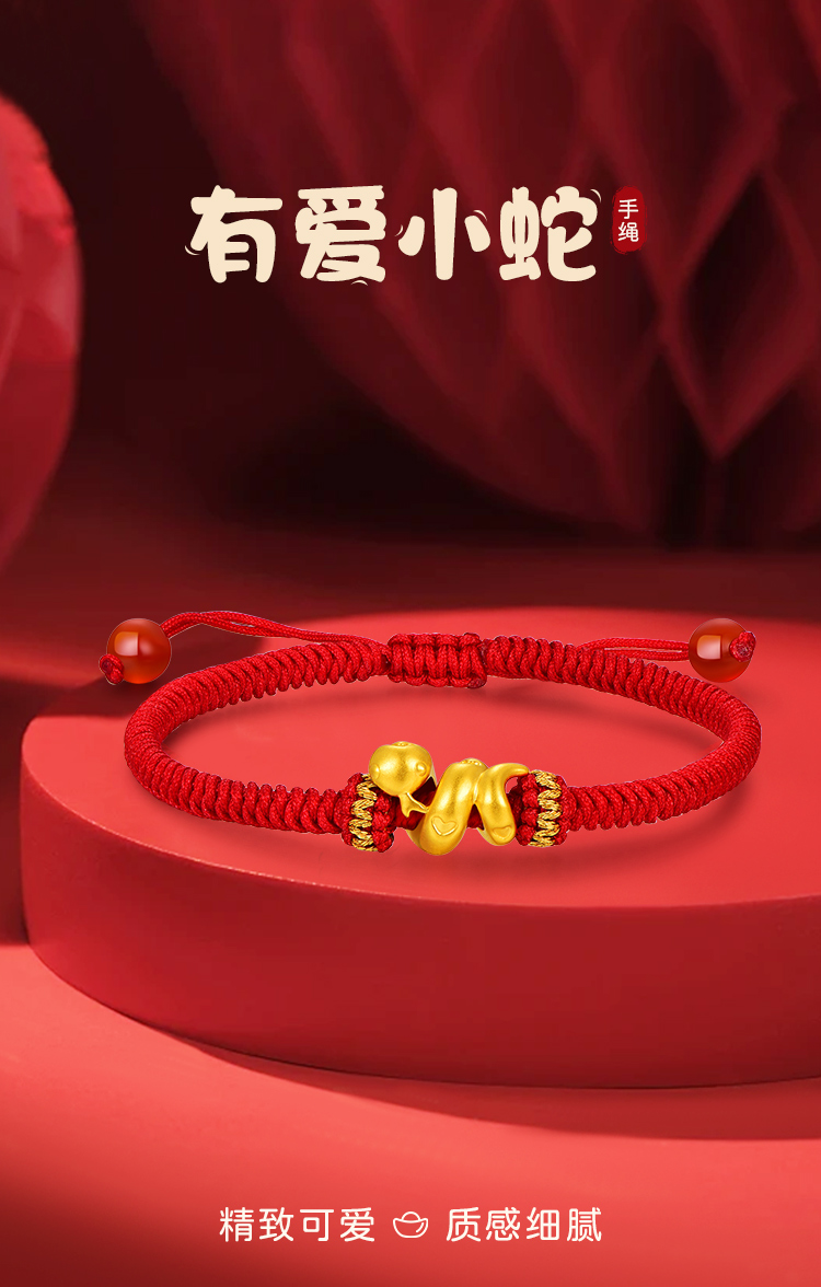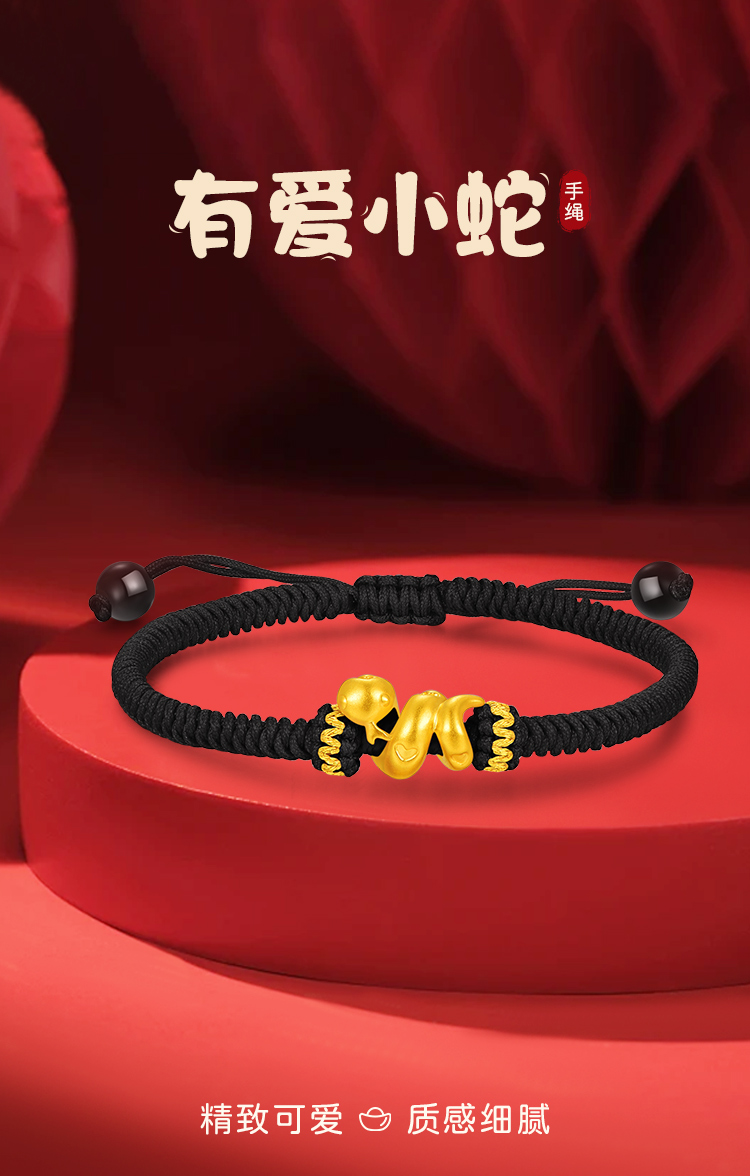 周六福足金有爱小蛇手绳-红绳(黑绳)ZLFA112576★