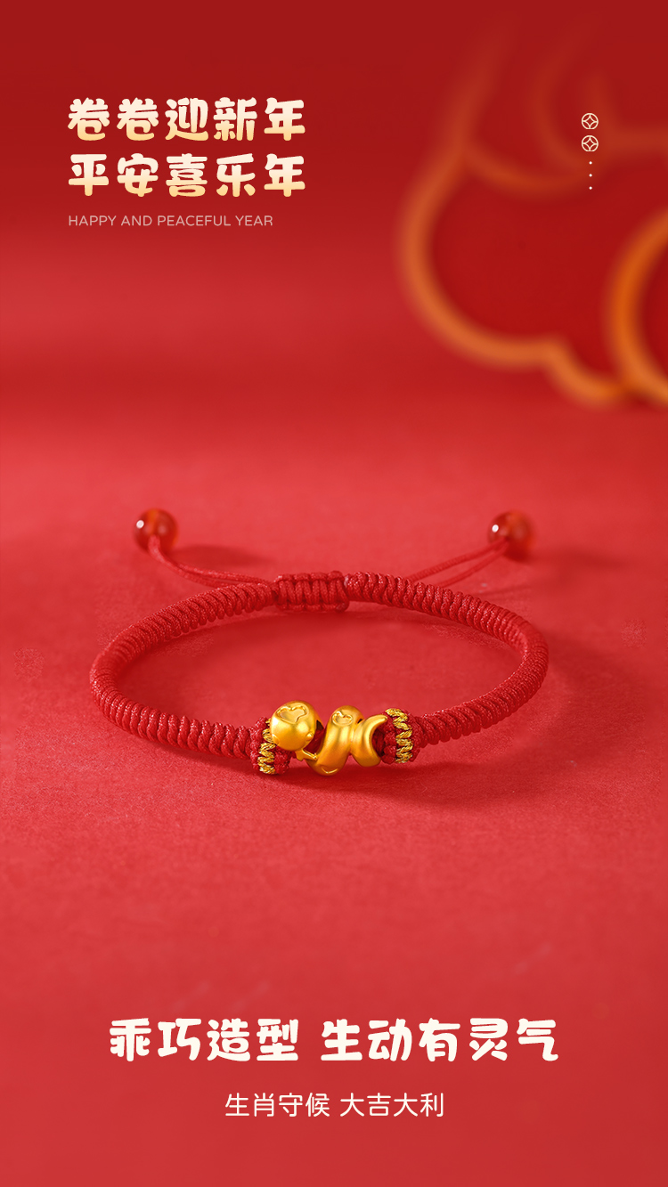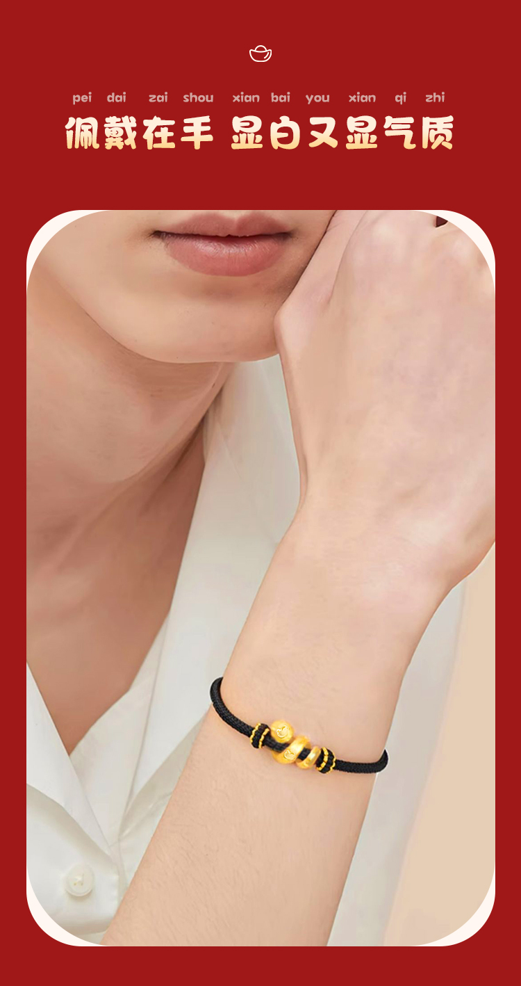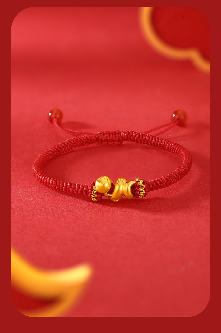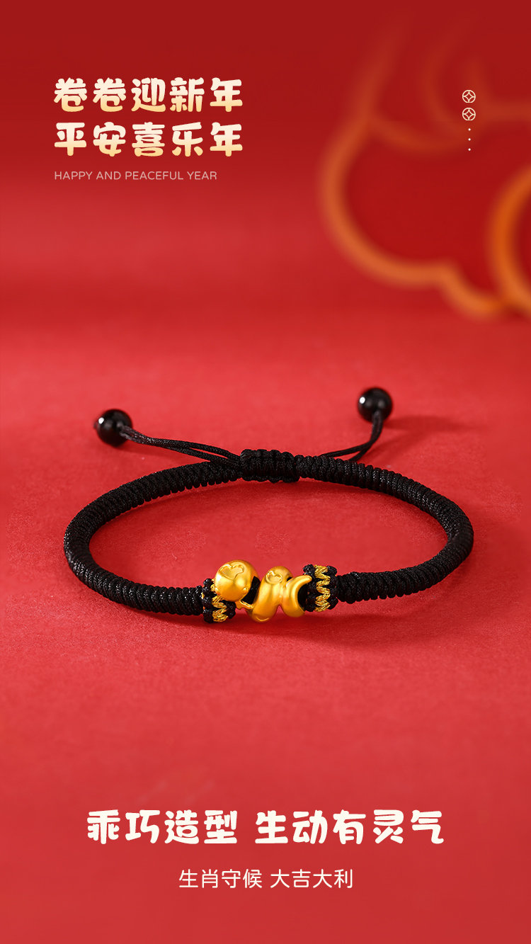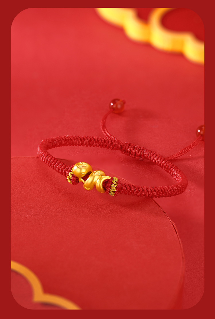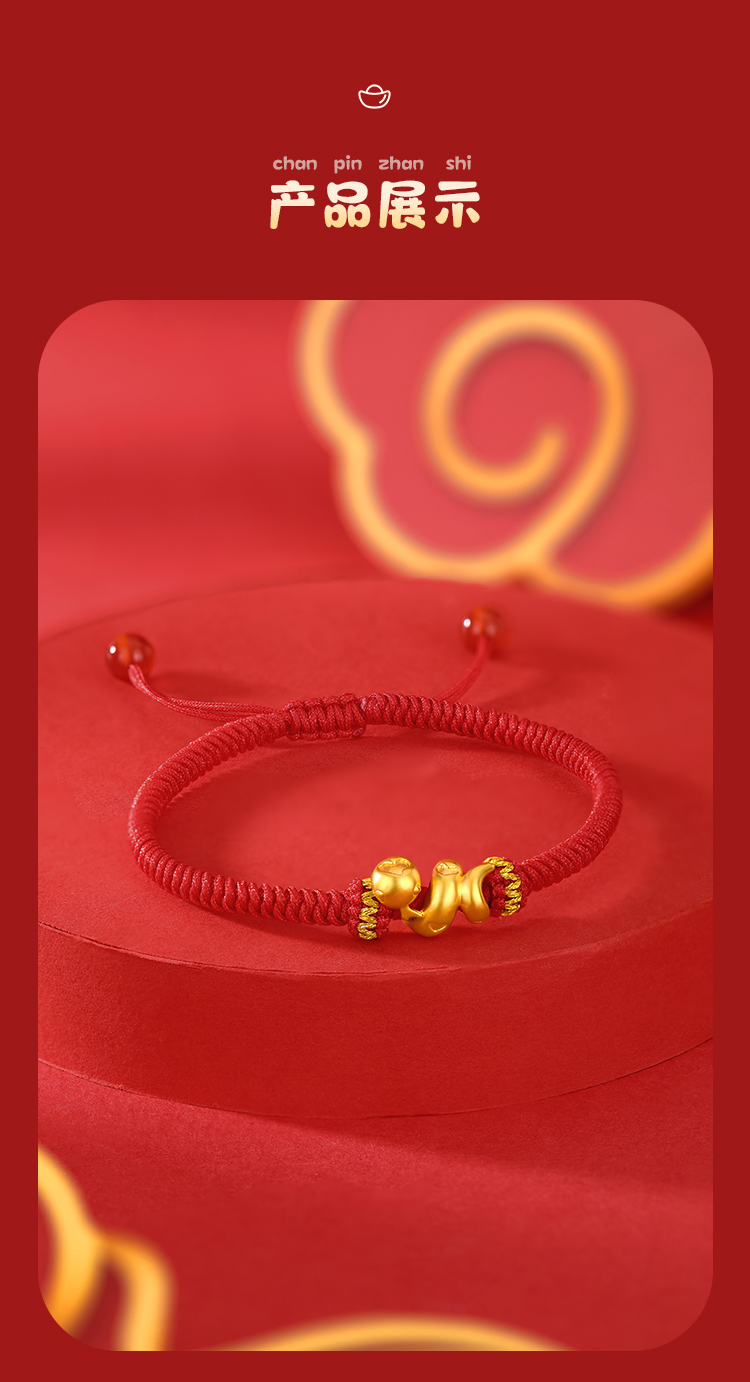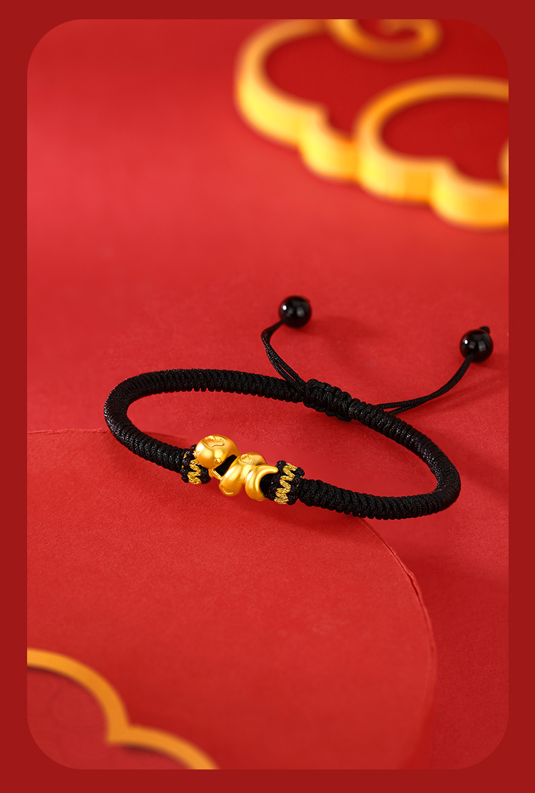 周六福足金有爱小蛇手绳-红绳(黑绳)ZLFA112576★