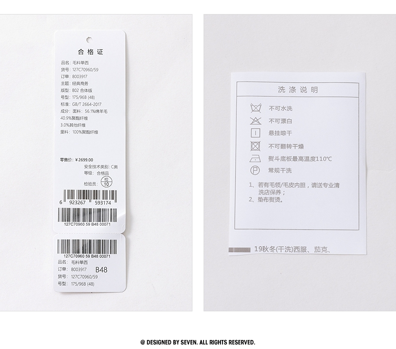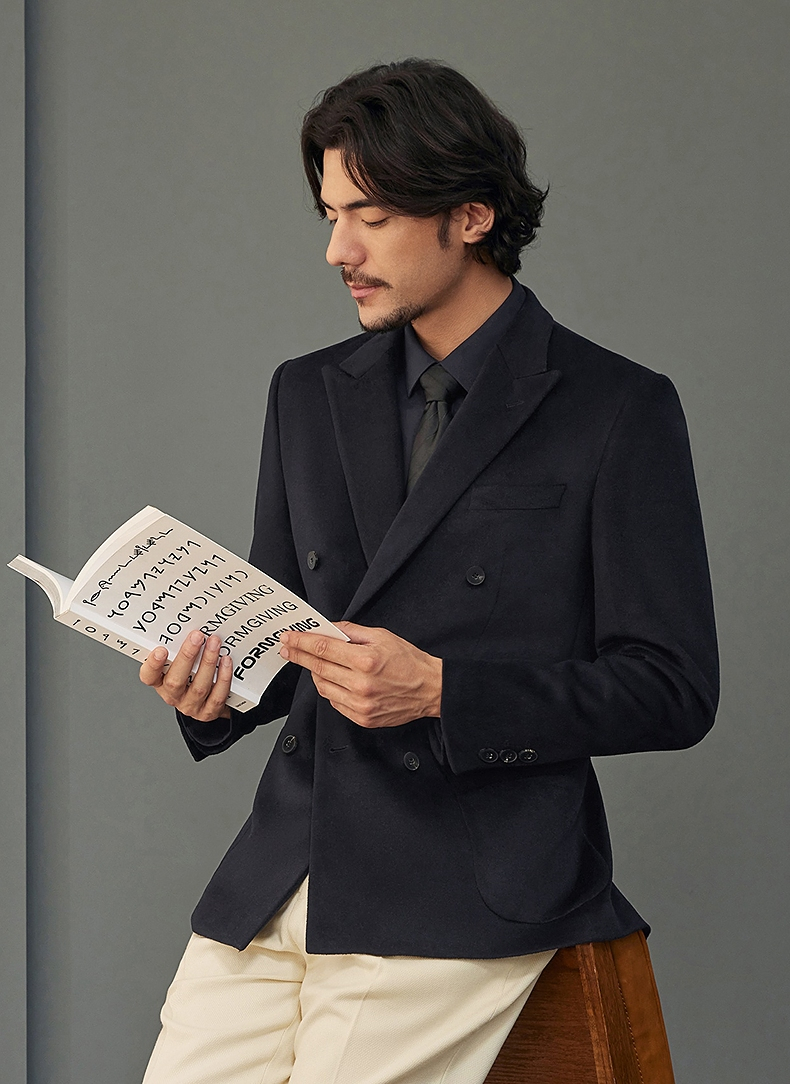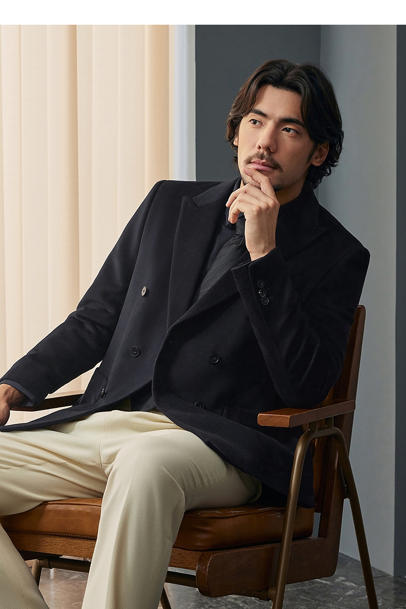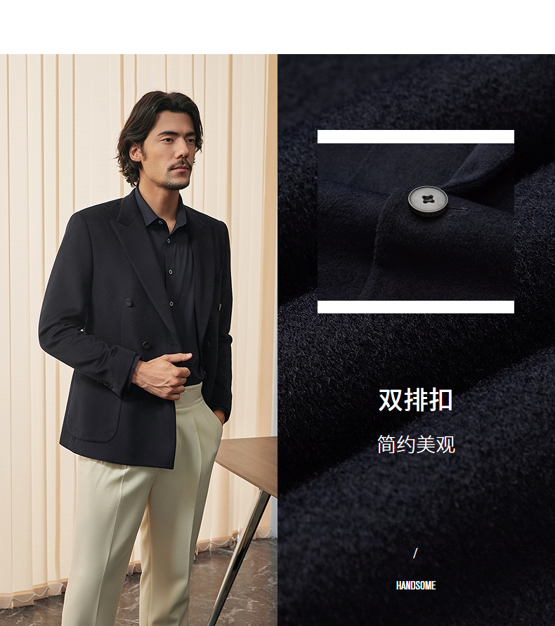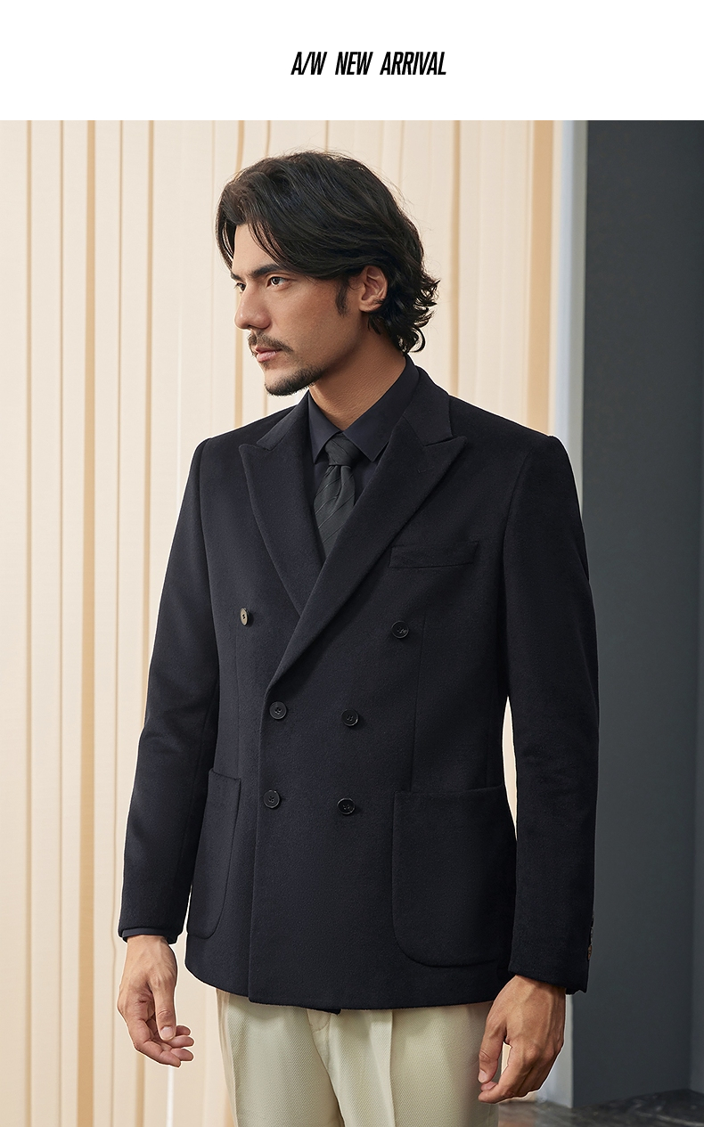 【毛料单西】柒牌男装西服男商务正装2024秋冬新款双排扣西装外套 127C70960