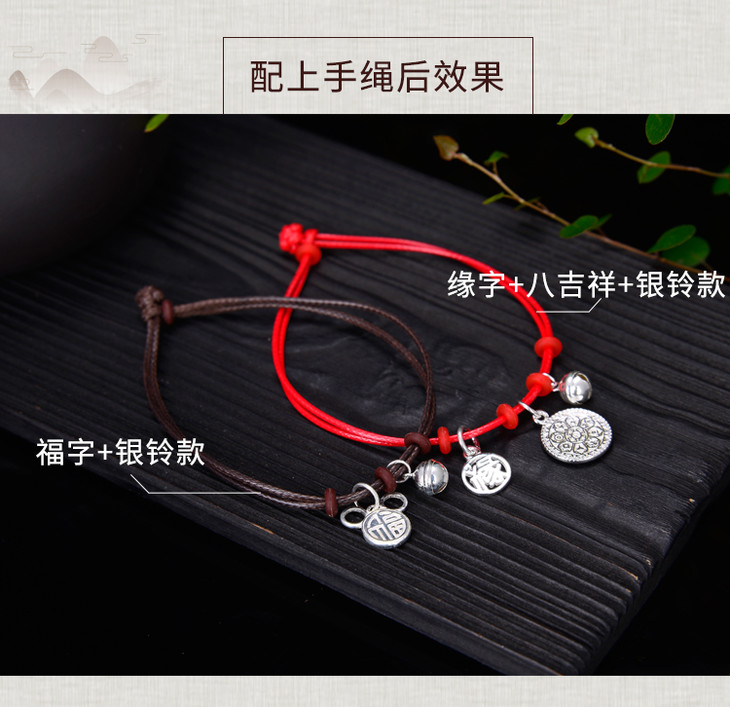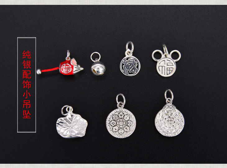 天语龙吟 纯银配饰手镯手链佛珠搭配八吉祥 宫八卦 福鼠 荷叶 配件吊坠可自己随意组合DIY手链