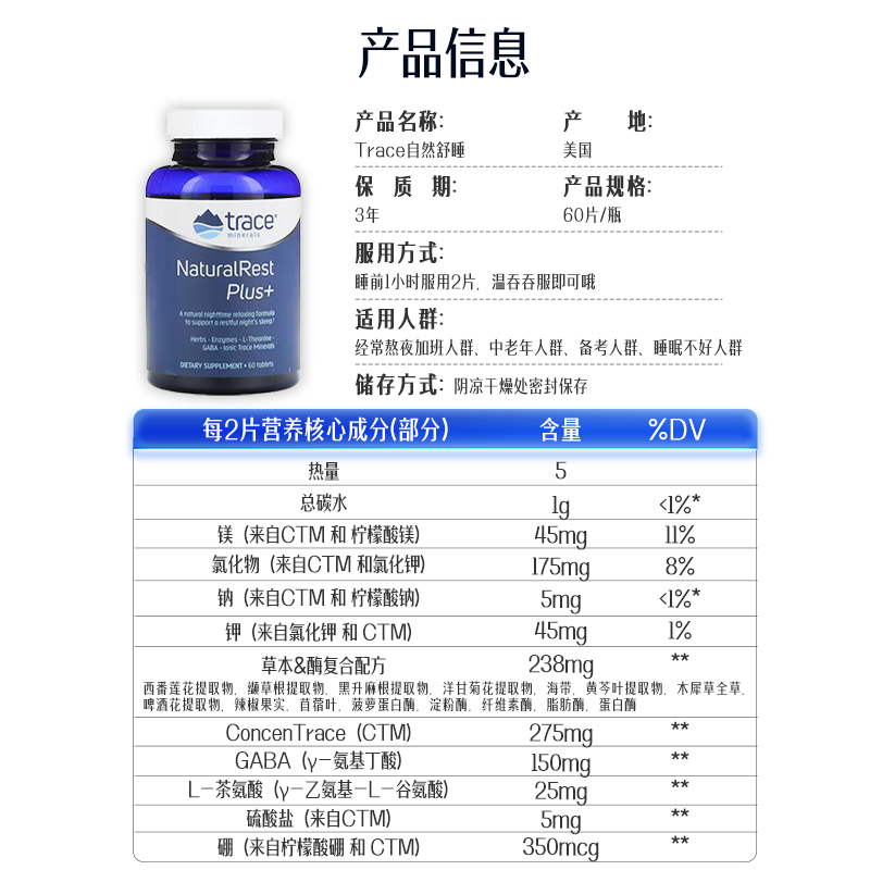 TRACE牌自然舒睡片 60片/瓶