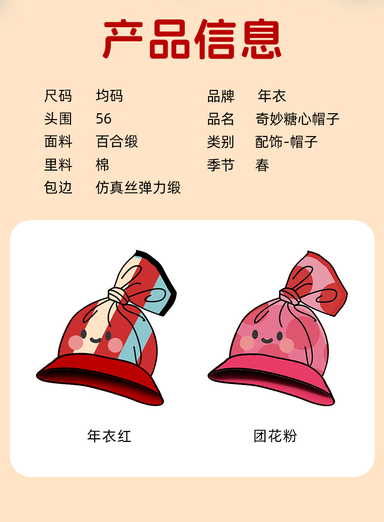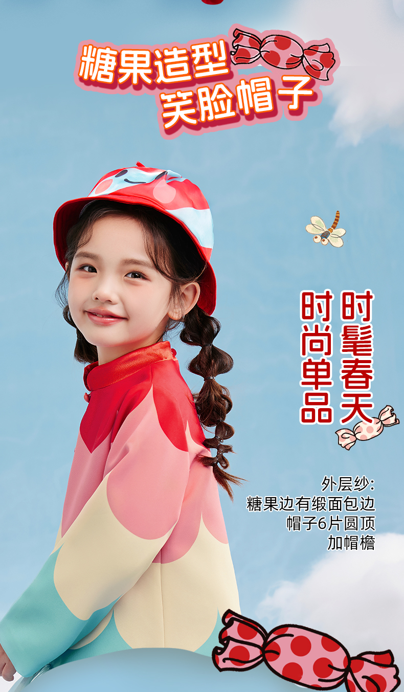 年衣童装女童原创设计奇妙糖心帽子2025年春季新款儿童甜美奇妙糖心帽子