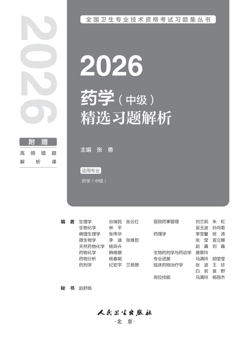 书名:2026药学(中级)精选习题解析
