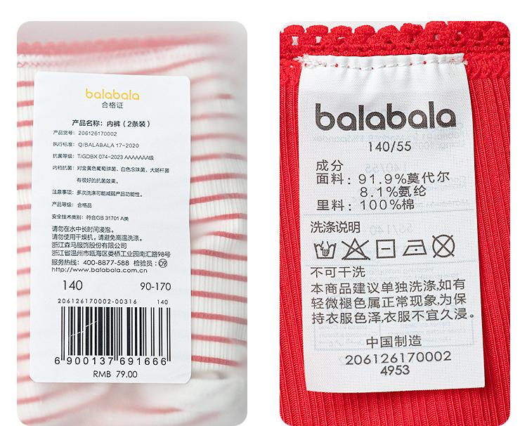 【商场同款】巴拉巴拉女童内裤棉儿童三角短裤不夹PP抗菌裆两条装