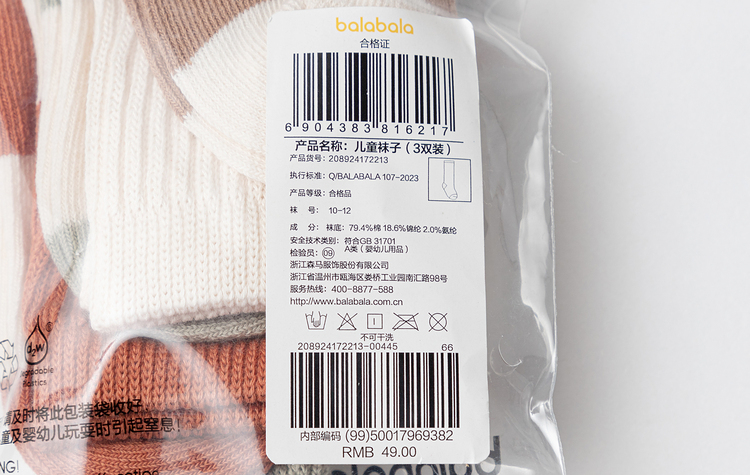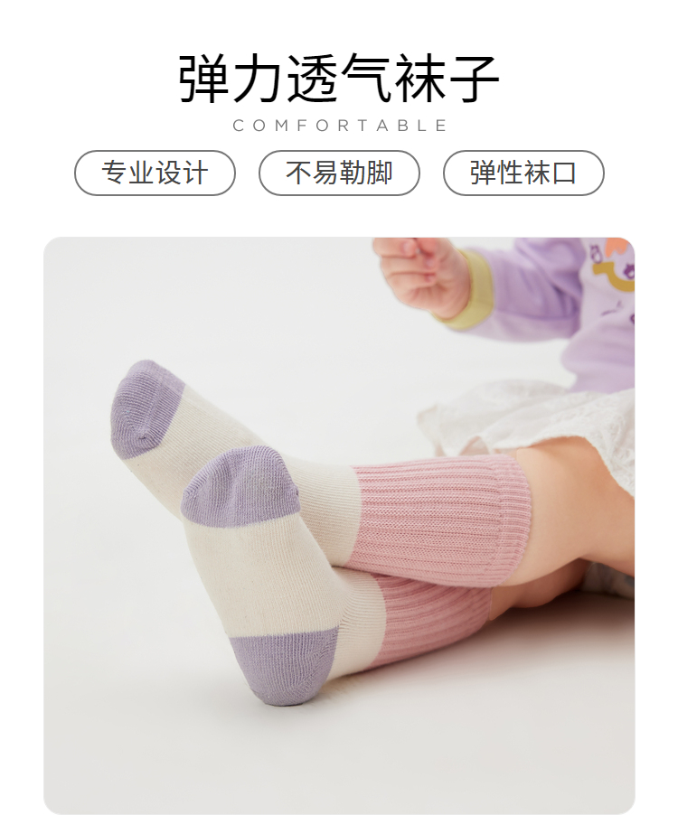 巴拉巴拉宝宝中筒袜子棉秋季新款男女童新生婴儿童袜不勒腿三双装