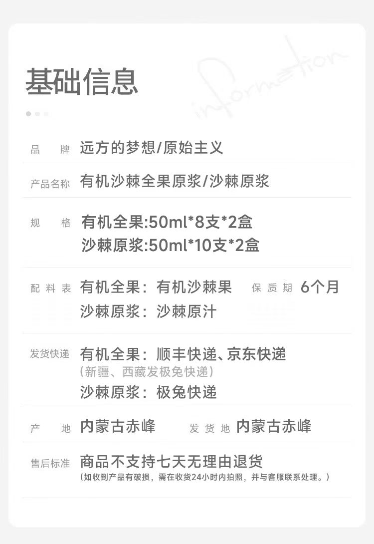 【有机】内蒙沙棘原浆2盒(50ml*8支/盒)