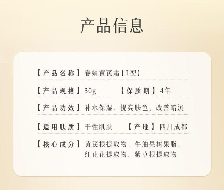 春娟黄芪霜30g 经典国货面霜 保湿滋润 提亮肤色 改善暗沉 深层补水