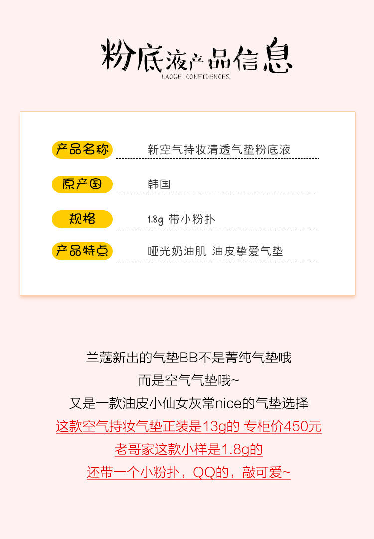【爆款超低价预售 急单慎拍】兰蔻新空气持妆清透气垫粉底液1.8g小样自然持久遮瑕防晒