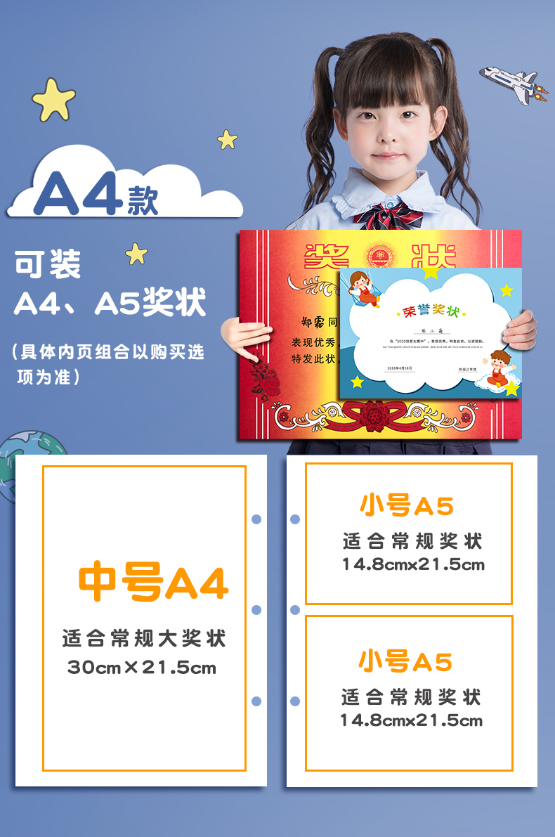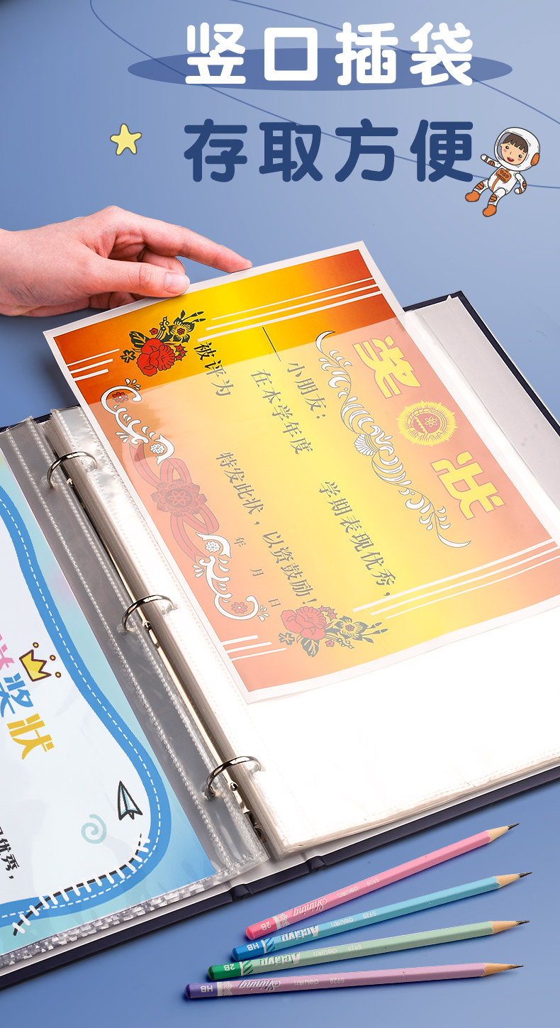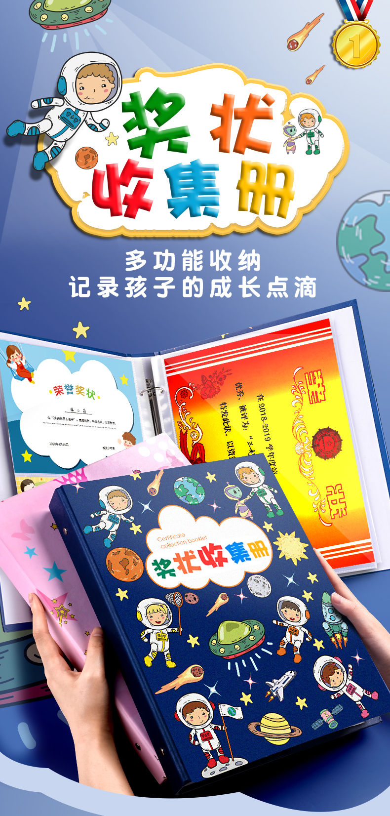 开学季福利!【奖状收集册】A4荣誉证书男孩女孩装收纳大号小学生用文件夹的画册儿童宝宝收藏袋盒夹放作品相册本多功能册子