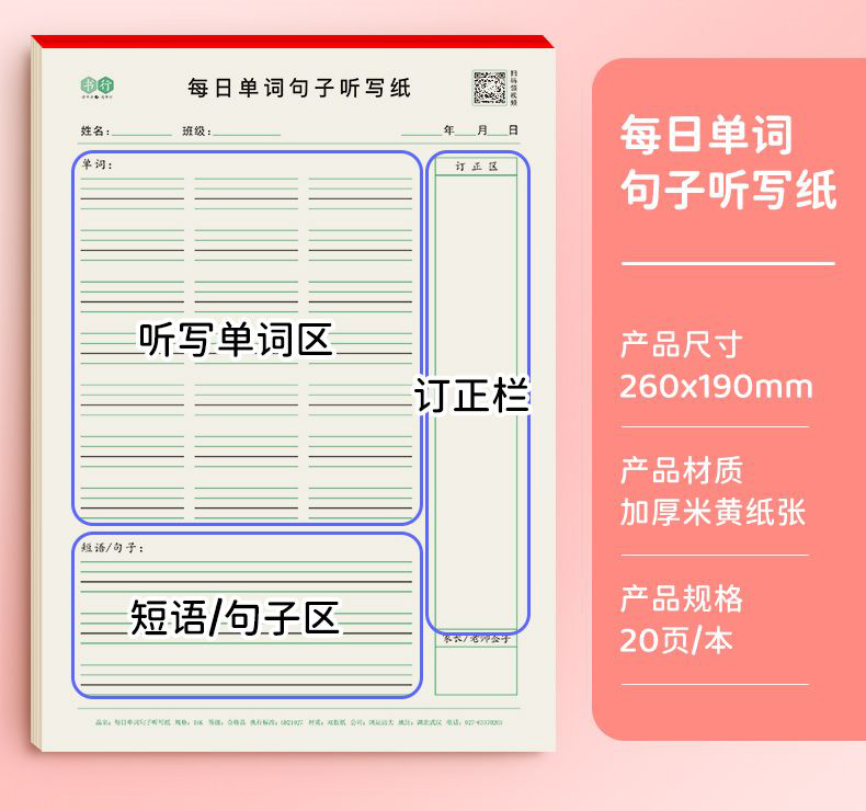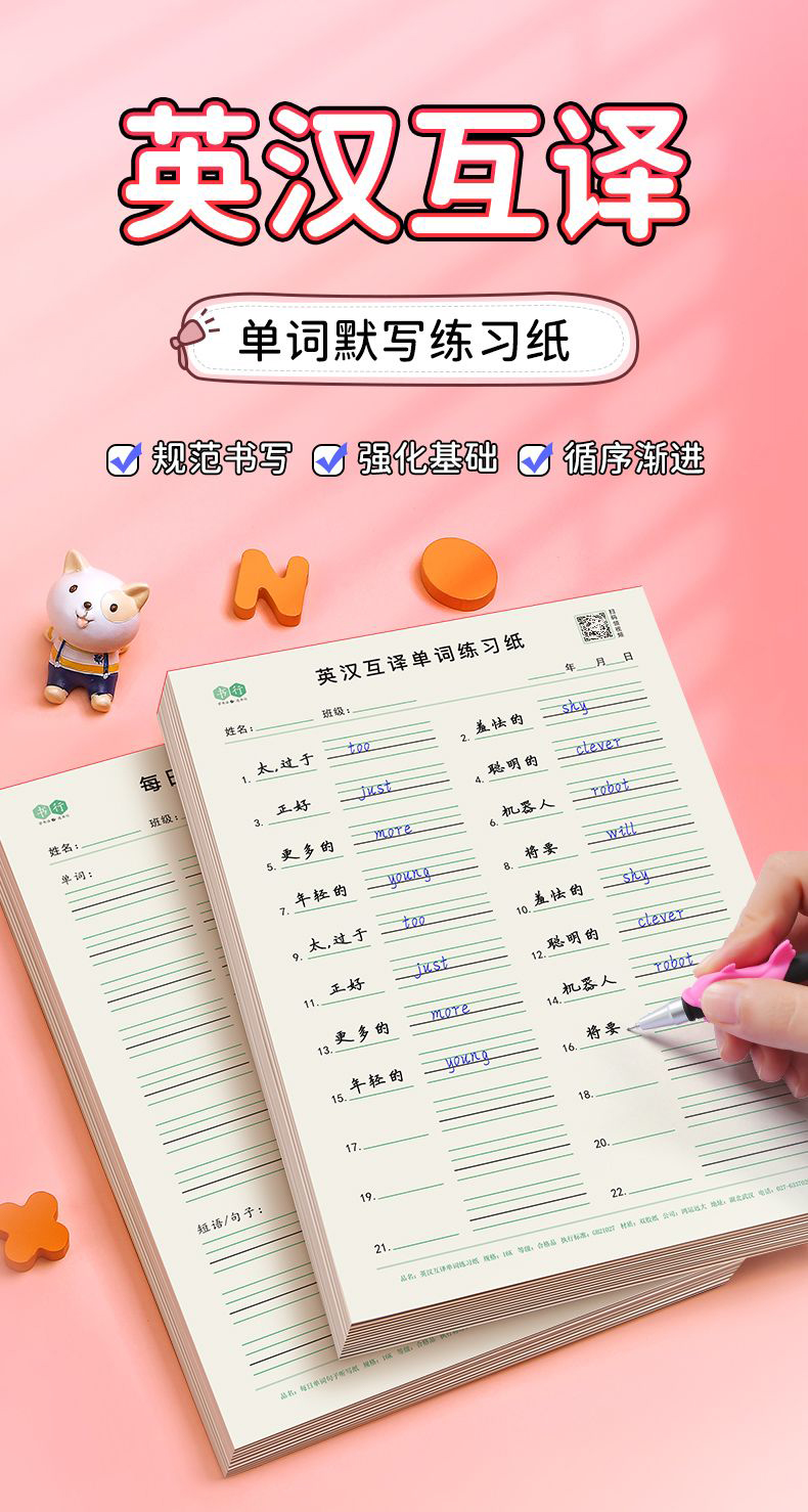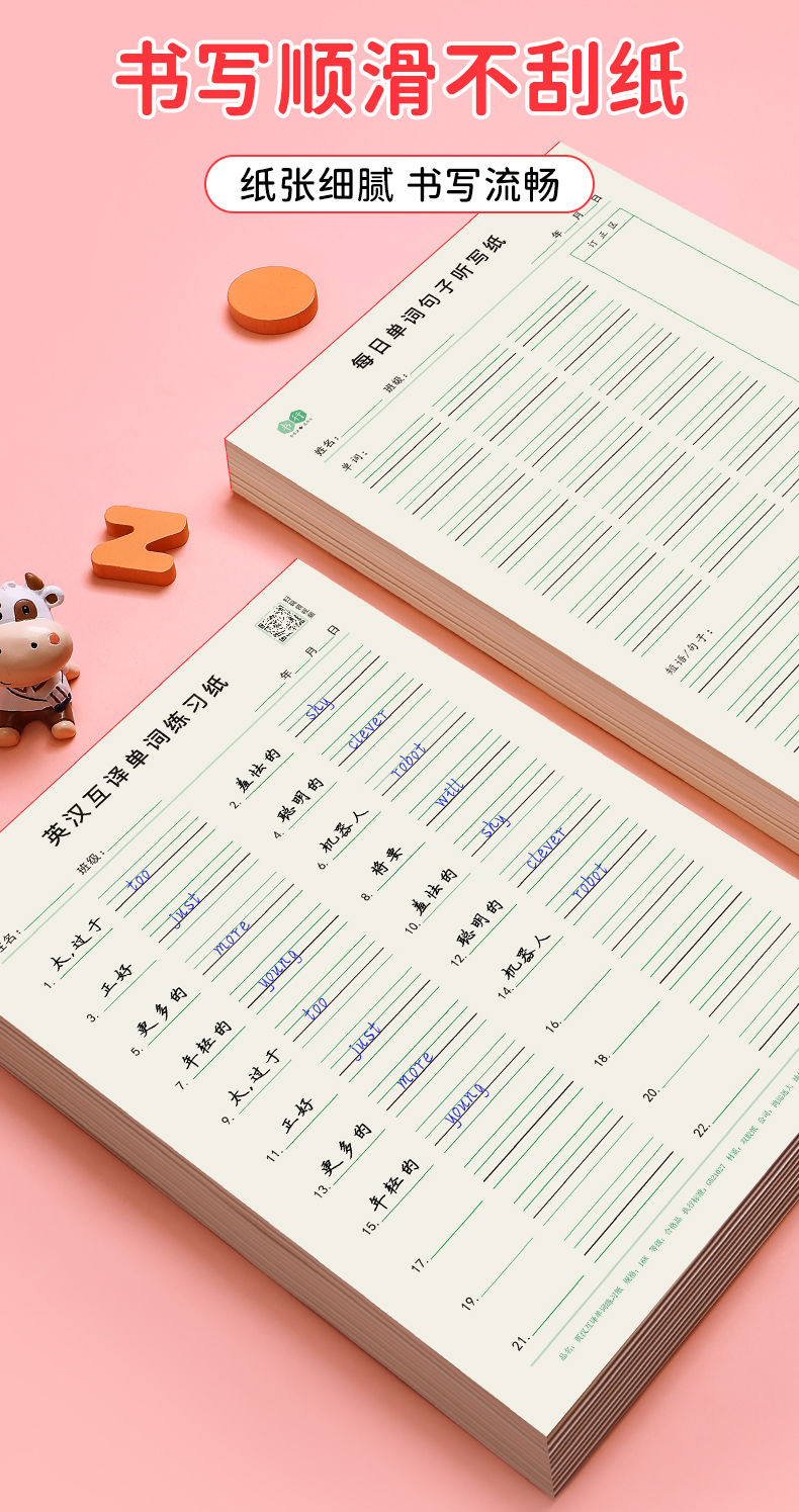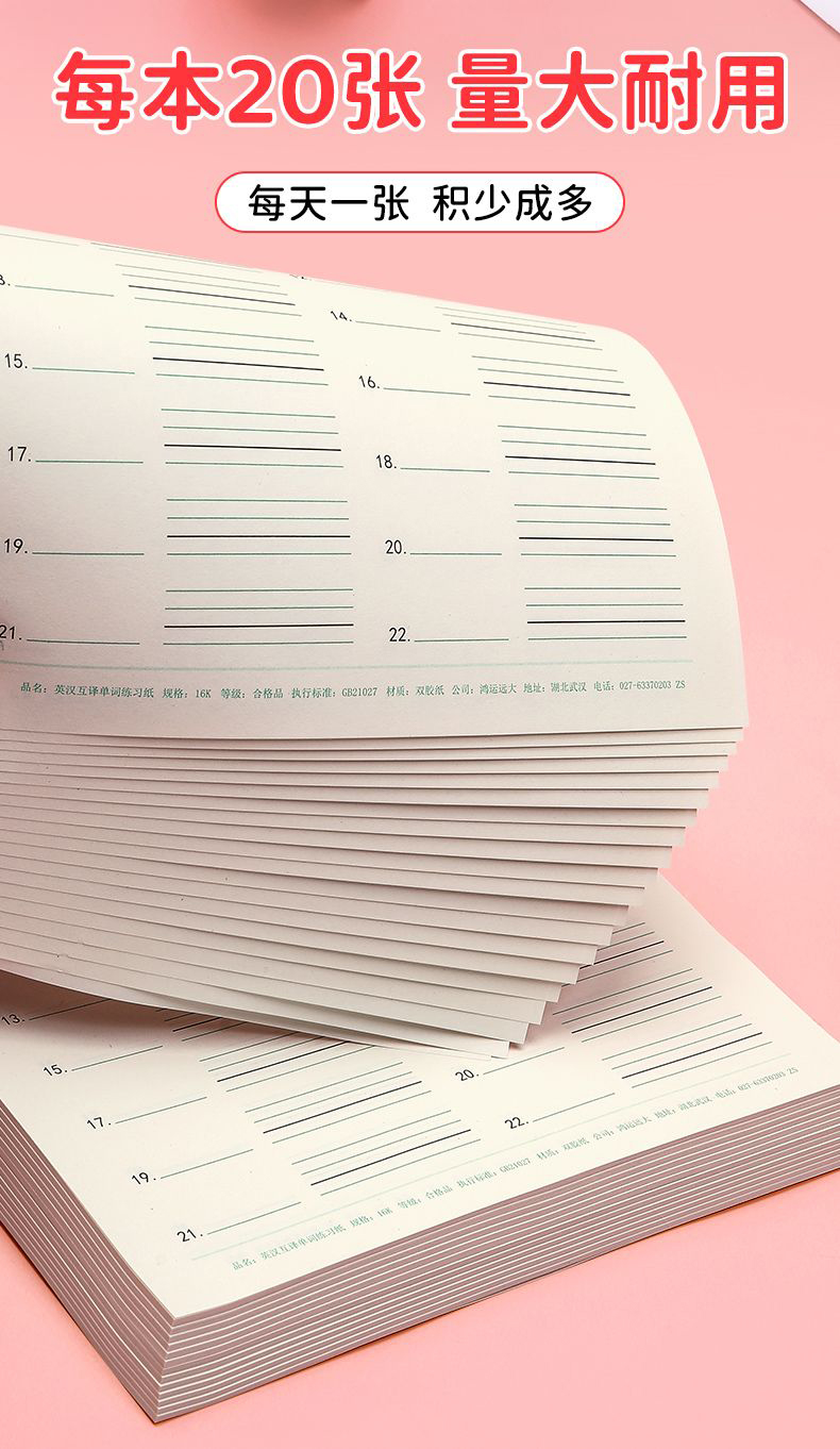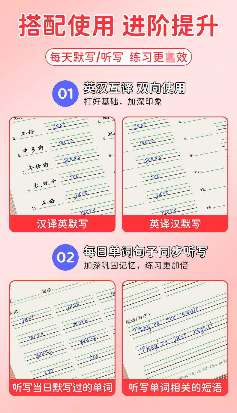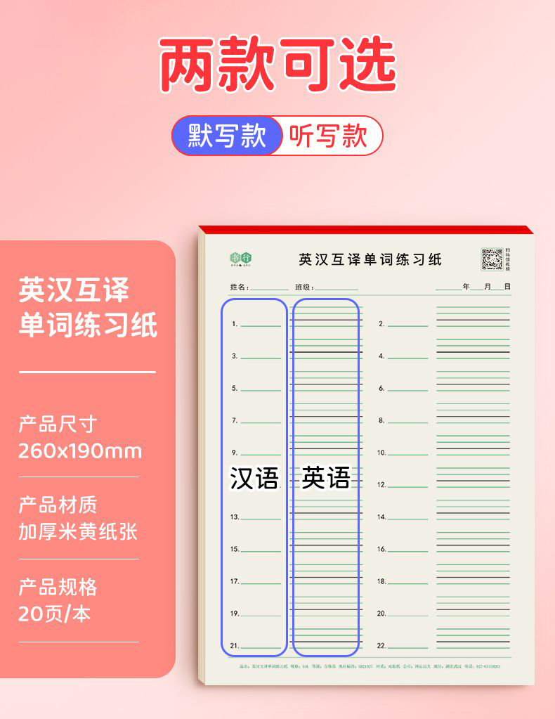 开学季福利!【5本装100页】 16k英汉互译练习纸英语单词积累听写本初中默写单词纸