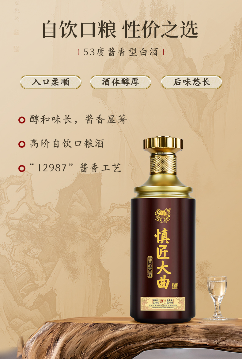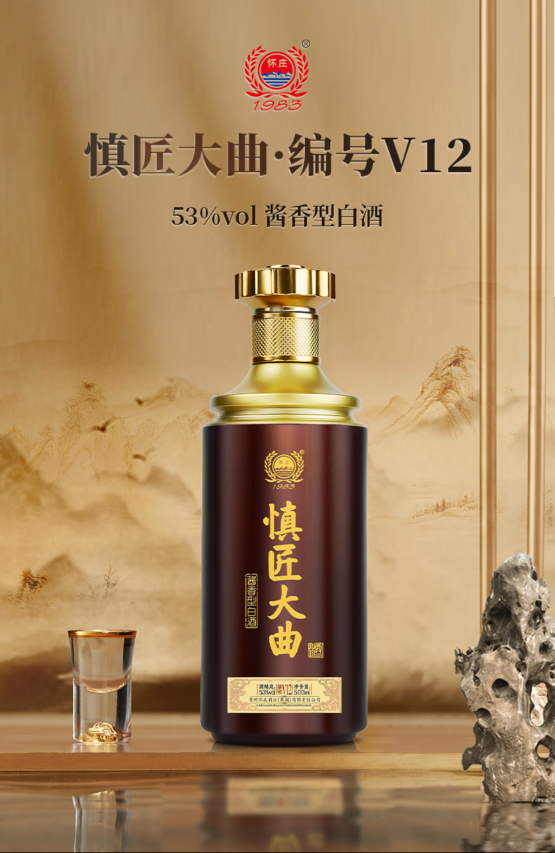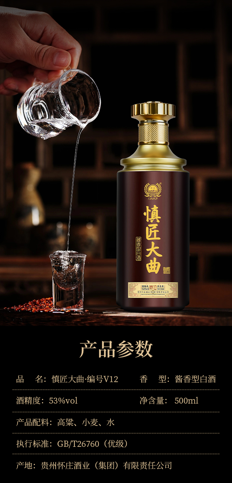 【热销】慎匠大曲·V12酒 酱香型白酒 53度 送礼自饮 500mL*6瓶整箱装