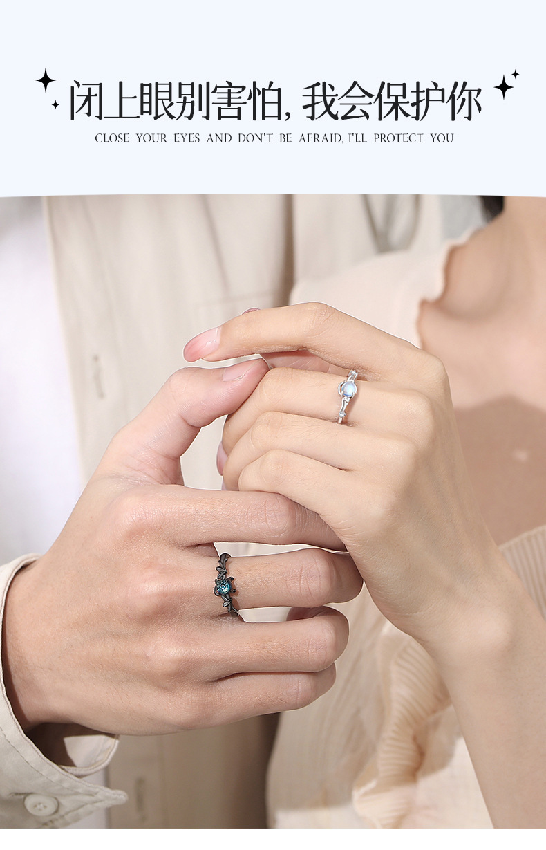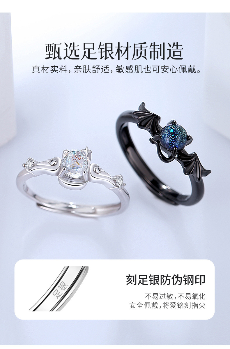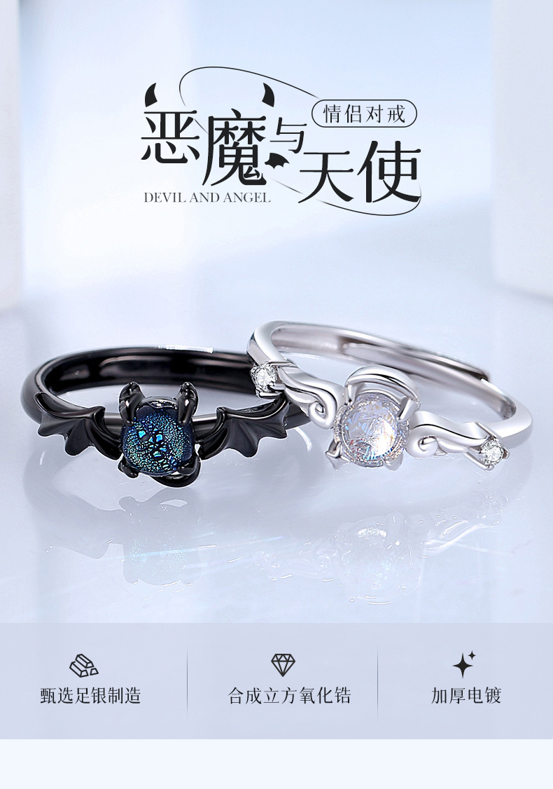卡蒂罗/KADER 天使与恶魔海誓山盟情侣对戒 ins冷淡风嘻哈时尚小众个性独特设计百搭开口可调节