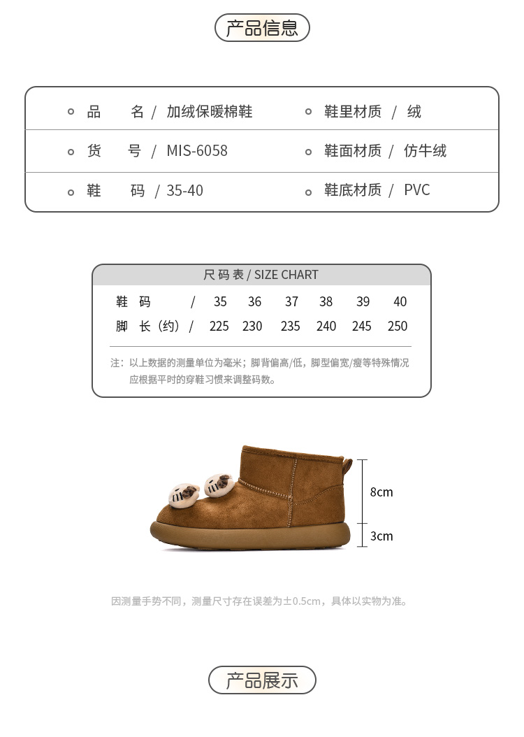 【YW】无忧购冬季Kitty加绒保暖棉鞋蓄热保暖雪地靴MIS-6058(截单后3-5天发货)