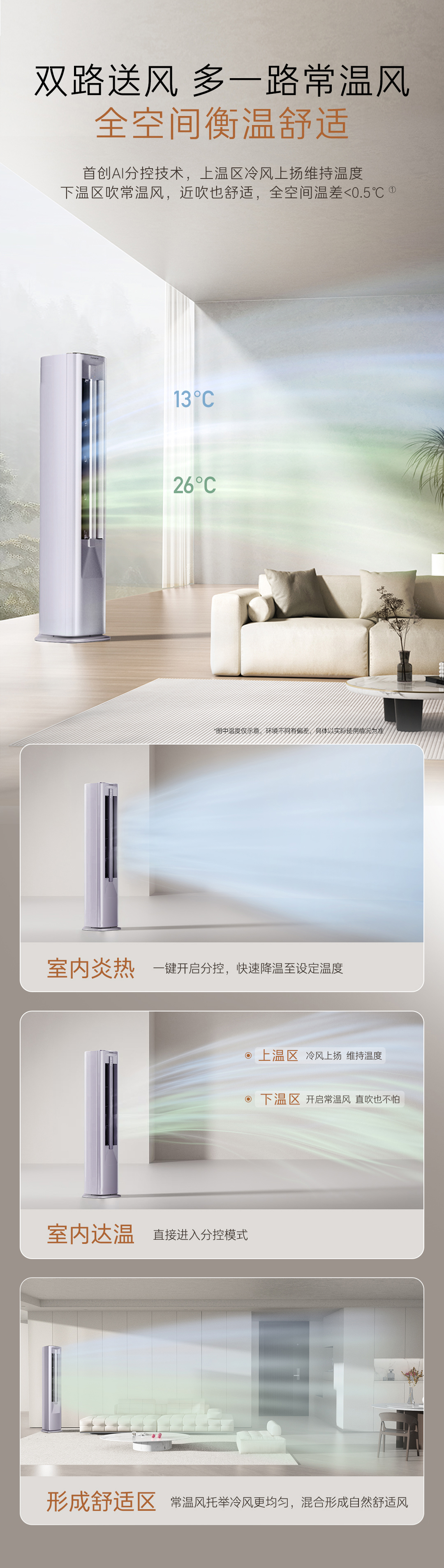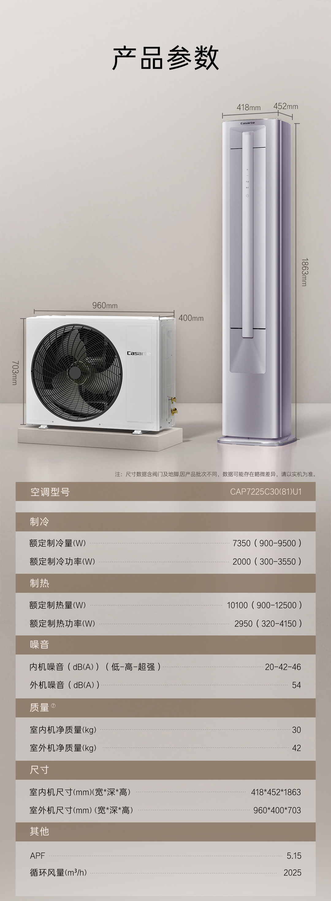 卡萨帝(140194)家用空调CAP7225C30(81)U1双路送风 智慧除湿 离子除菌 澎湃风量
