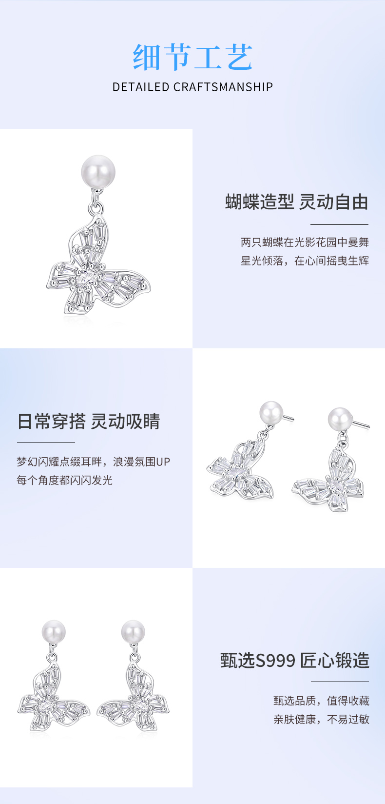 卡蒂罗/KADER 幻蝶光影耳钉 光影蝴蝶闪闪蝶舞轻奢时尚优雅养耳洞耳饰 森系甜美秋冬穿搭大牌配饰 925银