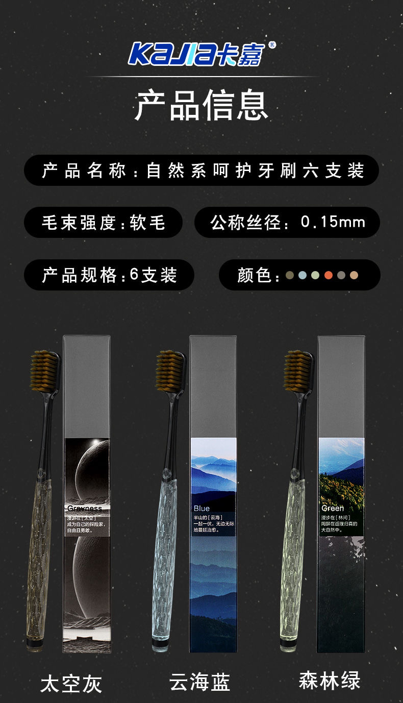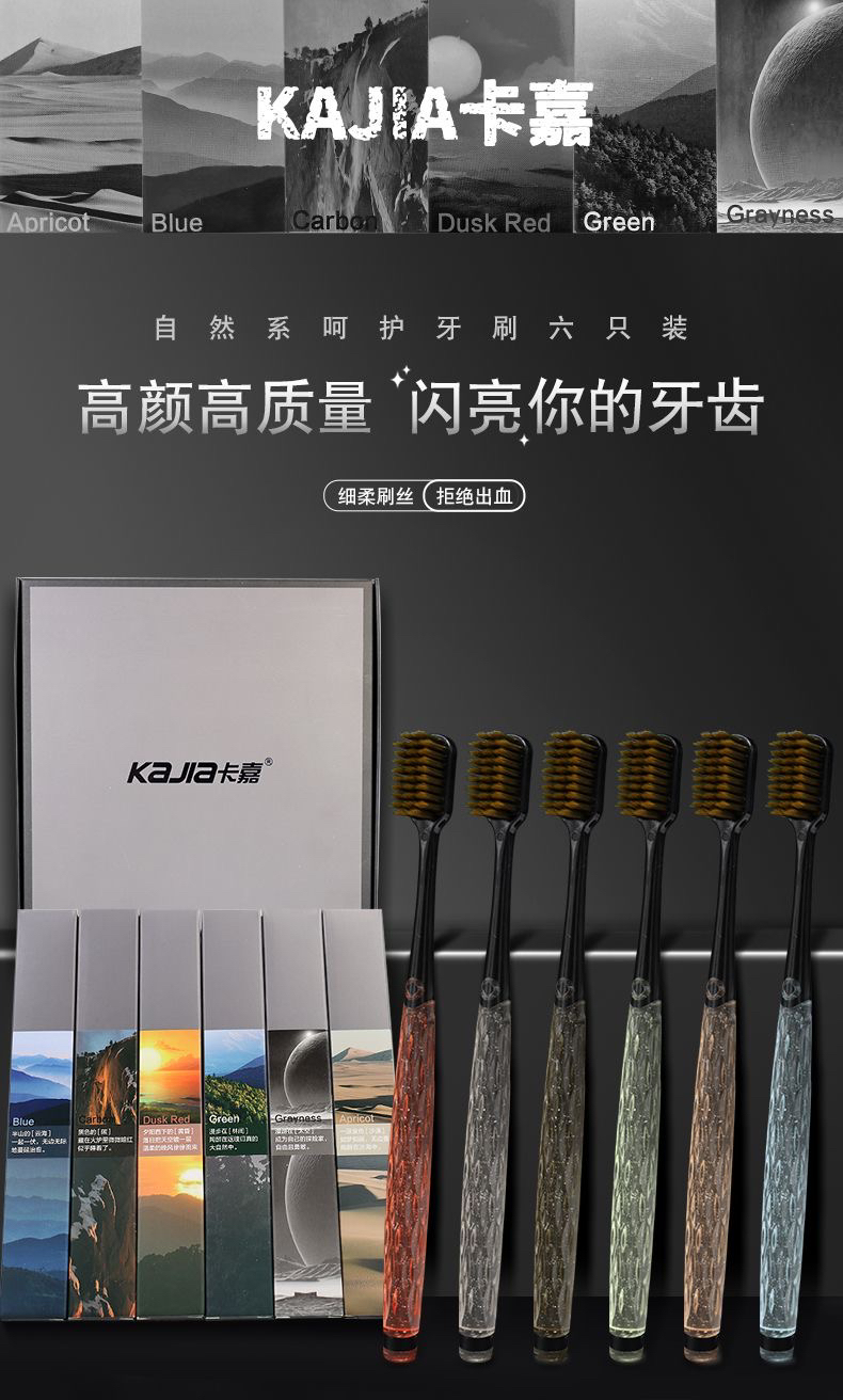卡嘉牙刷礼盒6支装ins风细丝软毛牙刷