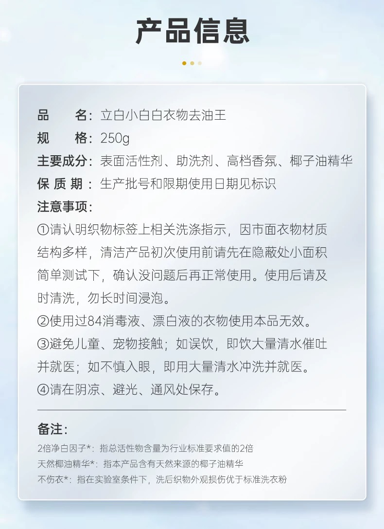 立白小白白去油王250g*1 高效去油去渍不伤衣