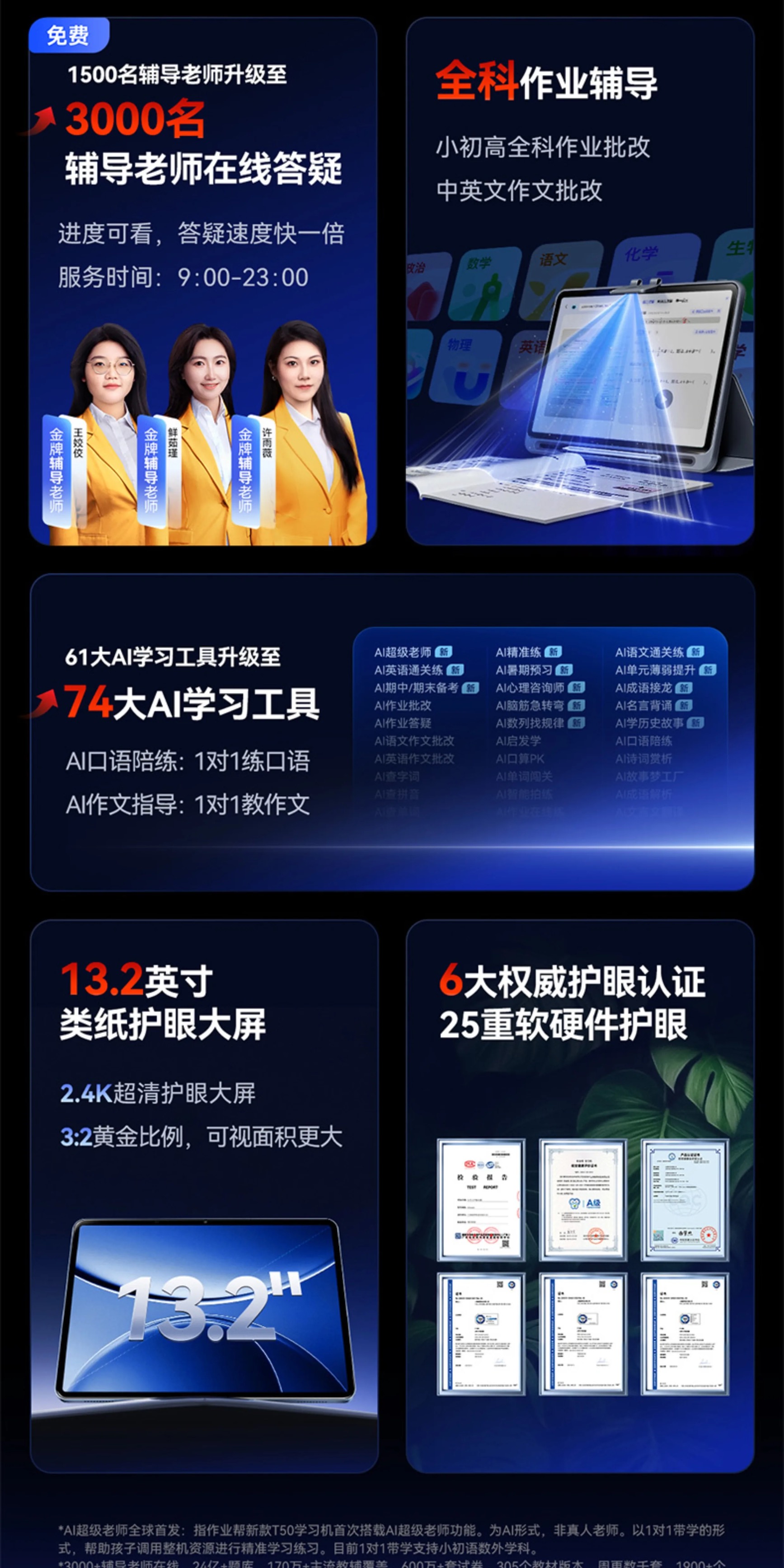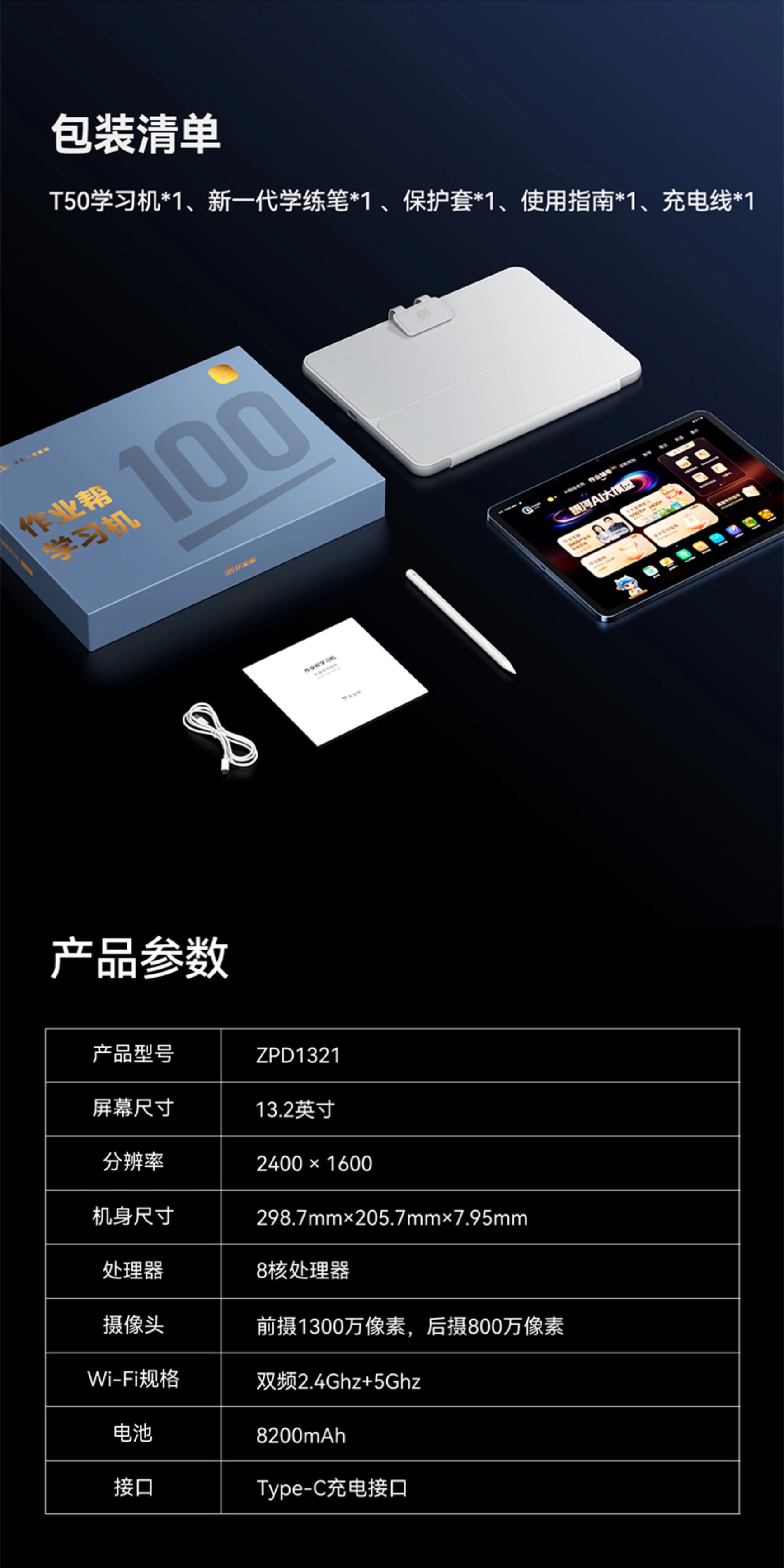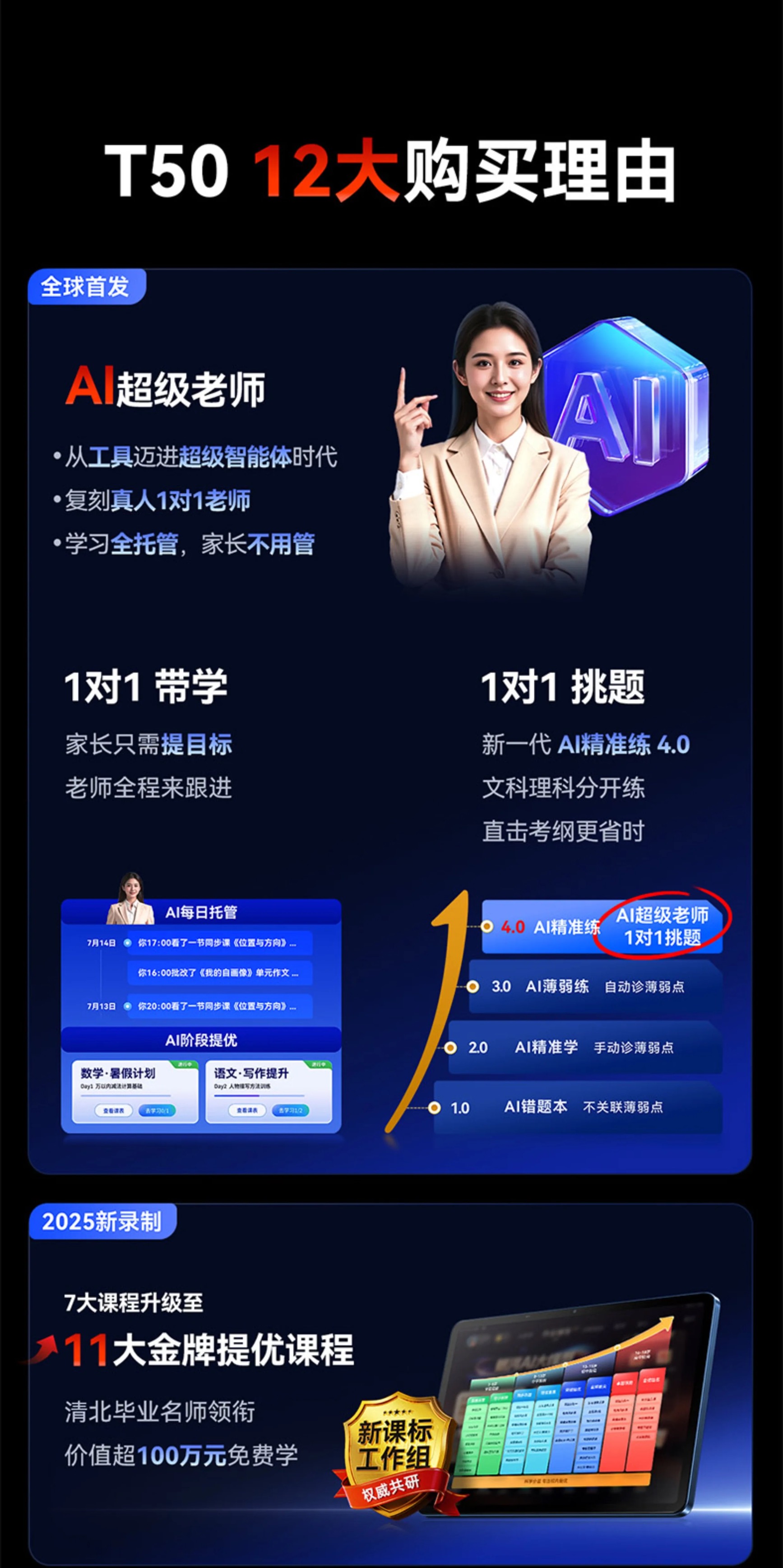 【拍前请咨询作业帮T50】学练机全年龄段小初高学生平板AI精准学、教材同步辅导
