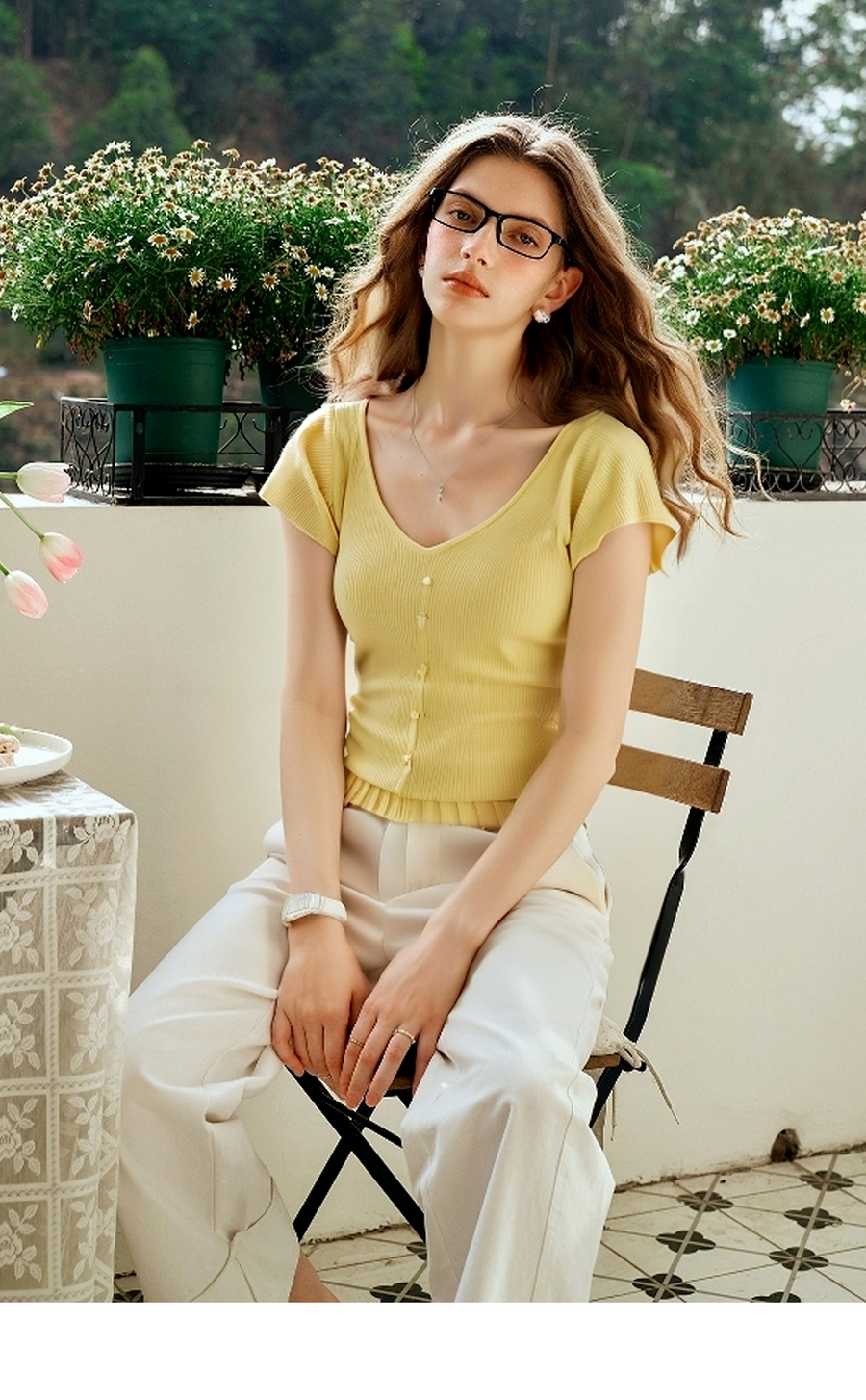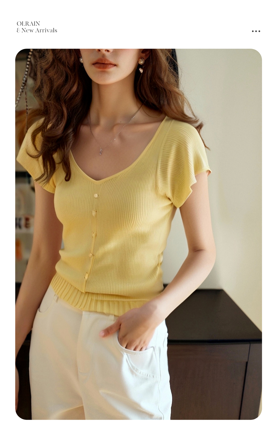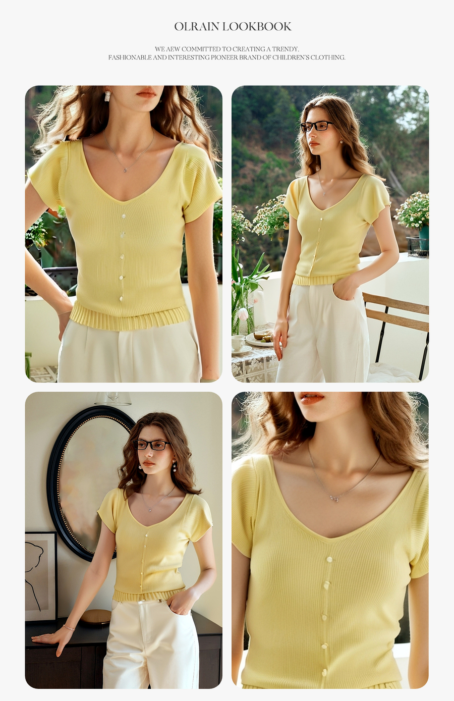 OLrain欧芮儿黄色法式气质针织衫女夏季2025新款修身显瘦短款上衣