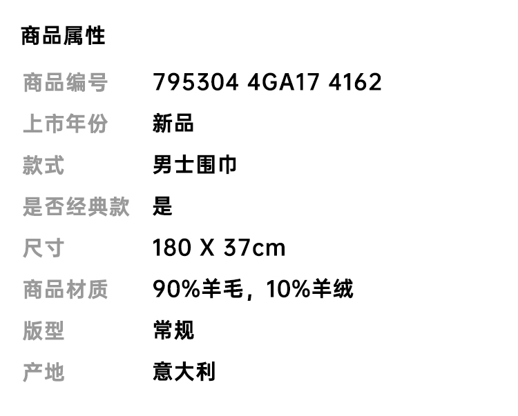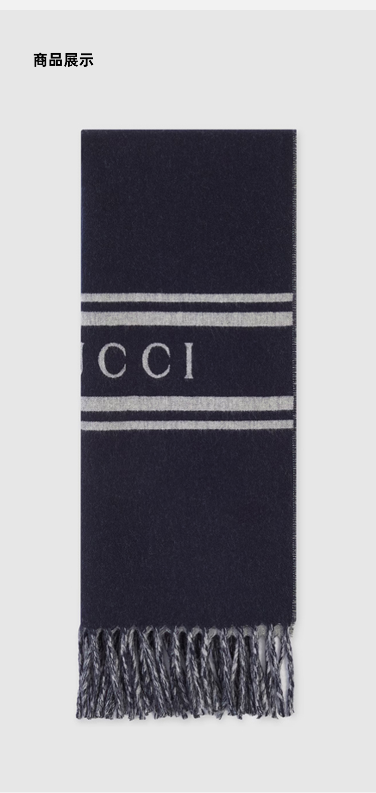 GUCCI 古驰 男士字母徽标提花羊毛围巾 深蓝色 795304 4GA17 4162