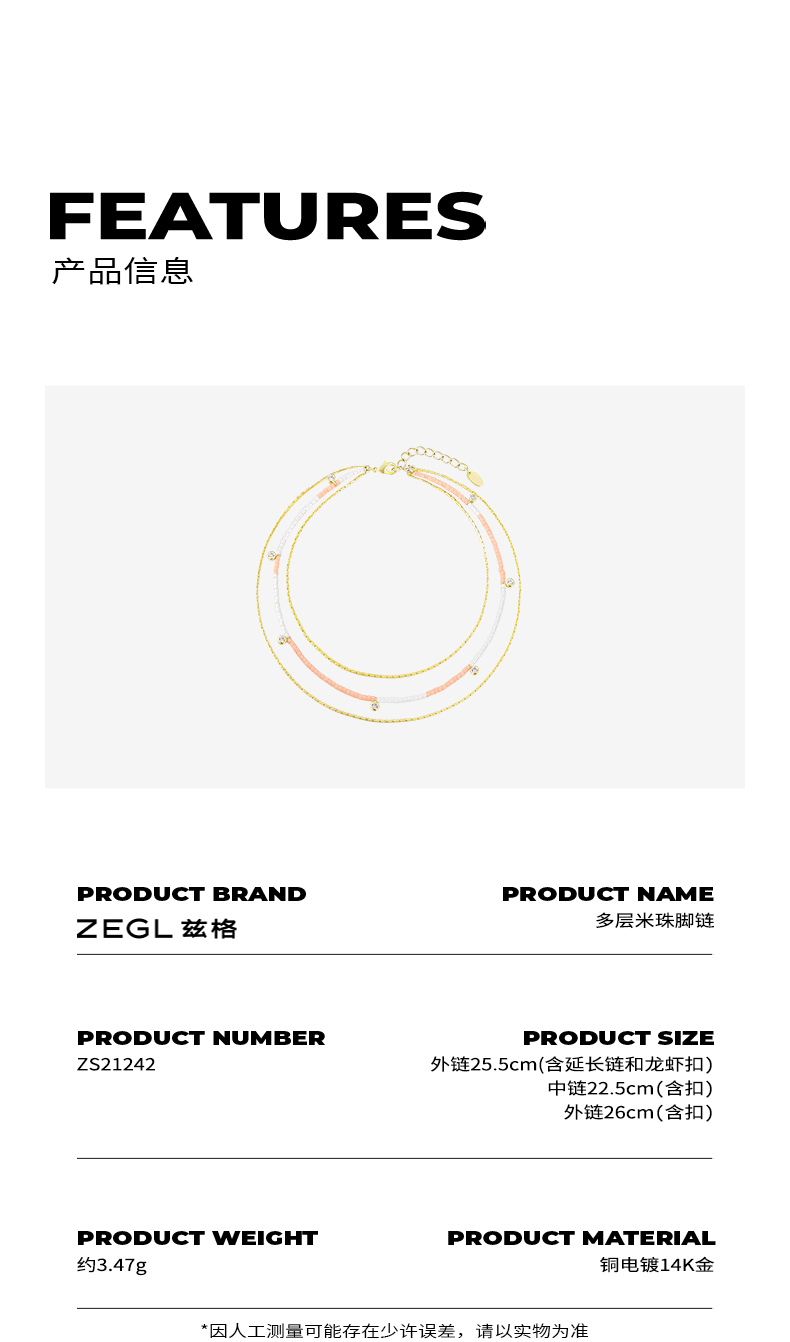 ZEGL设计师度假系列米珠多层脚链女夏森系2023新款高级感脚绳脚饰