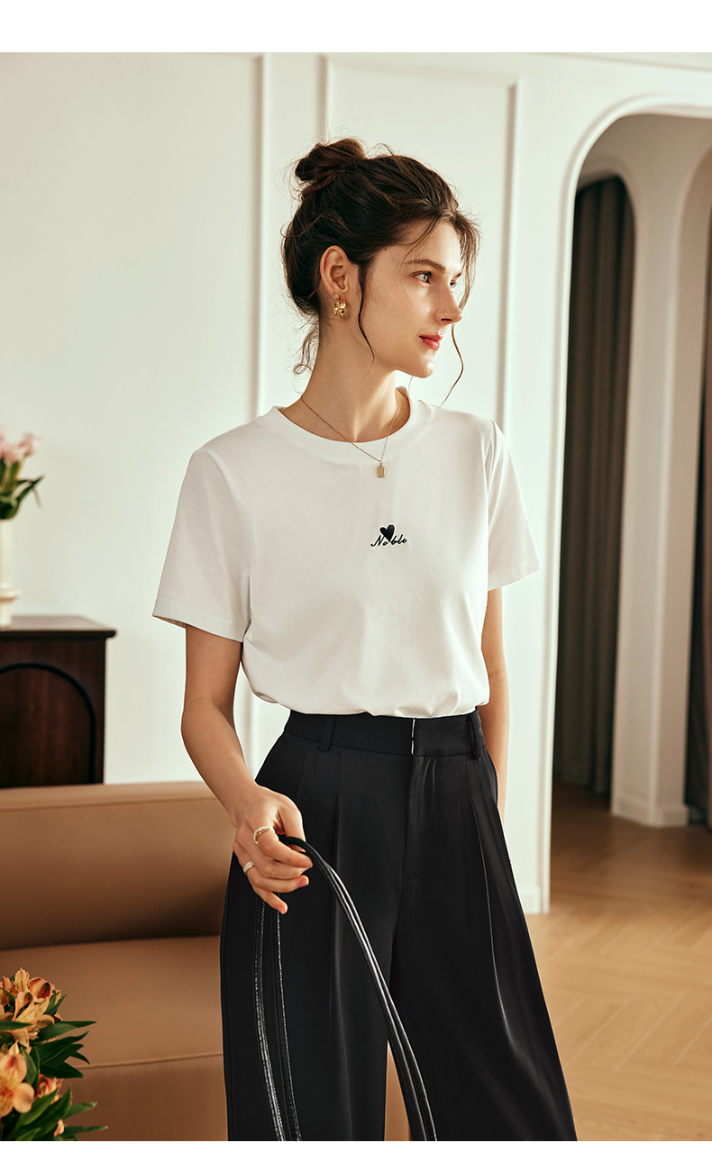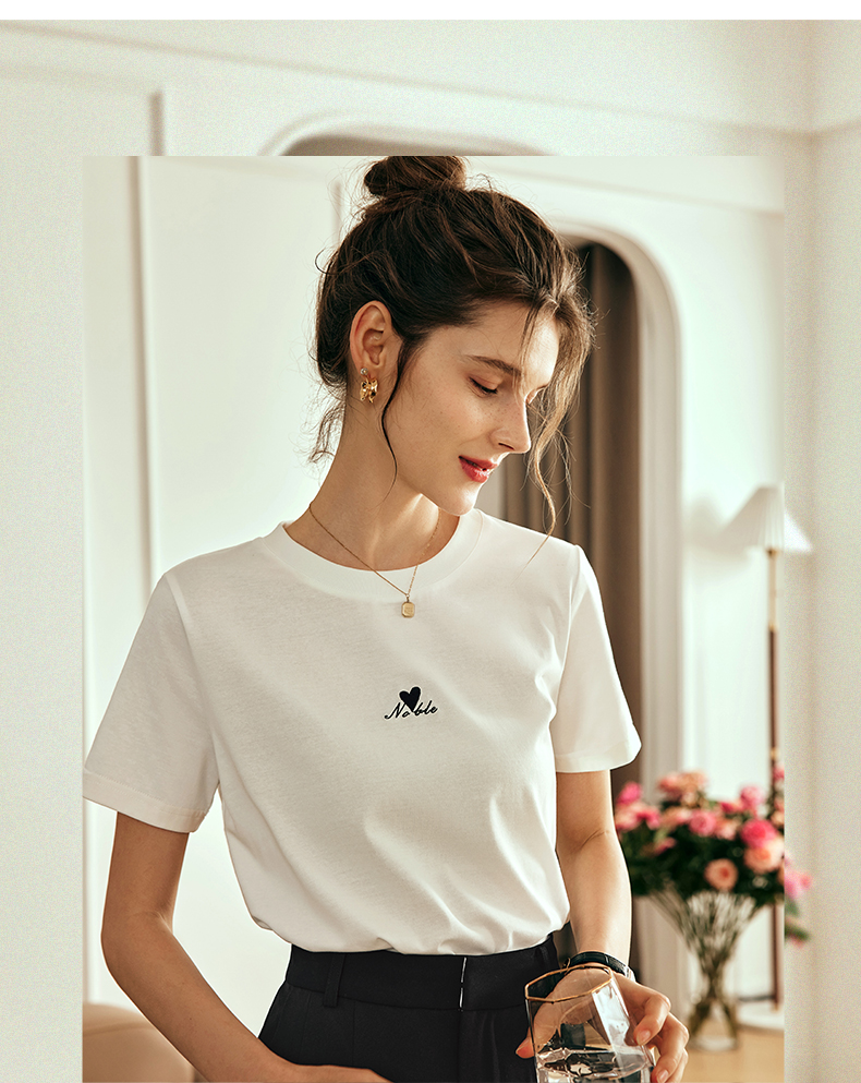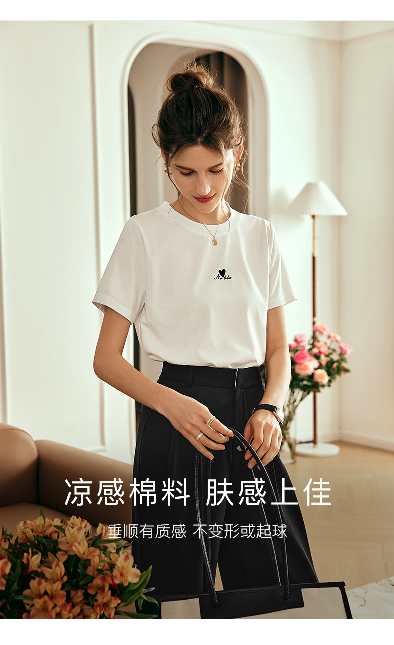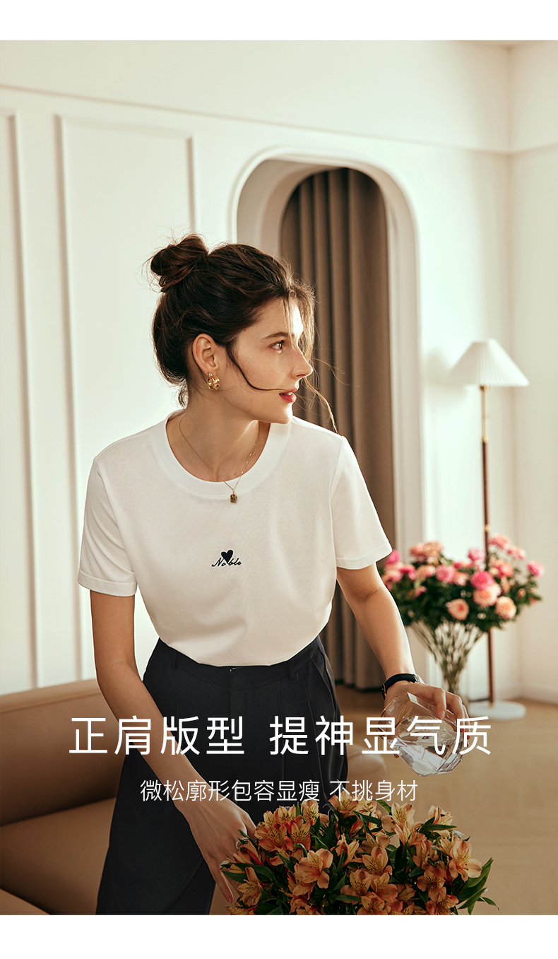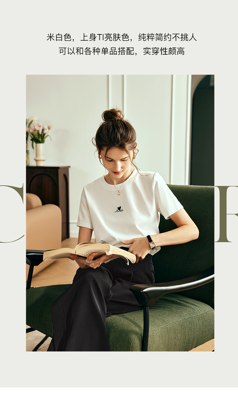 OLrain欧芮儿法式白色短袖T恤女夏季2023年新款简约正肩显瘦上衣