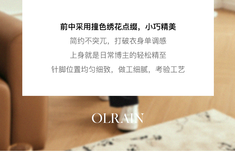 - “精致”是欧芮儿olrain品牌文化的核心,欧芮儿认为,精致的女人,不但要外在动人,更要内在迷人,内外兼修,有魅力、有气质、有内涵,自信而不自傲,优雅而不矫揉,自有万种风情而不轻浮,更不故作矜持。