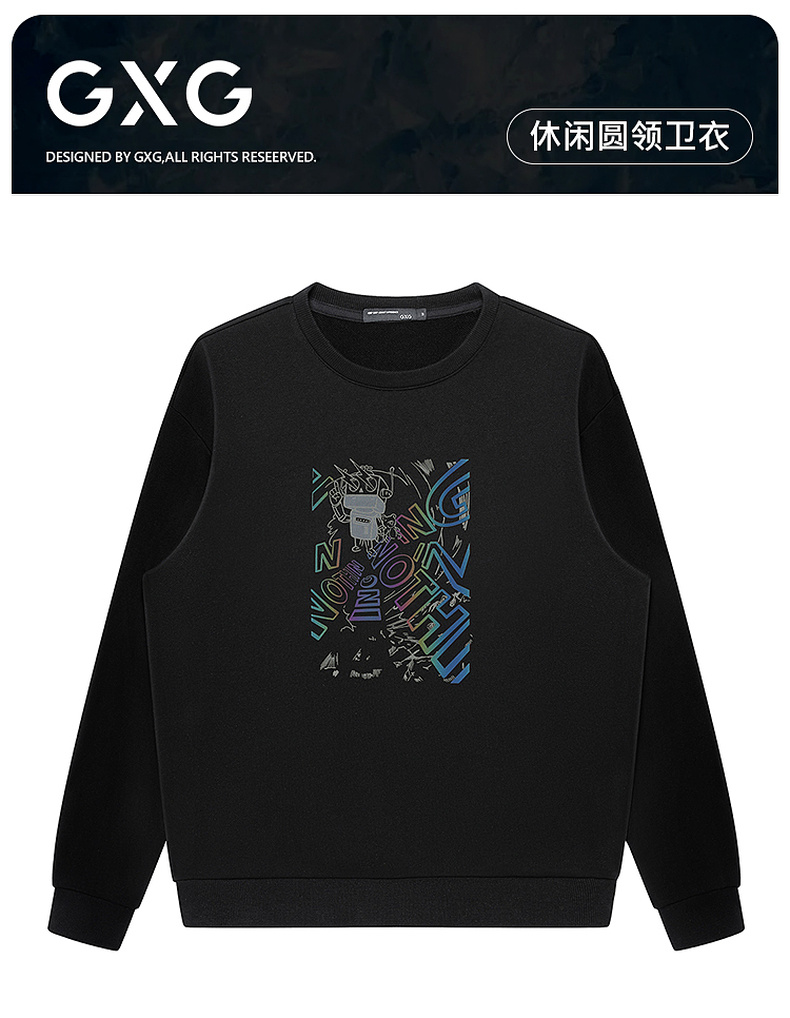 GXG男装【3D机器人】秋季七彩反光印花舒适纯棉男式圆领卫衣K&C