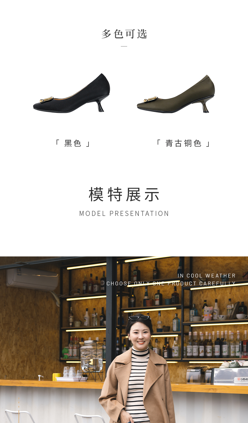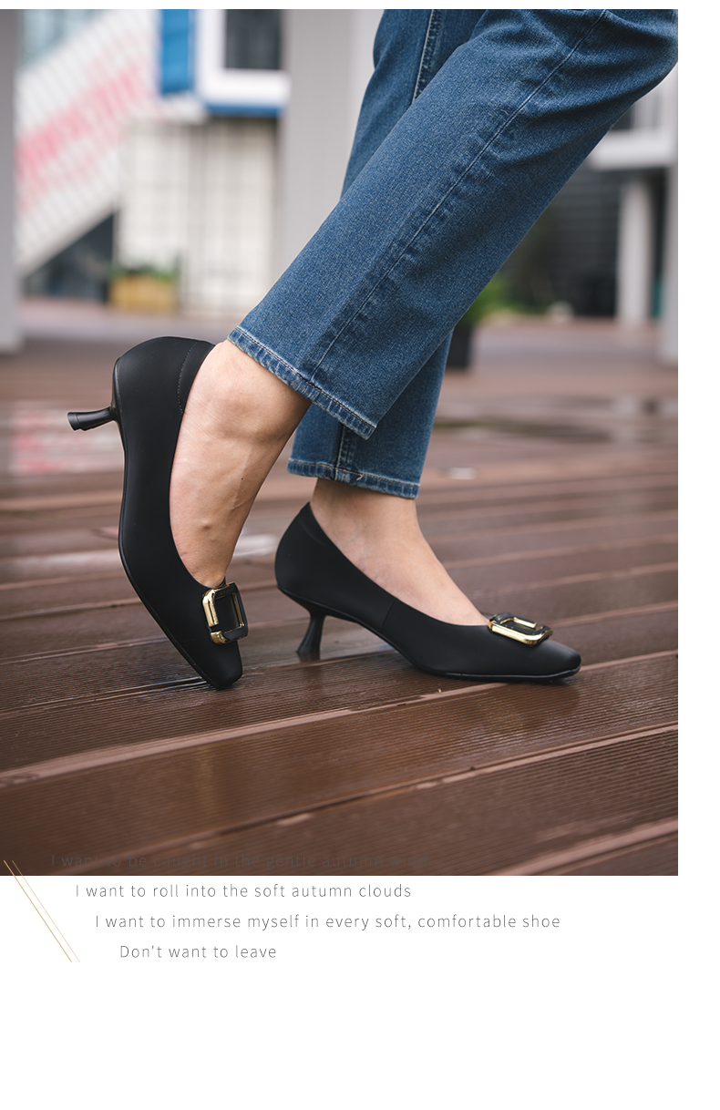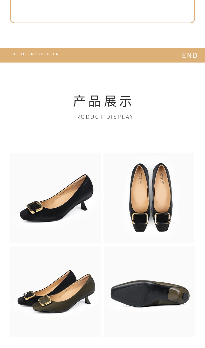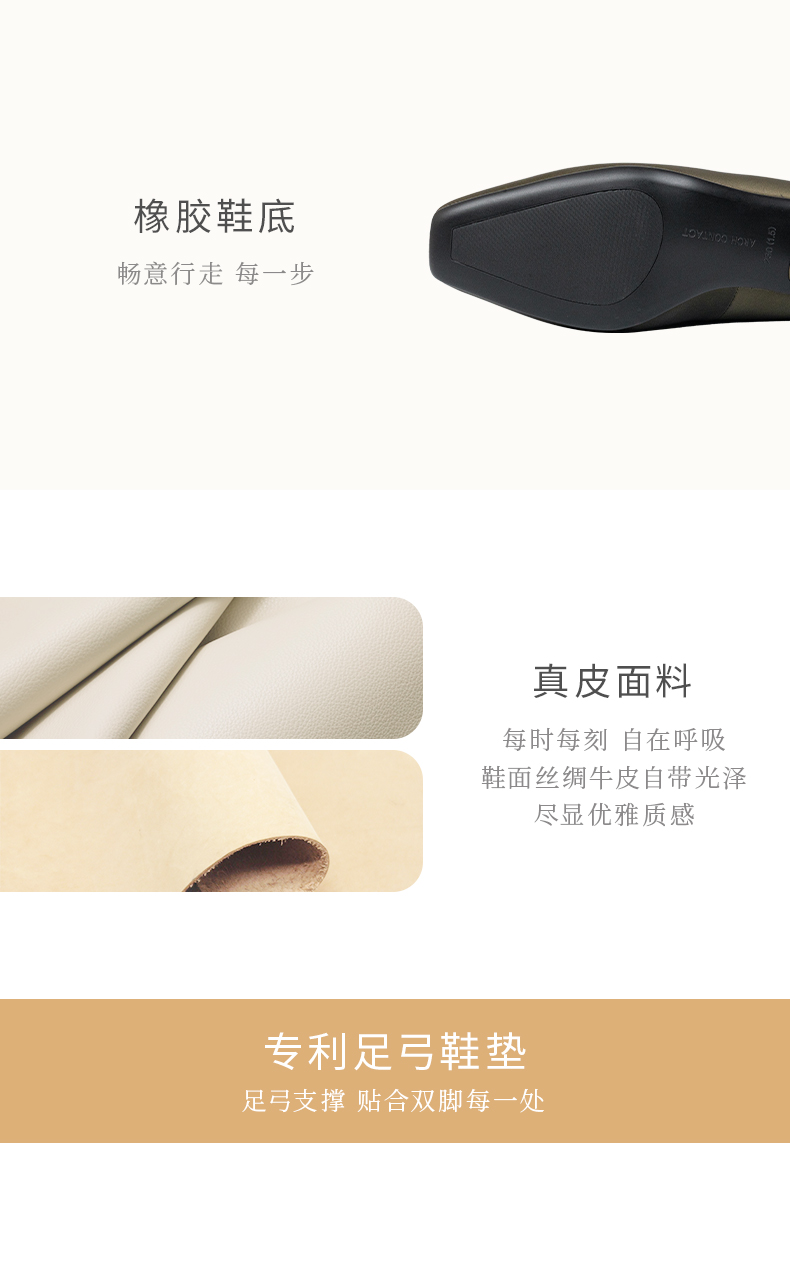 ARCH CONTACT安启美奈方头饰扣浅口优雅丝绸皮单鞋