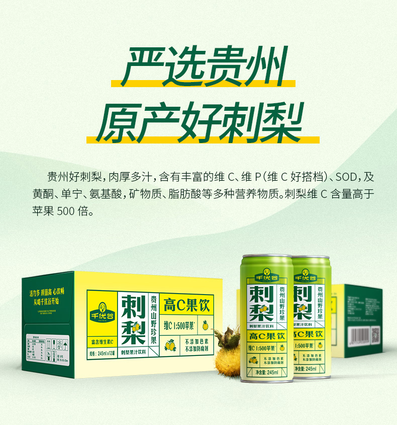 贵州 千优谷 刺梨高C果汁饮料 245ML*12罐/箱