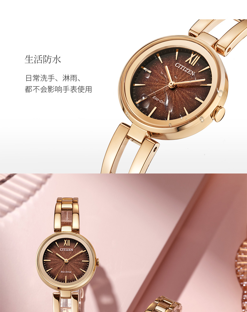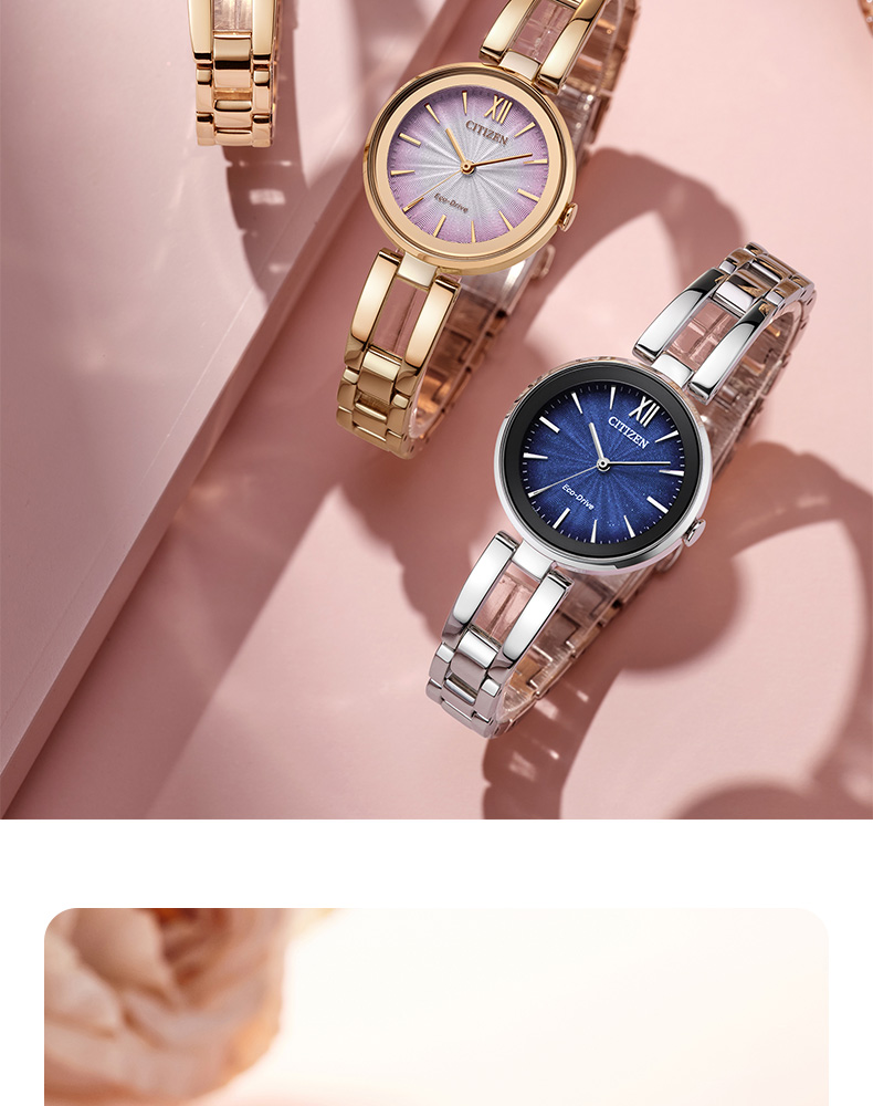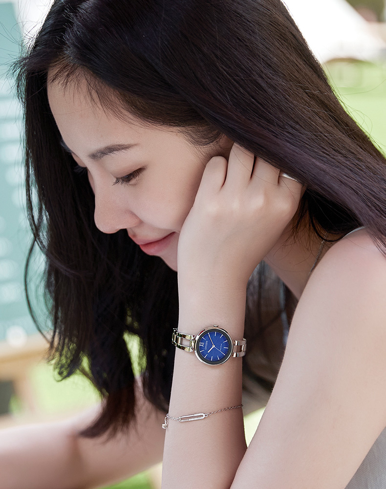 西铁城官方正品时尚光动能涟漪纹表盘钢带女表EM0500-73L