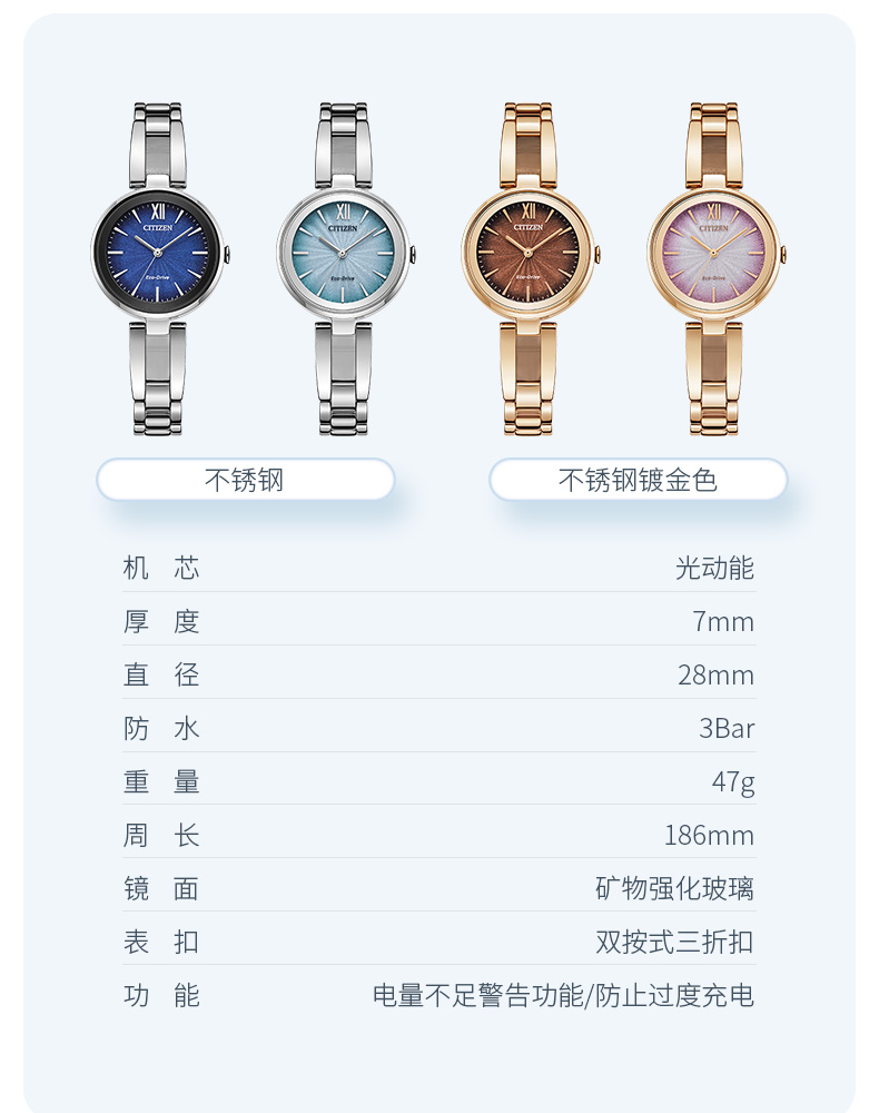 西铁城日本官方正品光动能时尚简约女表EM0809-83Z