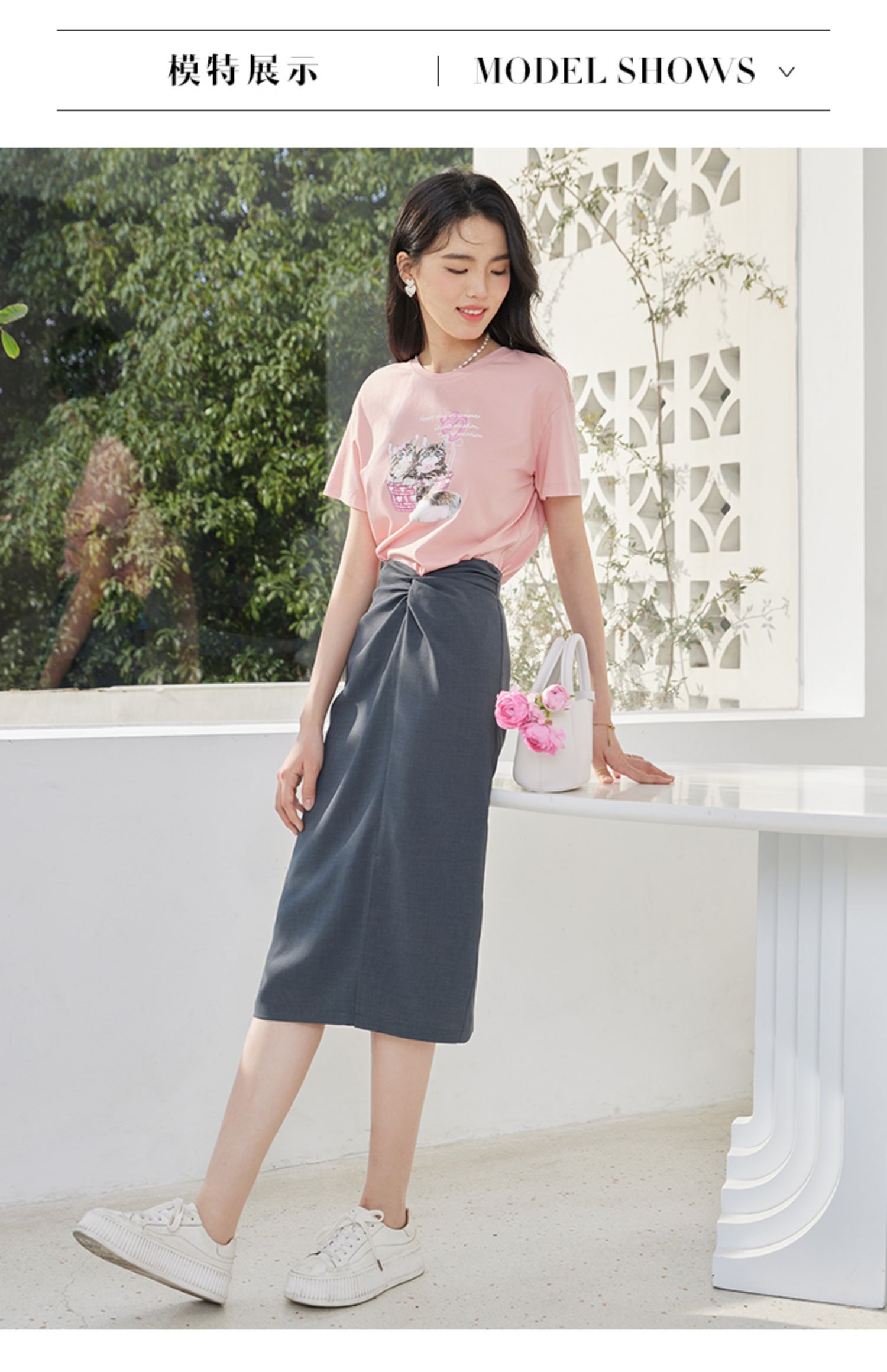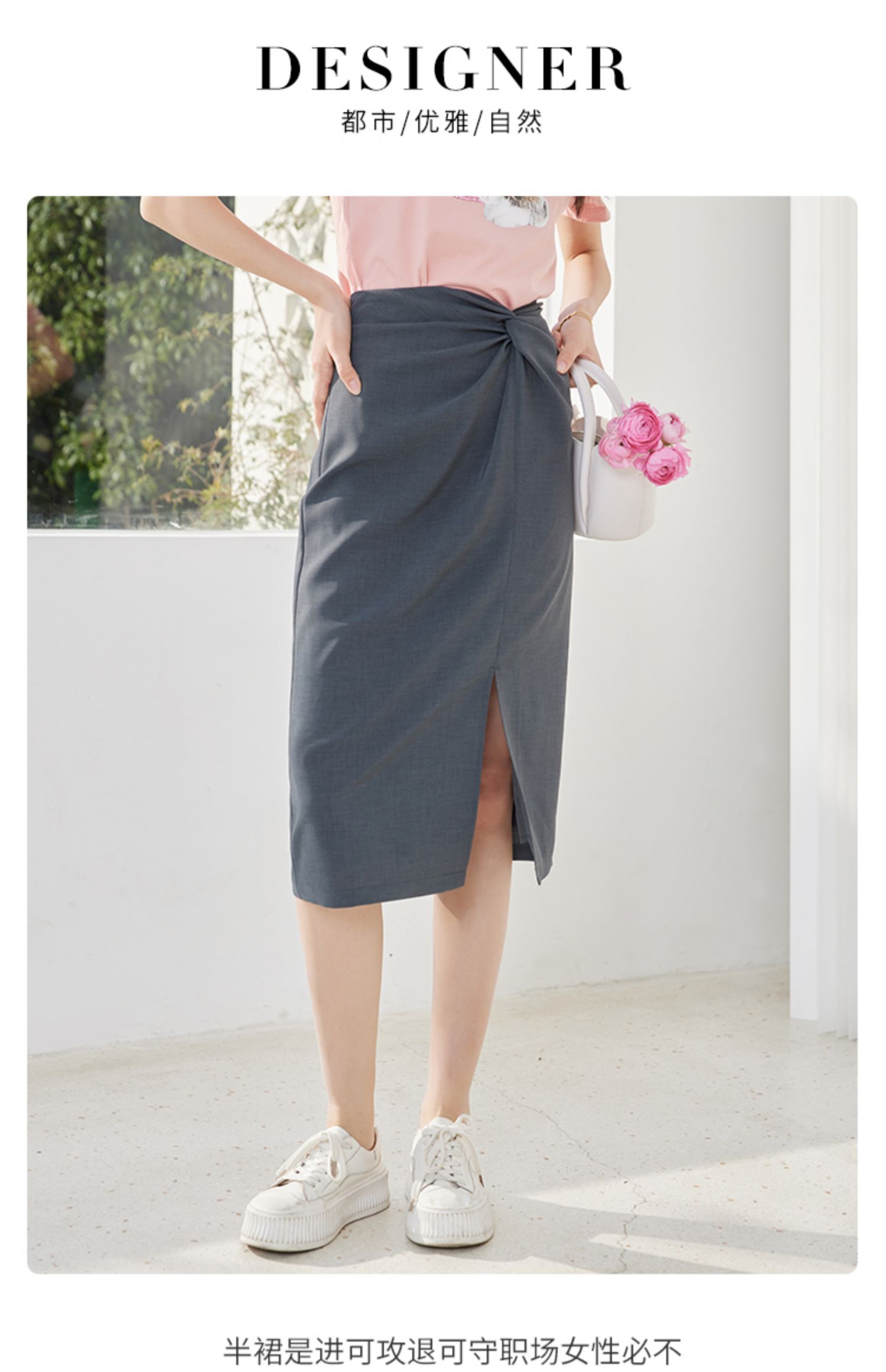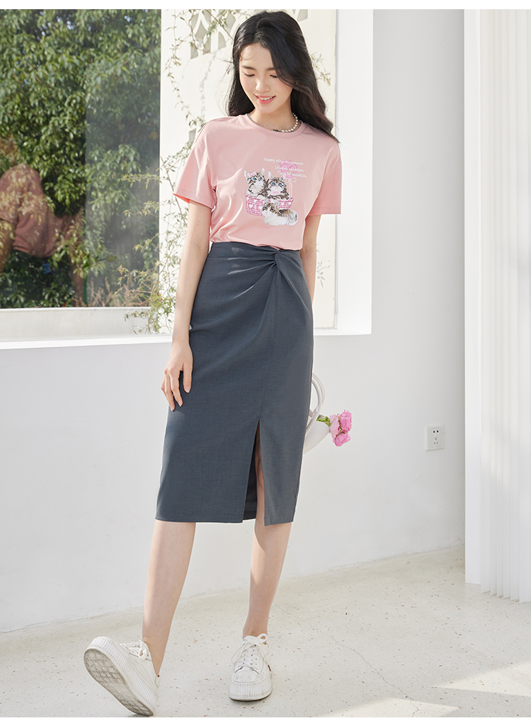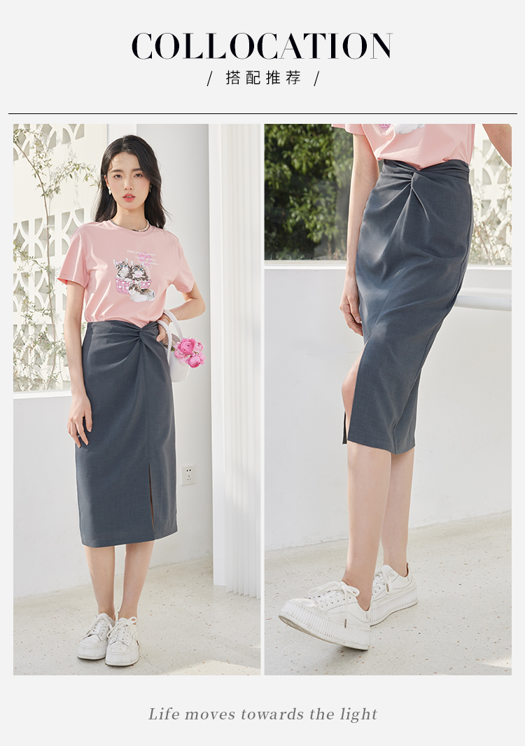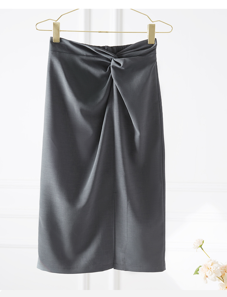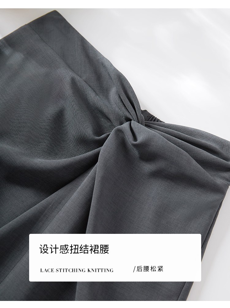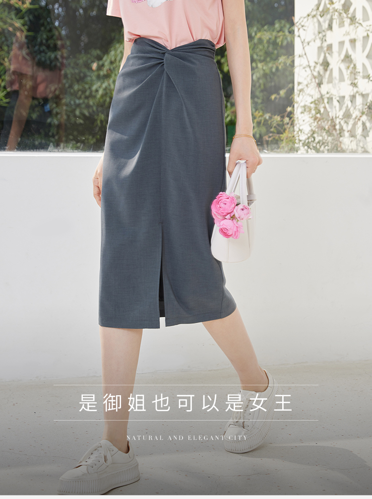 【专属特价】熙世界【莫奈深灰】设计感扭结高腰开叉包臀半身裙女夏休闲中长裙
