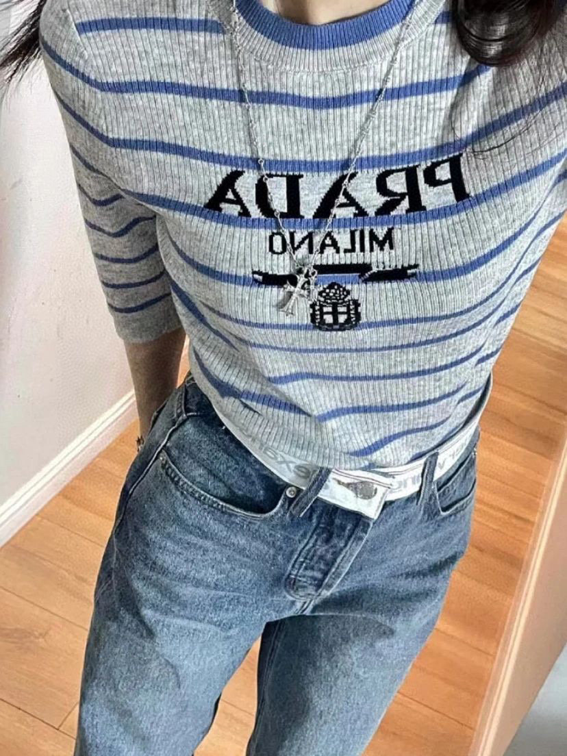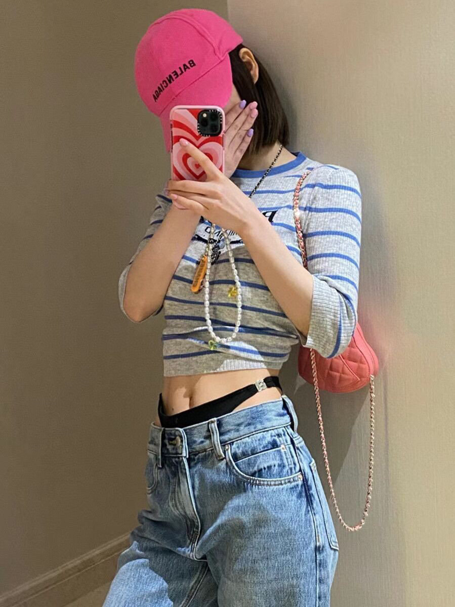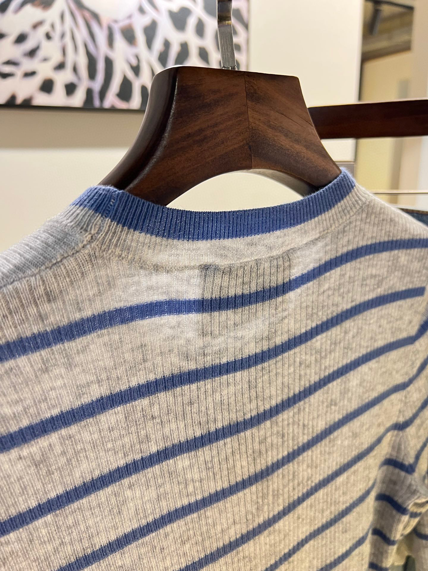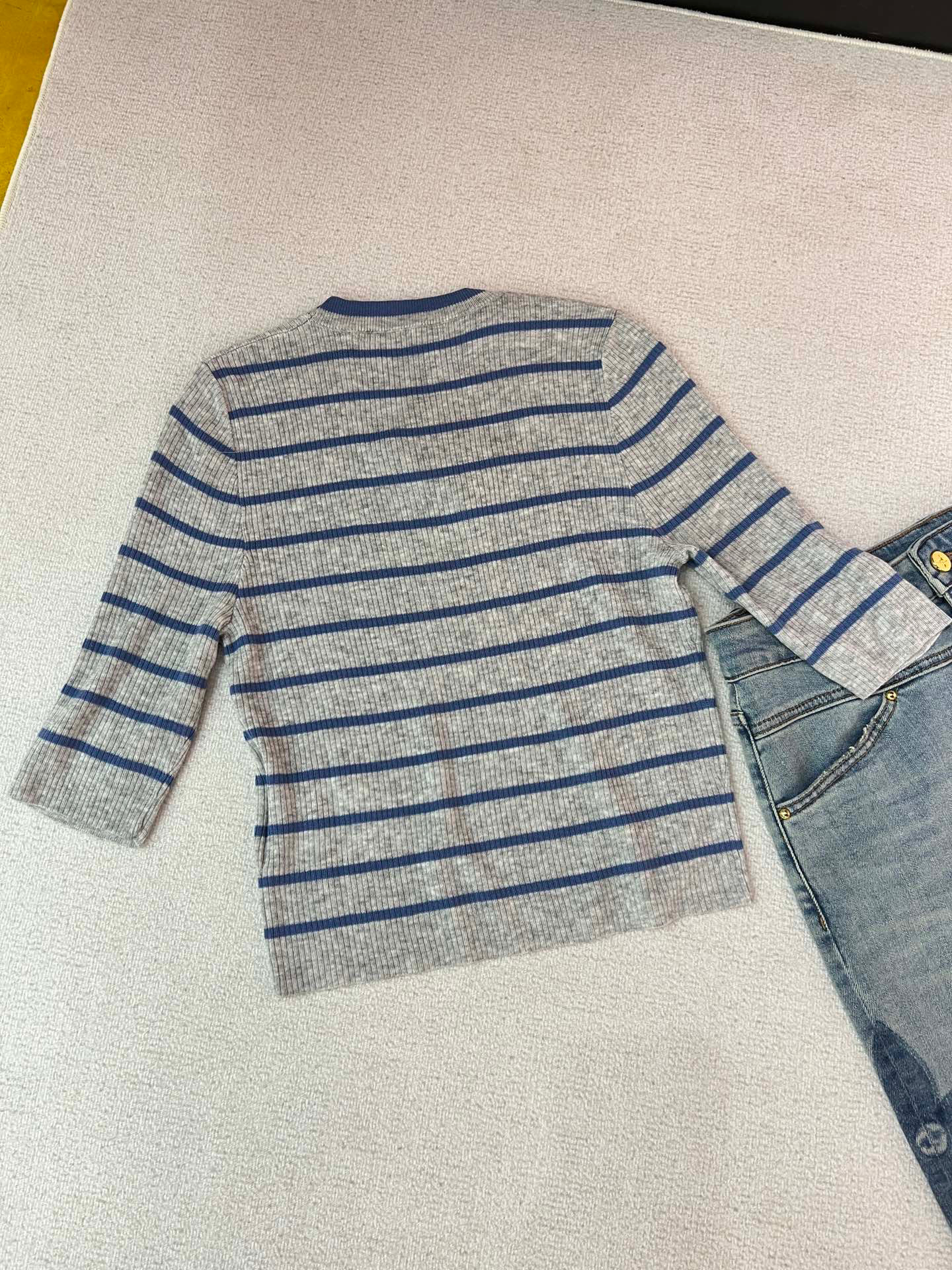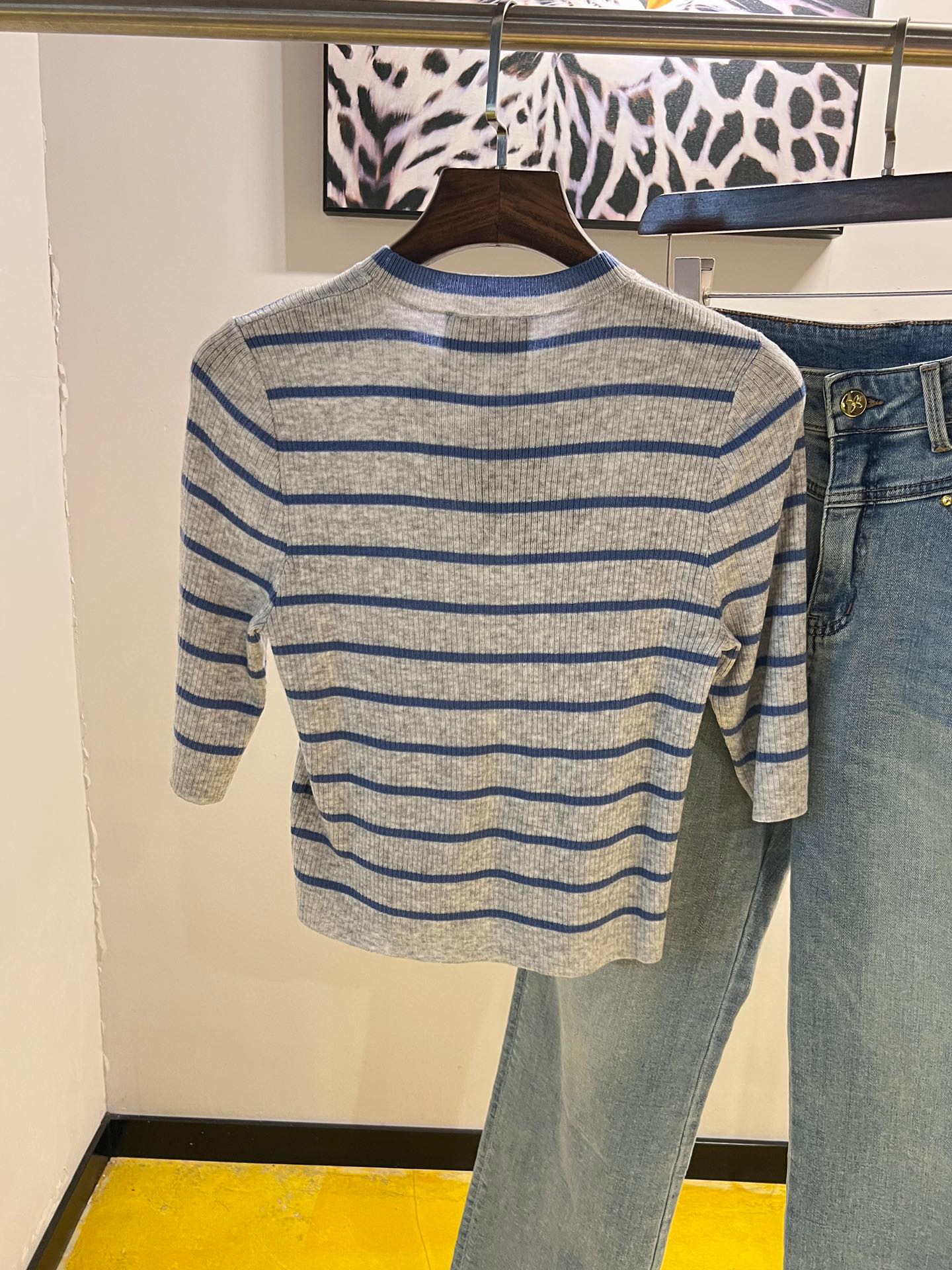 灰蓝条纹针织小上衣,浅浅推荐一下,灰蓝真的的很高级