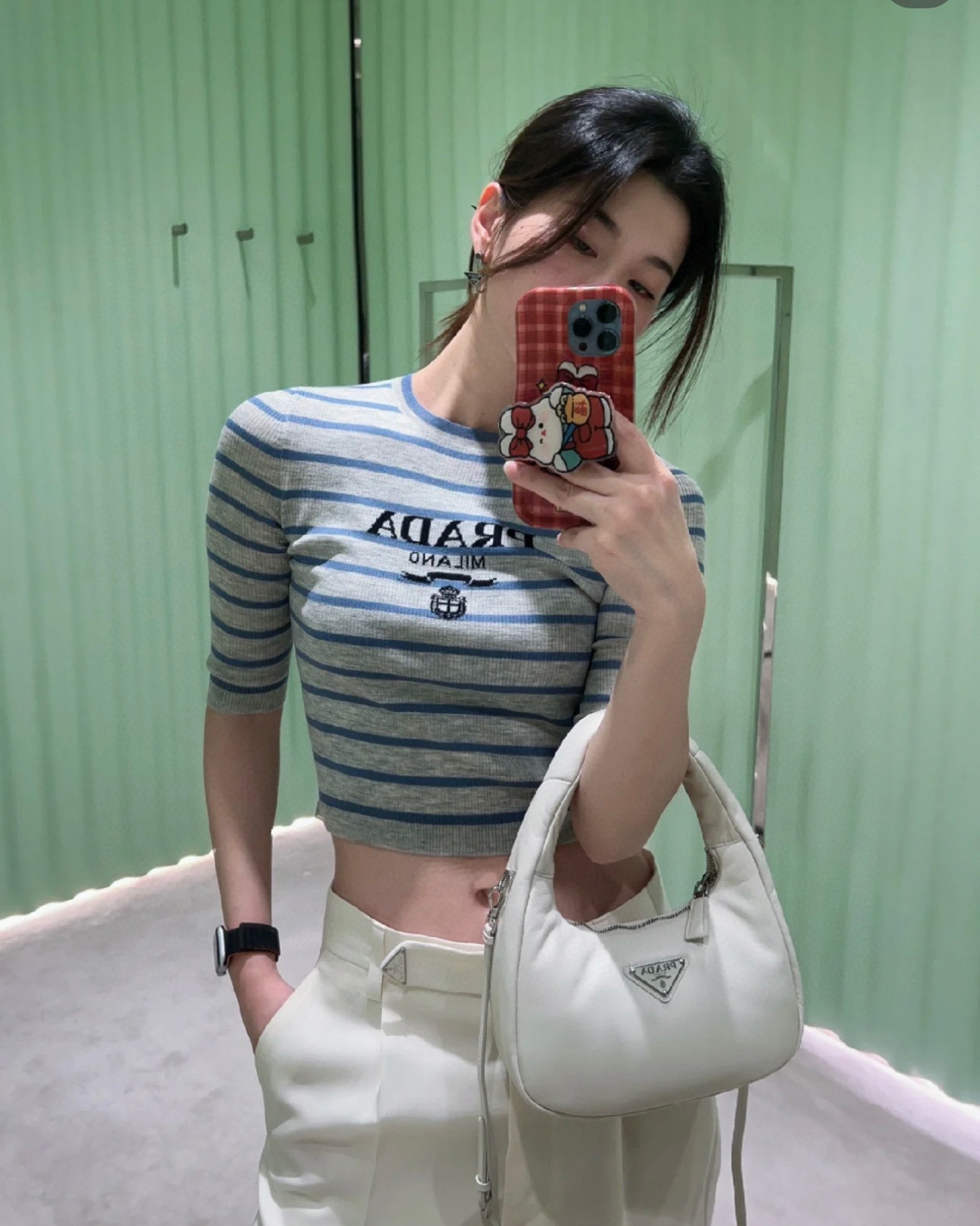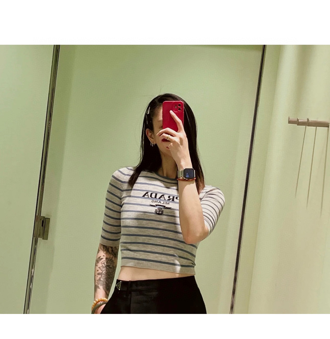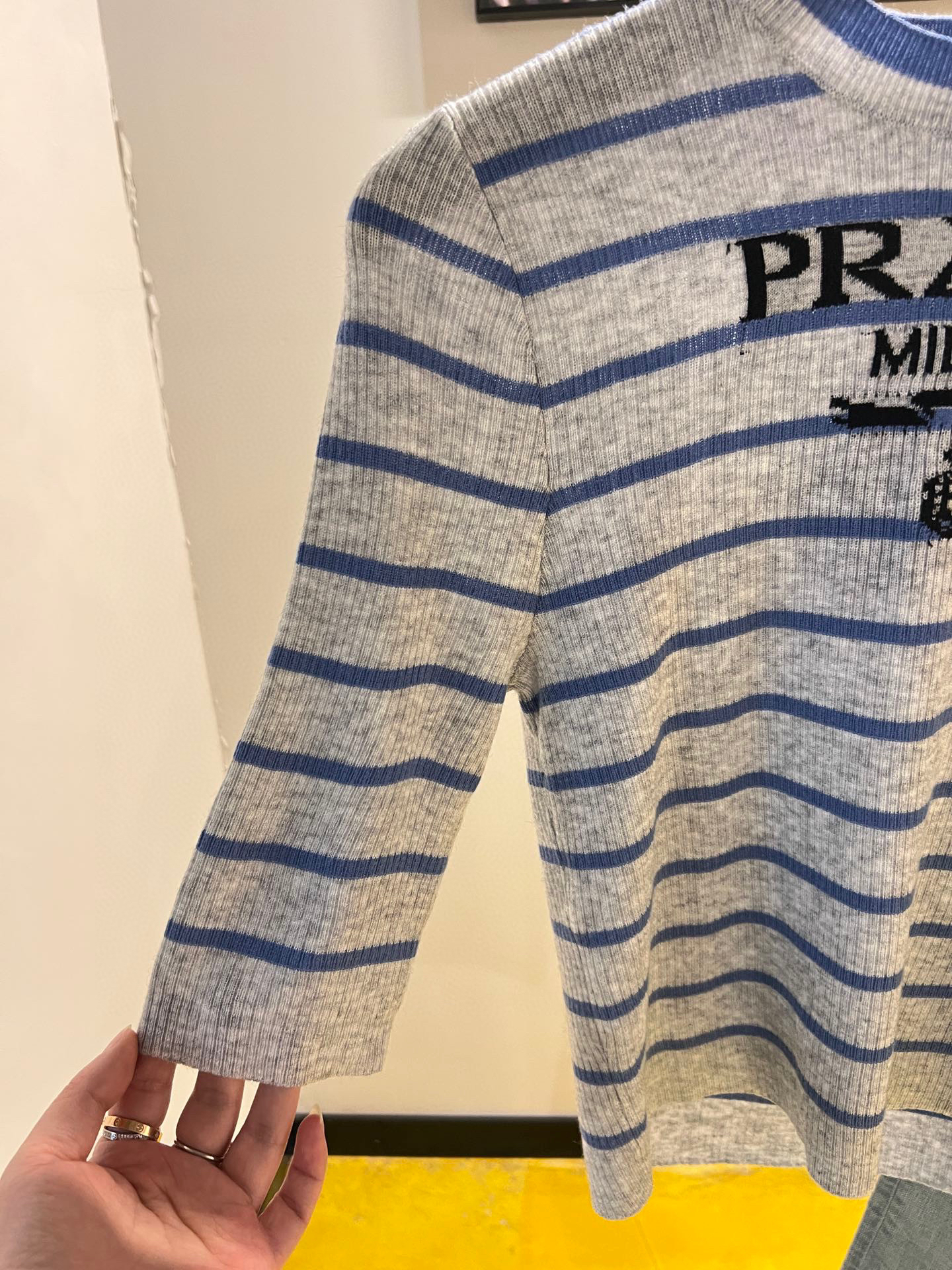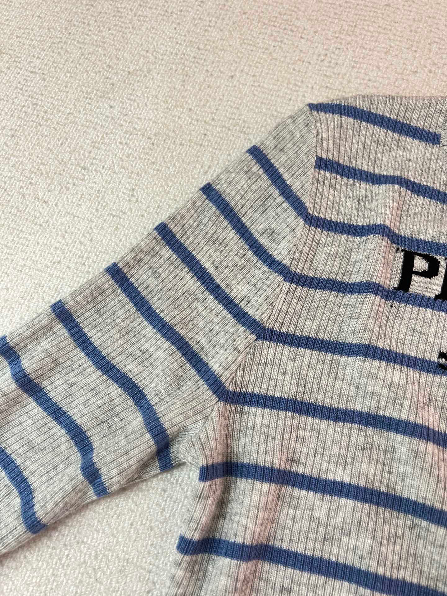 灰蓝条纹针织小上衣,浅浅推荐一下,灰蓝真的的很高级