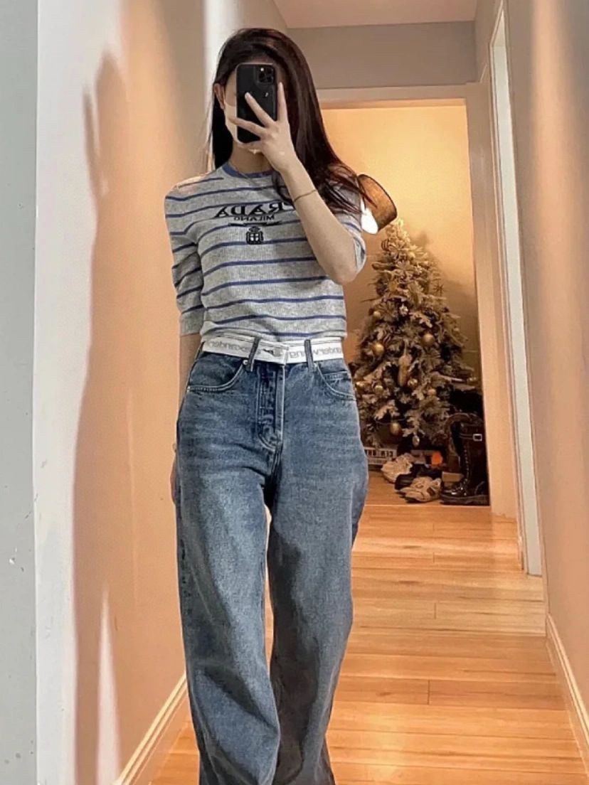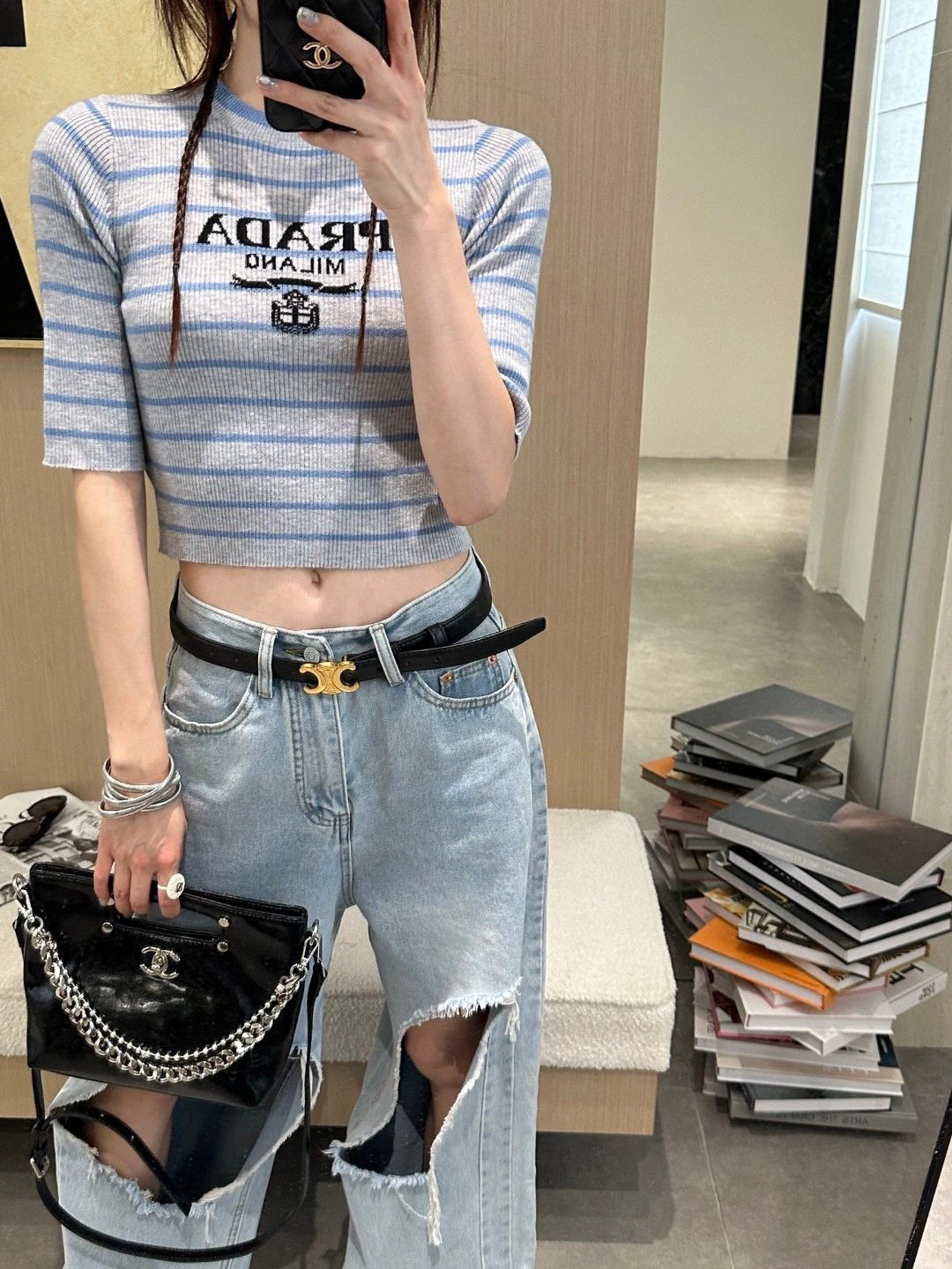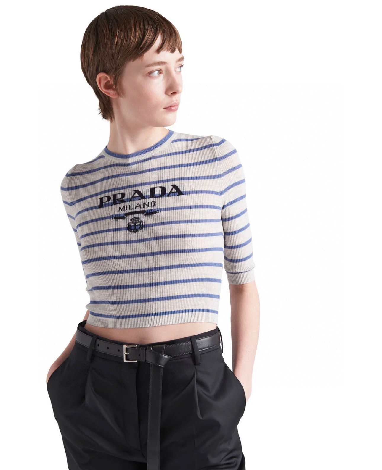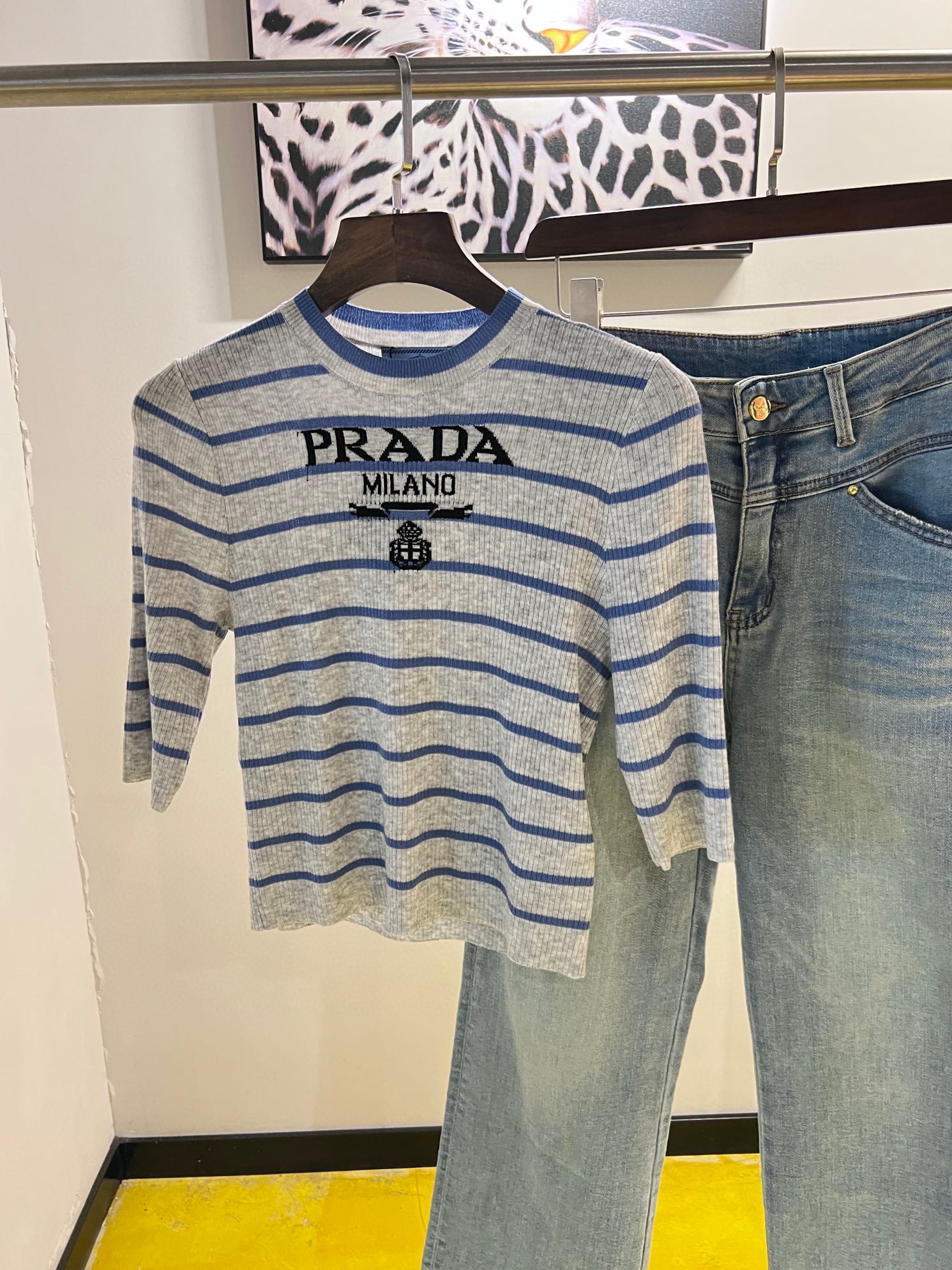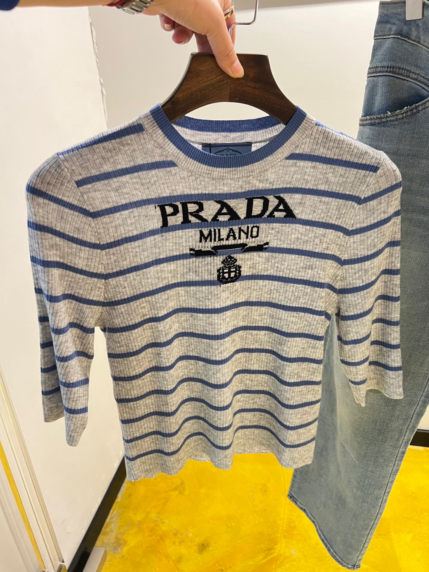 灰蓝条纹针织小上衣,浅浅推荐一下,灰蓝真的的很高级