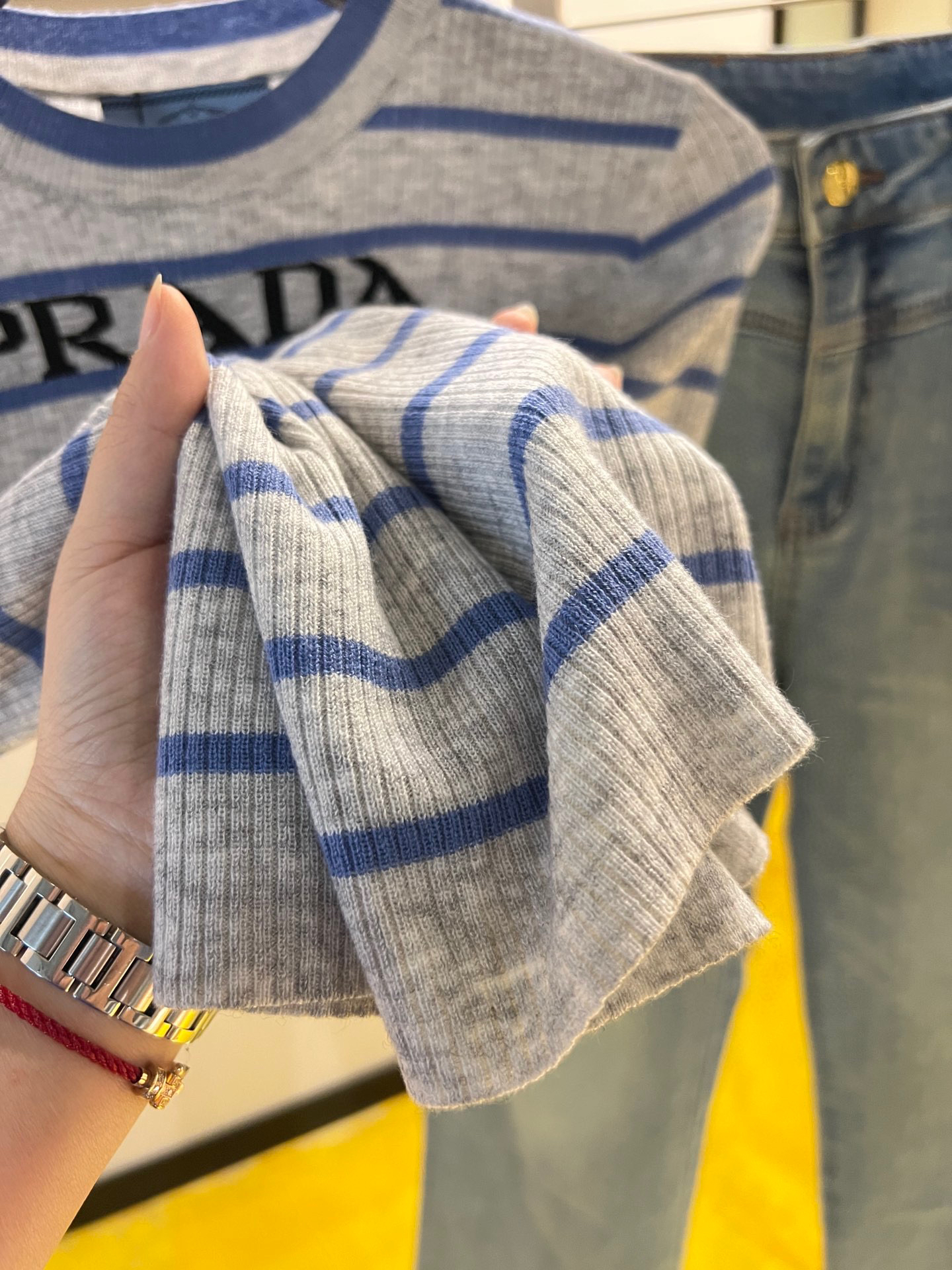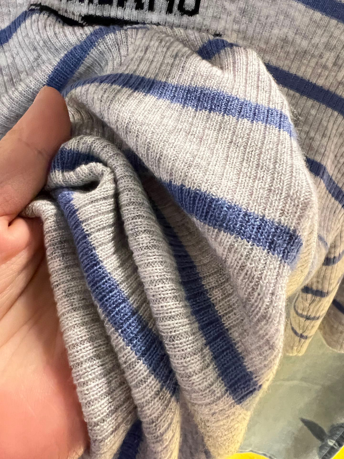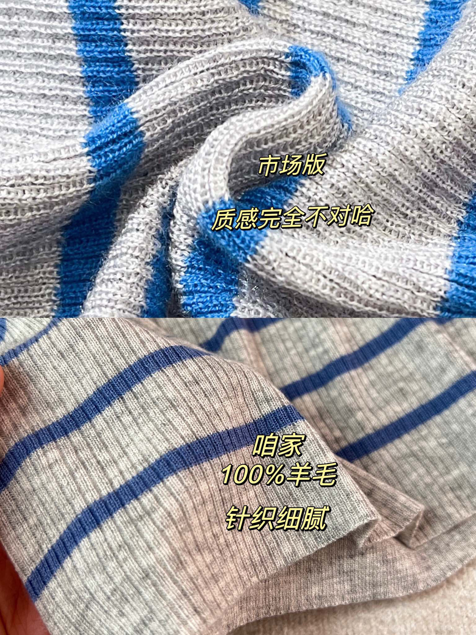 条纹的魅力就在于:时髦度 实穿性,条纹的毛衣不单单是满足视觉,触觉的享受,质感更是好到赞,纱线条感均匀细致并具备较好的筋骨感。胸前品牌撞色字母提花设计,丰富整体层次感,不单调,轻奢气质,优雅知性的单品,爱美的美美们行动起来吧,版型超赞,不挑人,巨好穿,上身效果不是一般的好。针织的天然回弹性,拥有不挑身材的好穿度,哪里有肉遮哪里的类型,配合羊毛🦙材质,非常的垂坠,穿起来宽松,经典圆领设计,修饰脸型和脖颈线条,百搭又不挑人~~
