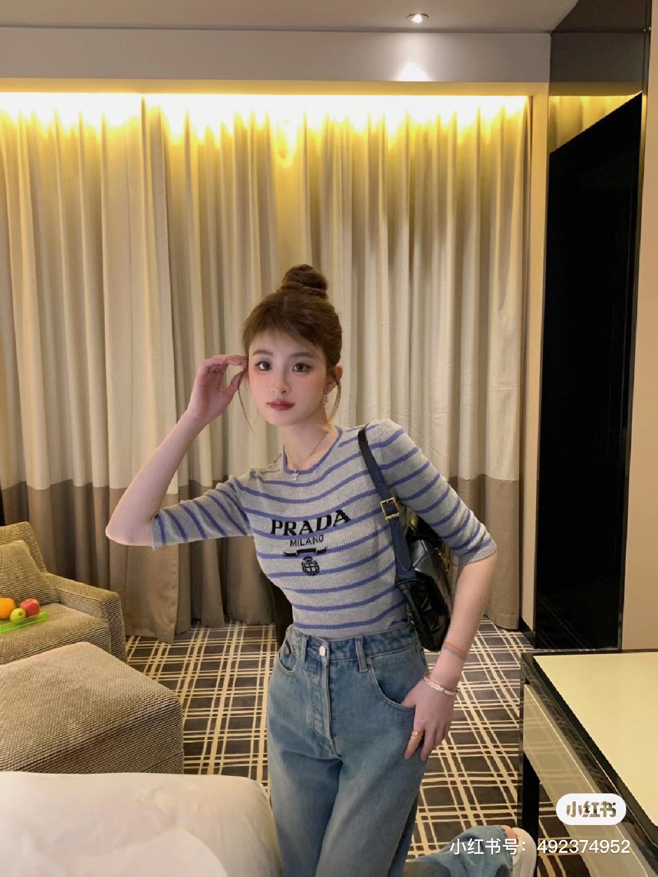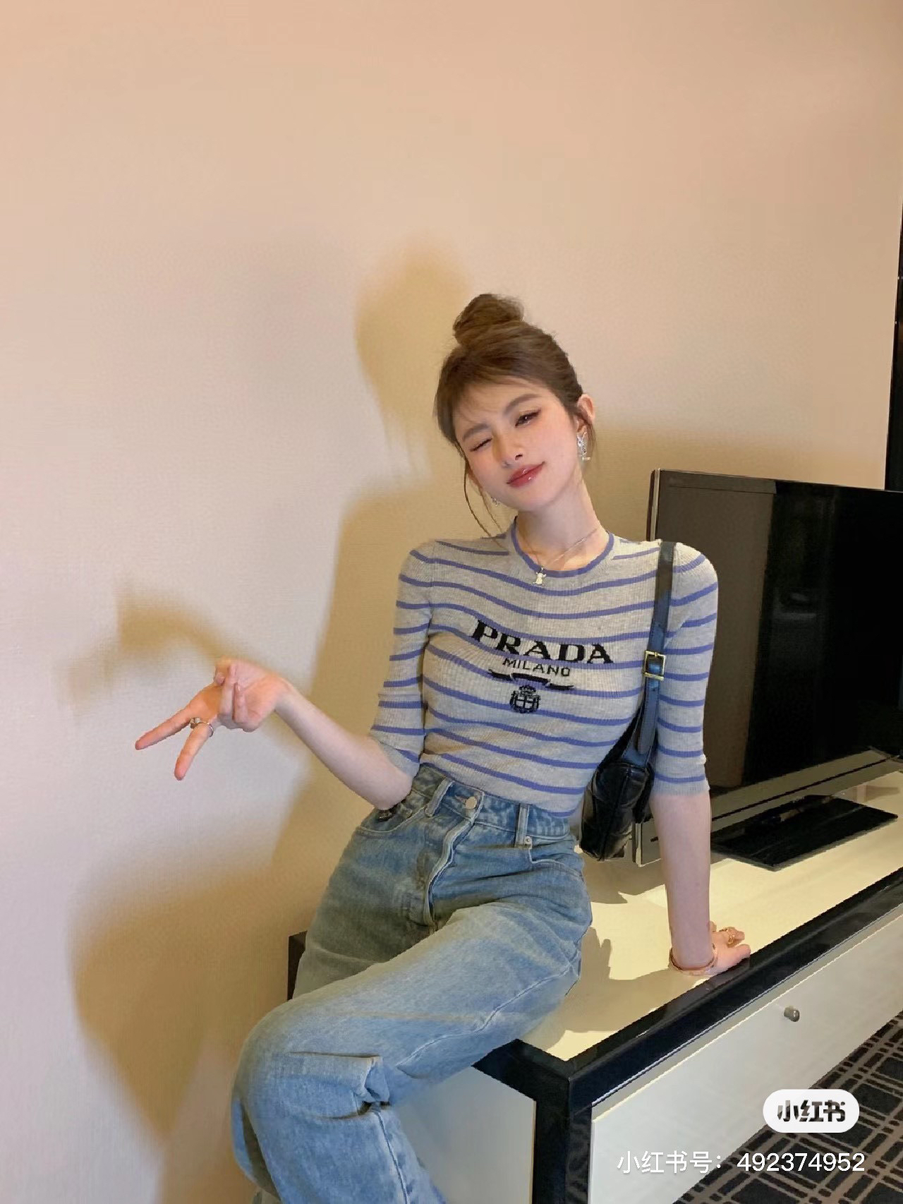 蓝色条纹很清爽绝美可盐可甜 上身真的巨舒服~