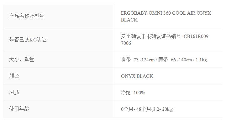 ERGOBABY OMNI 360 COOL AIR ONYX BLACK 婴儿背带JPY带授权招加盟代理