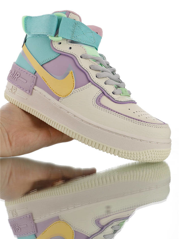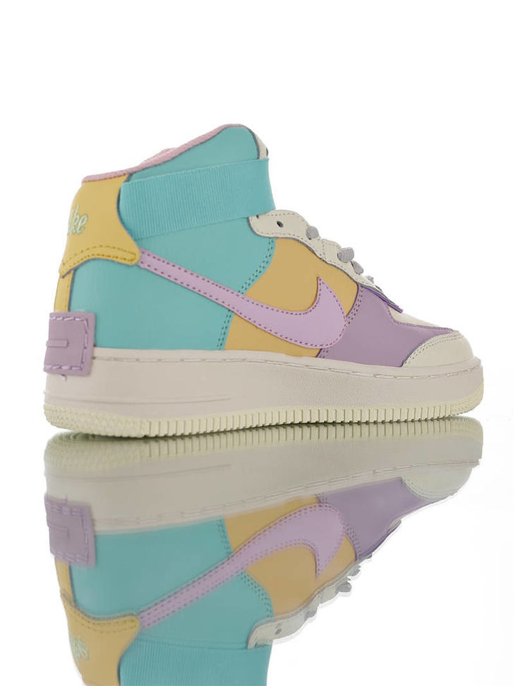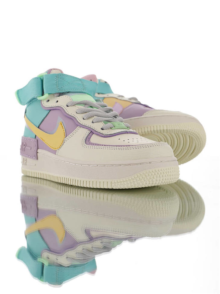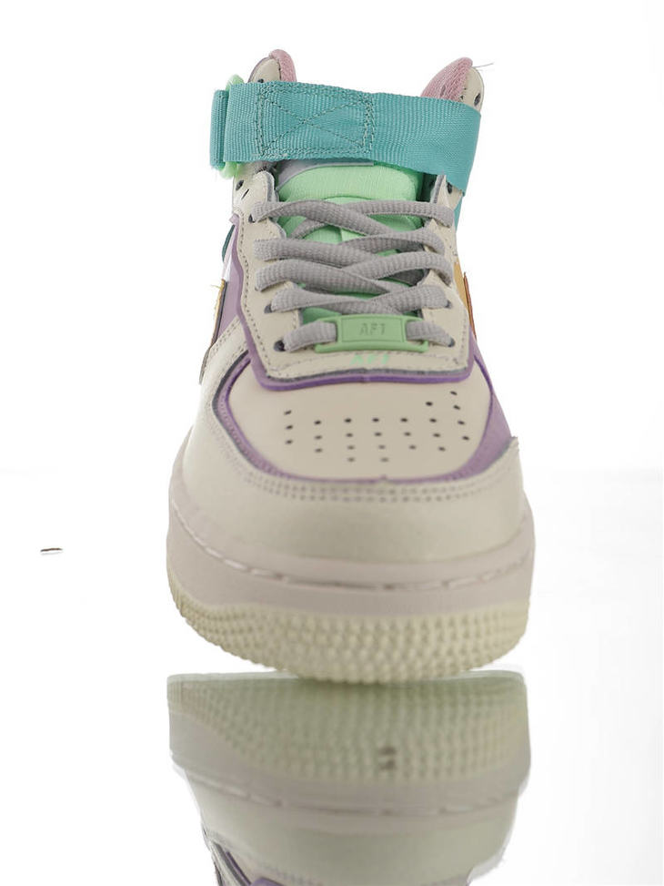 耐克Nike WMNS Air Force 1 Shadow Mid 网红林小宅同款 双层轻量EVA发泡中底 防滑RB橡胶外圈底鞋底 耐克空军一号中帮板鞋 拼接马卡龙糖果粉紫