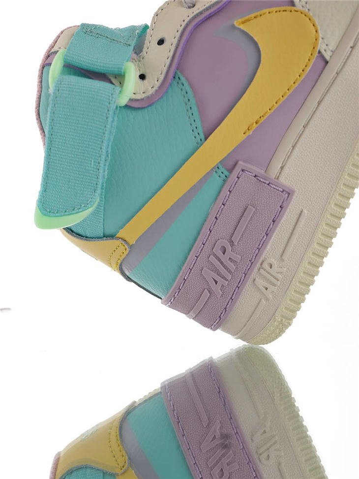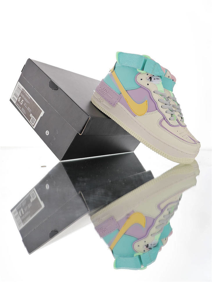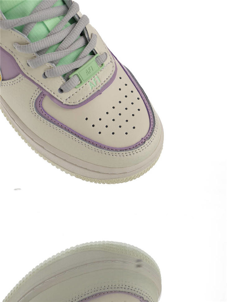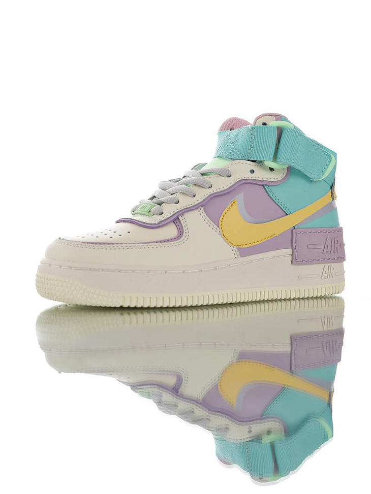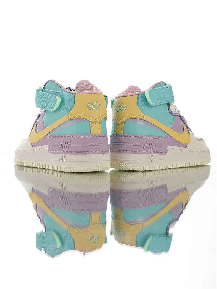 耐克Nike WMNS Air Force 1 Shadow Mid 网红林小宅同款 双层轻量EVA发泡中底 防滑RB橡胶外圈底鞋底 耐克空军一号中帮板鞋 拼接马卡龙糖果粉紫