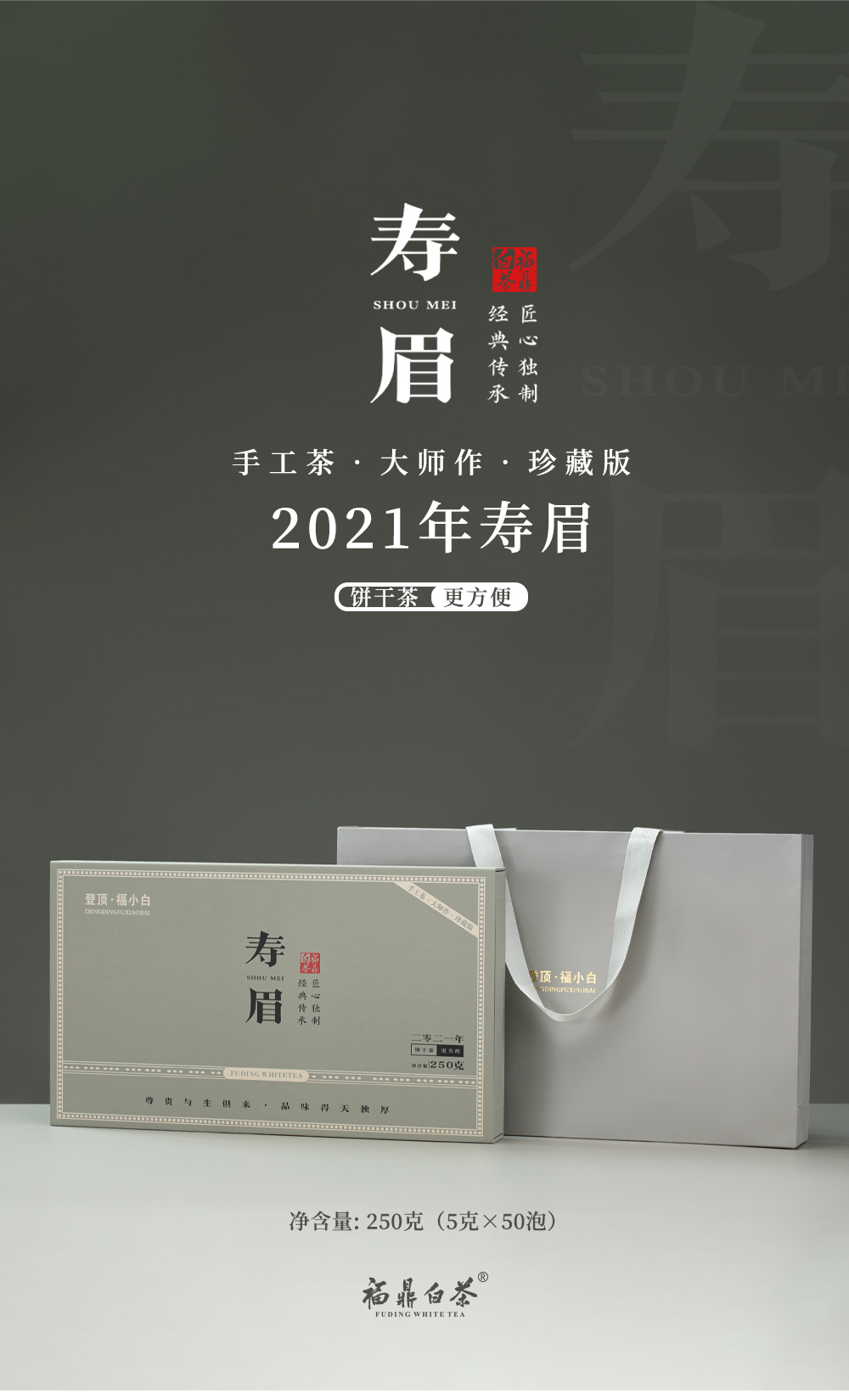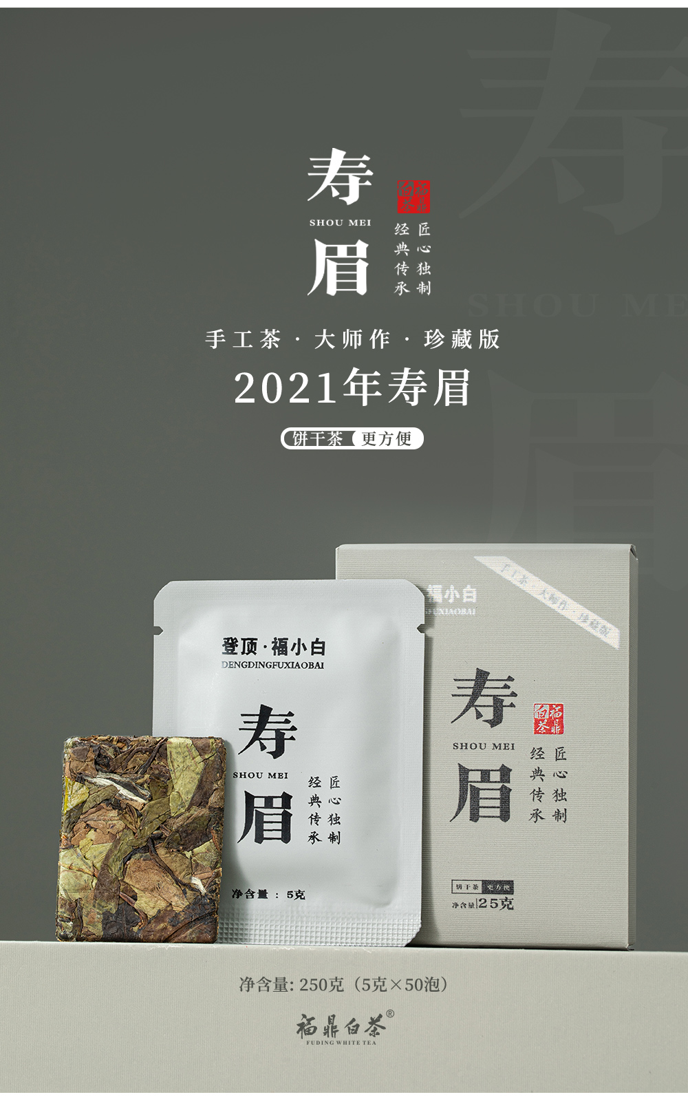 登顶·福小白 福鼎白茶2021年春寿饼干茶 5g*50泡 250g