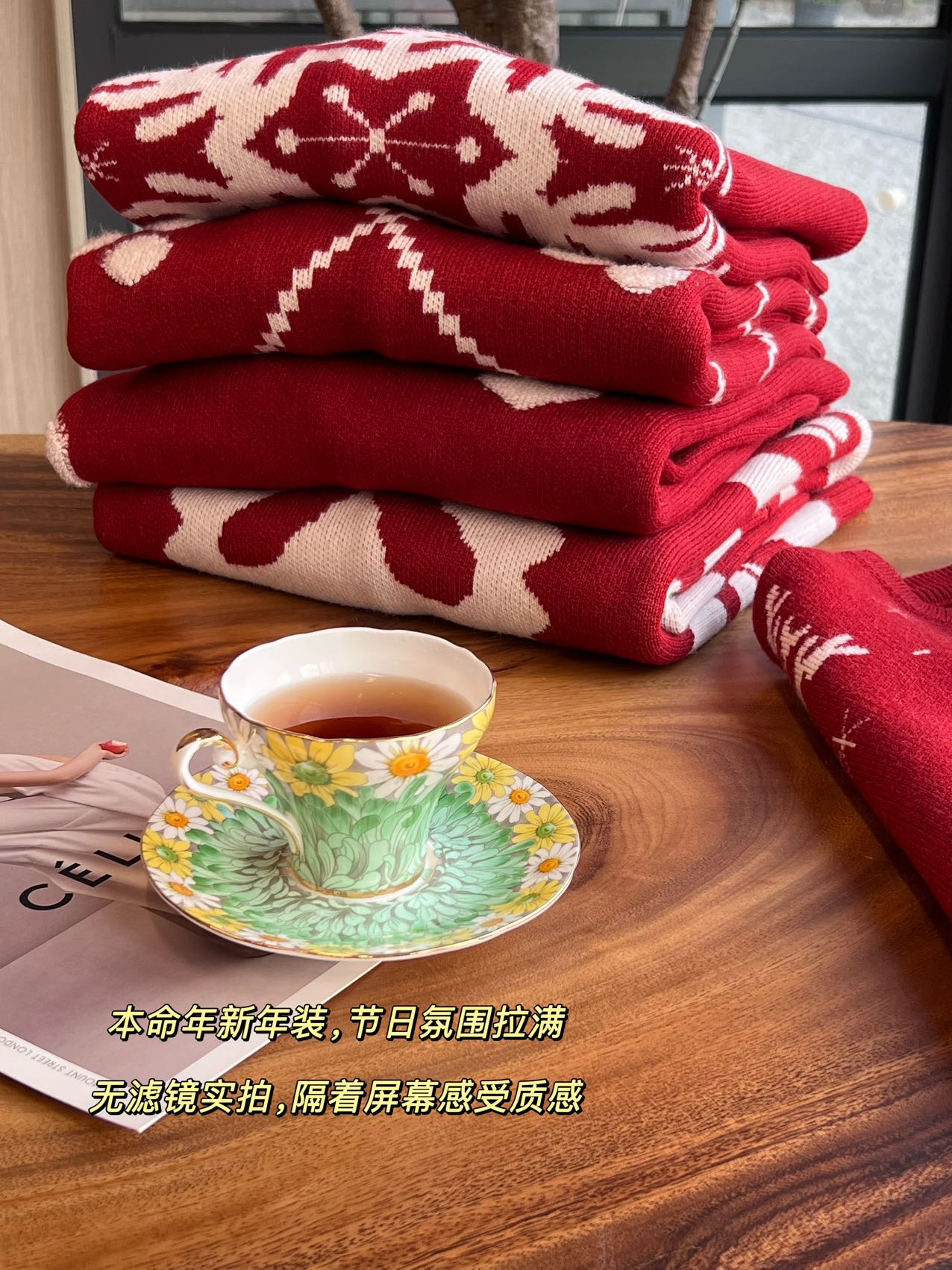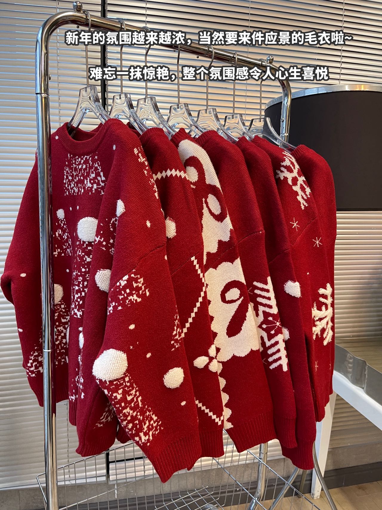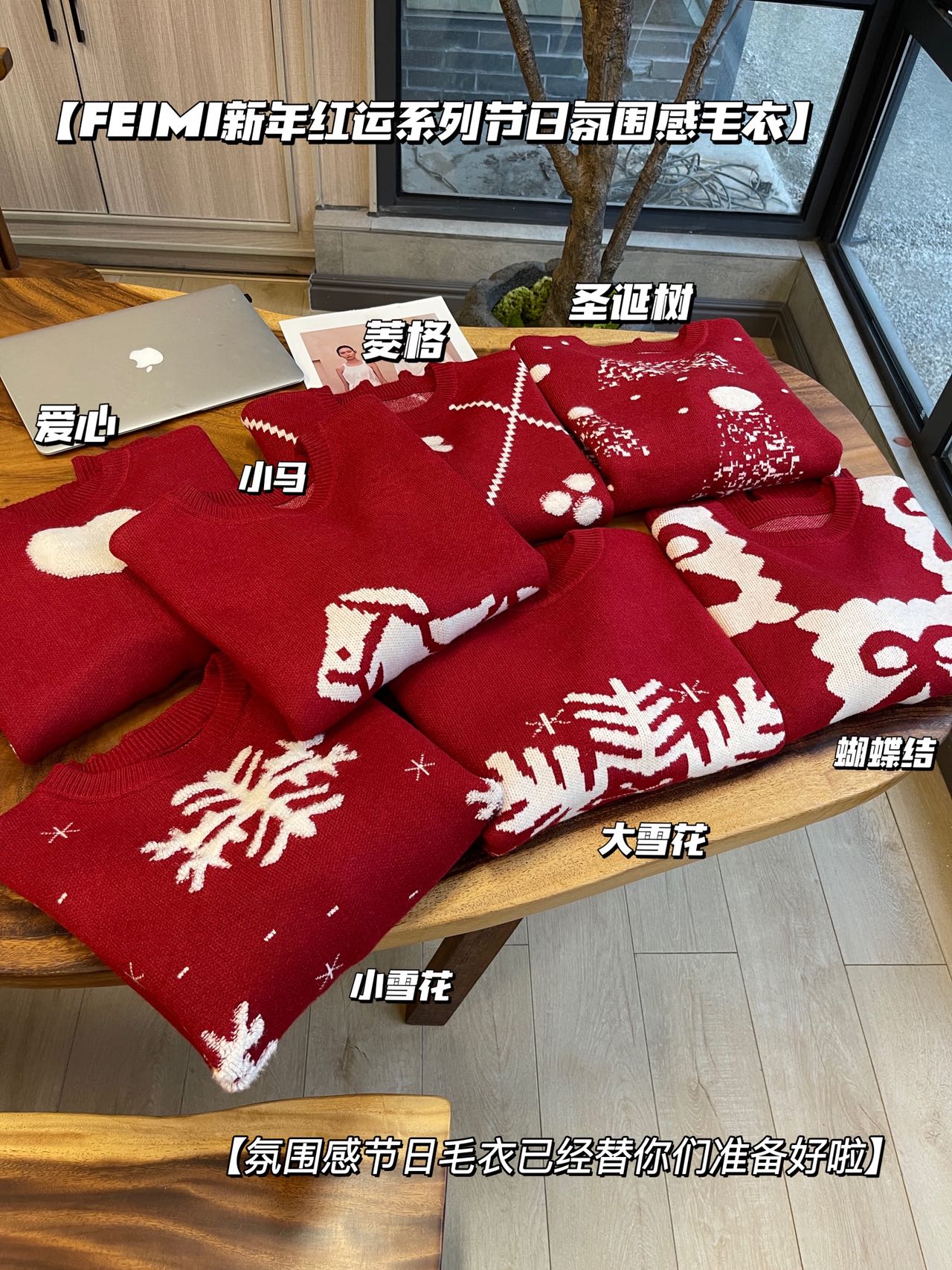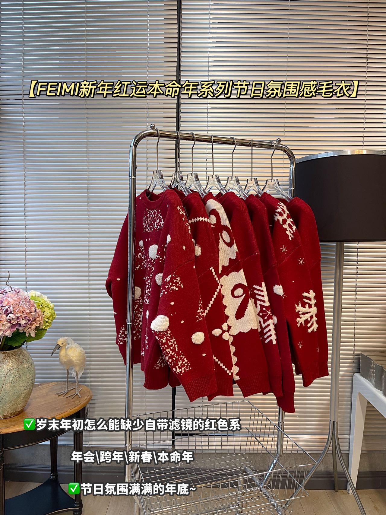【新年红毛衣丨款式多多】好运翻倍的显白红色系!圆领设计,穿脱方便,温暖又随性!有弹力,舒适柔软面料,亲肤细腻!节日氛围满满!【FM-X】