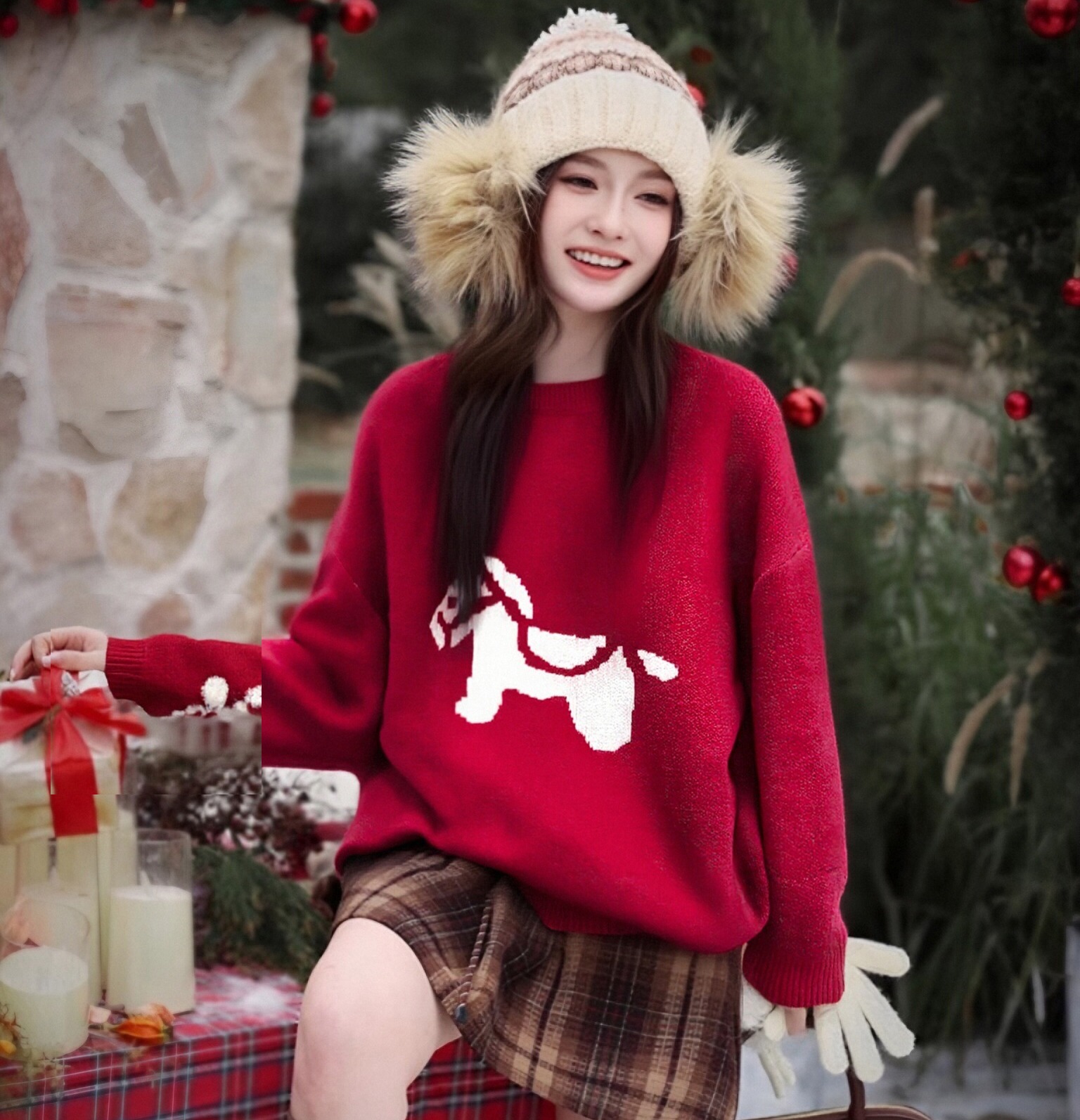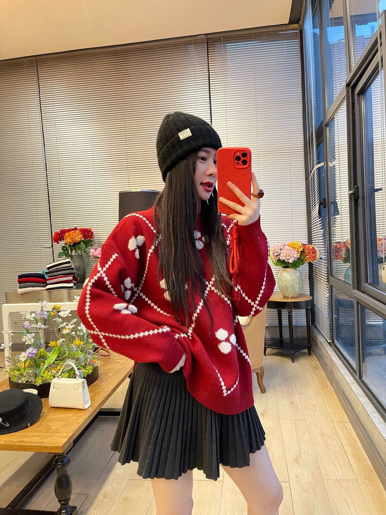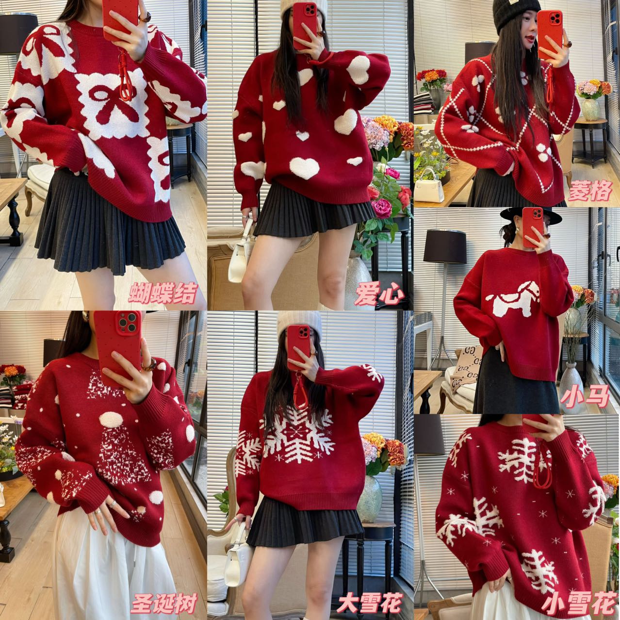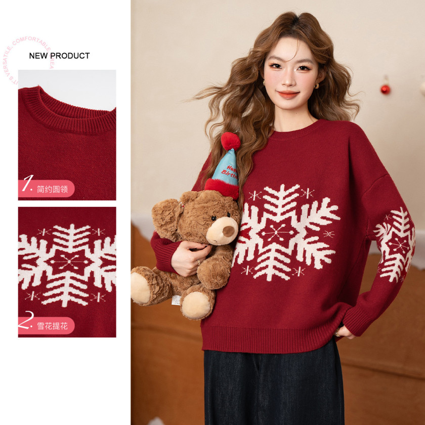 【新年红毛衣丨款式多多】好运翻倍的显白红色系!圆领设计,穿脱方便,温暖又随性!有弹力,舒适柔软面料,亲肤细腻!节日氛围满满!【FM-X】