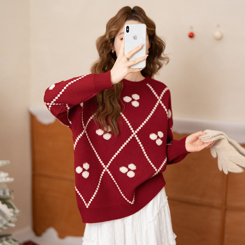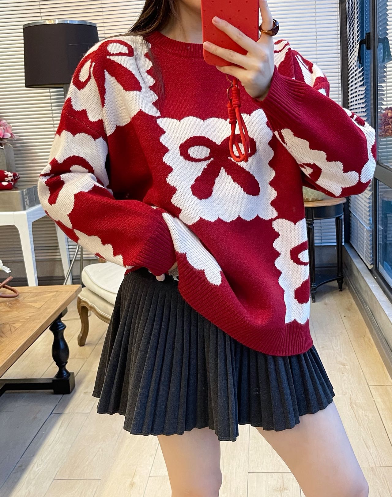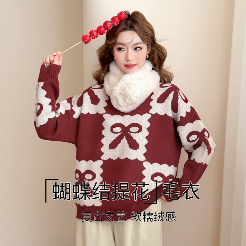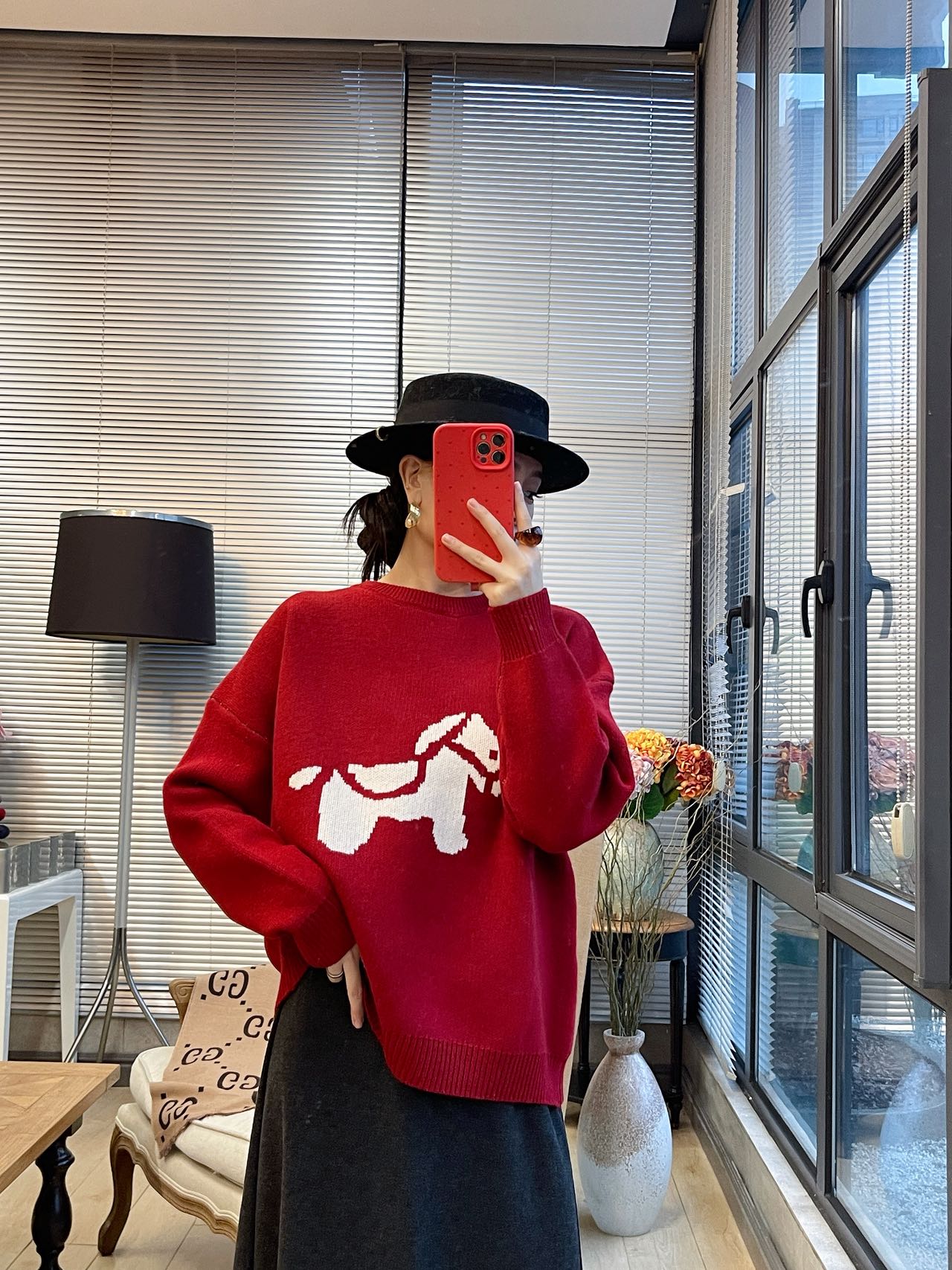 【新年红毛衣丨款式多多】好运翻倍的显白红色系!圆领设计,穿脱方便,温暖又随性!有弹力,舒适柔软面料,亲肤细腻!节日氛围满满!【FM-X】