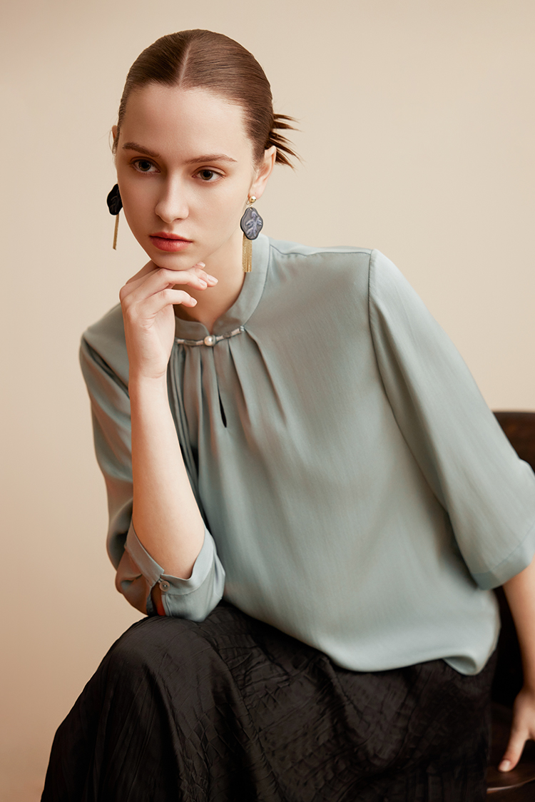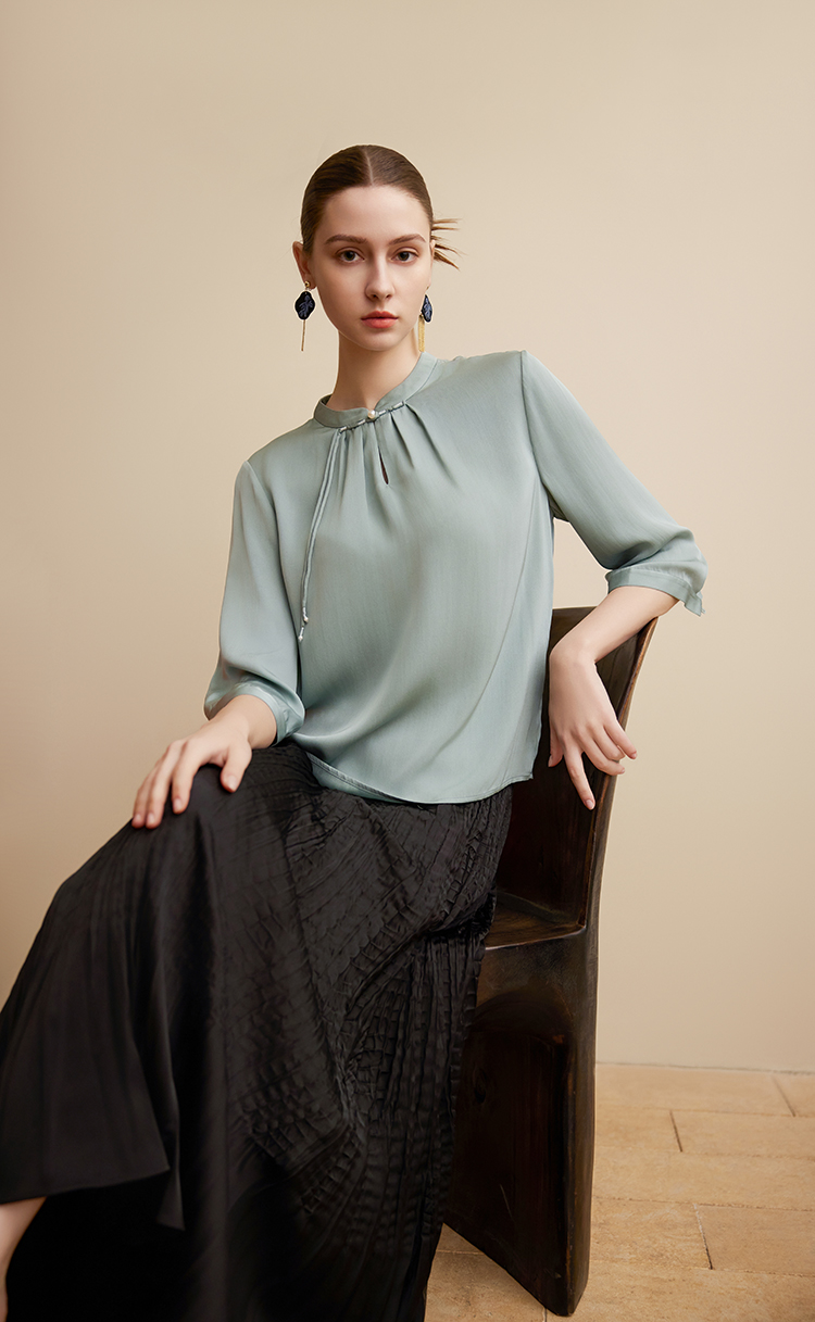 【复古盘扣真丝上衣】25年春夏女士新品女士桑蚕丝上衣时尚七分袖