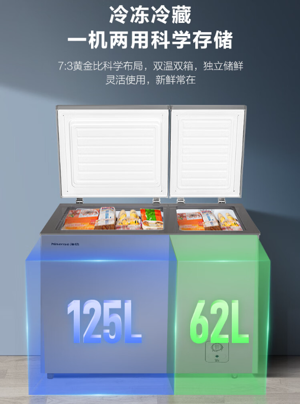 海信187升 顶开门双温柜 PCM内胆 自带脚轮灵活移动 强效制冷 高效节能 BCD-187ZFKM/HX