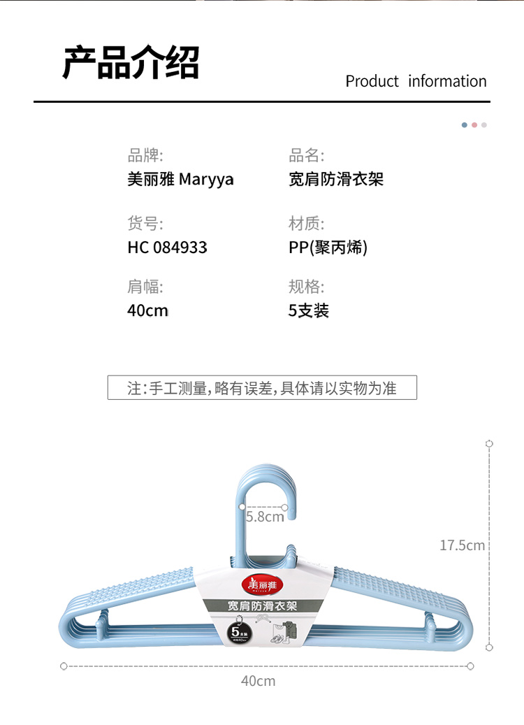 【批发】美丽雅宽肩防滑衣架5支入