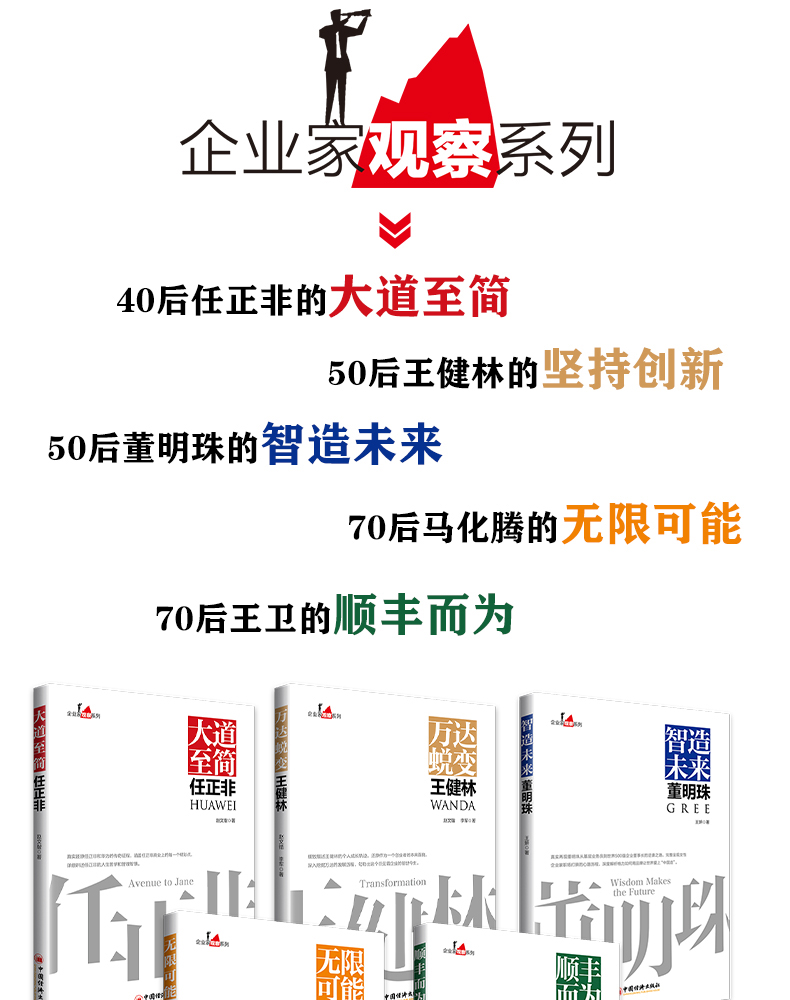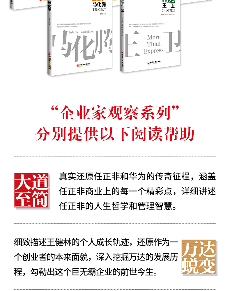 企业家观察系列 5册】大道至简任正非+万达蜕变王健林+智造未来董明珠+无限可能马化腾+顺丰而为王卫企业管理书籍